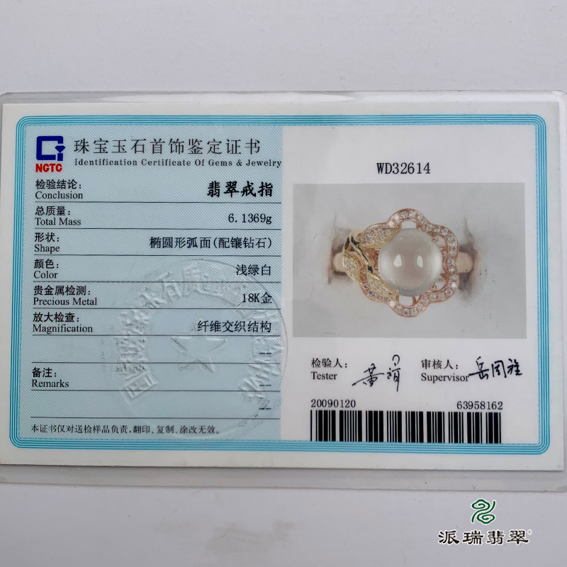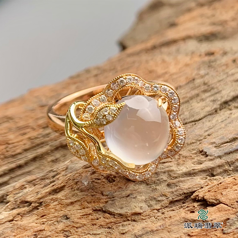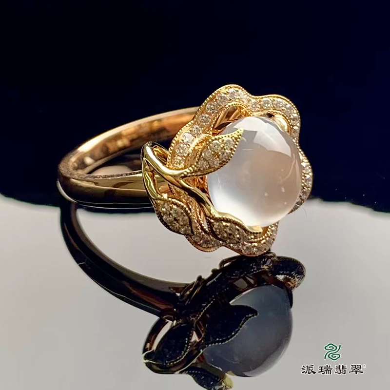派瑞翡翠 18k金翡翠戒指 冰种 无色