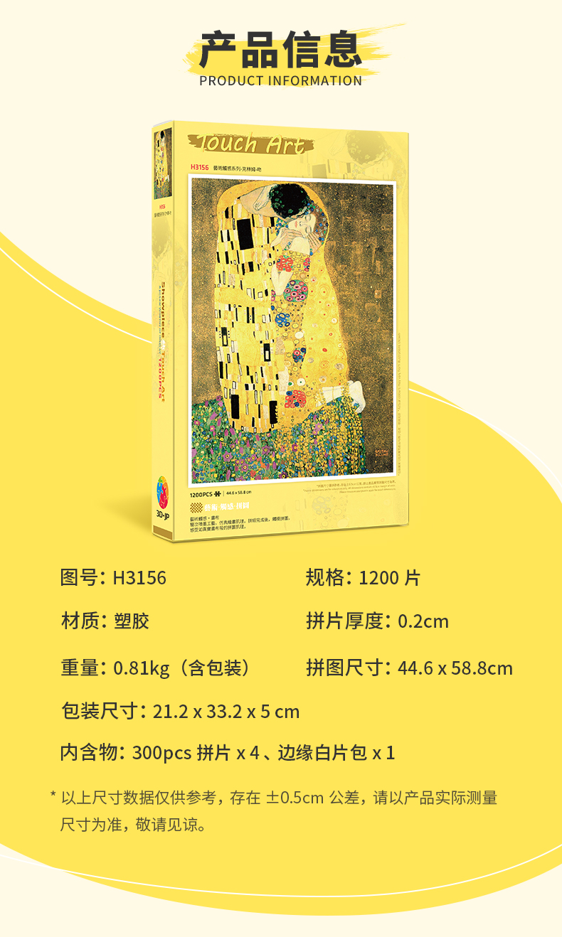 【折扣商品 不退不换】1200片平面拼图塑料拼图 H3156 艺术触感系列-克林姆-吻