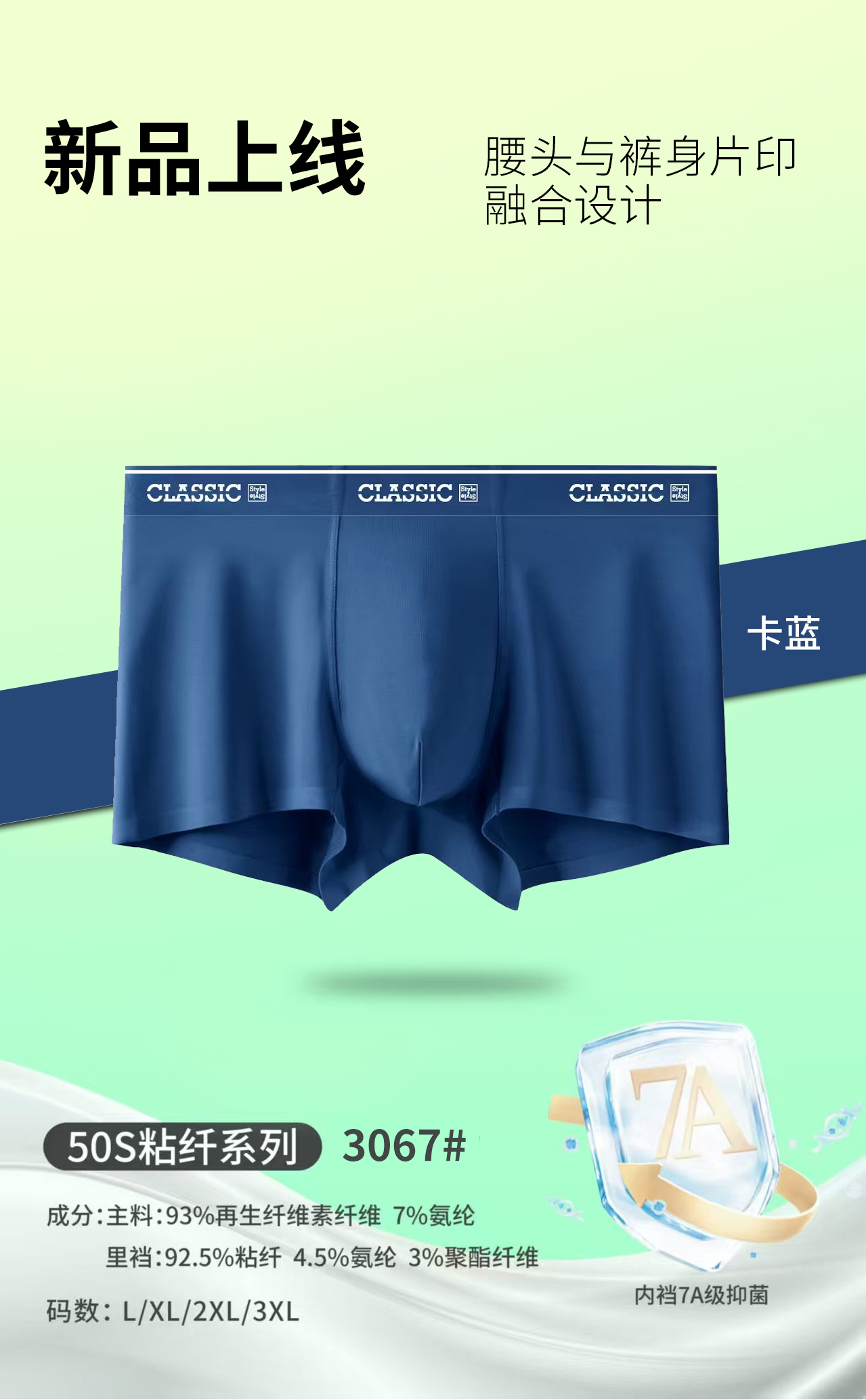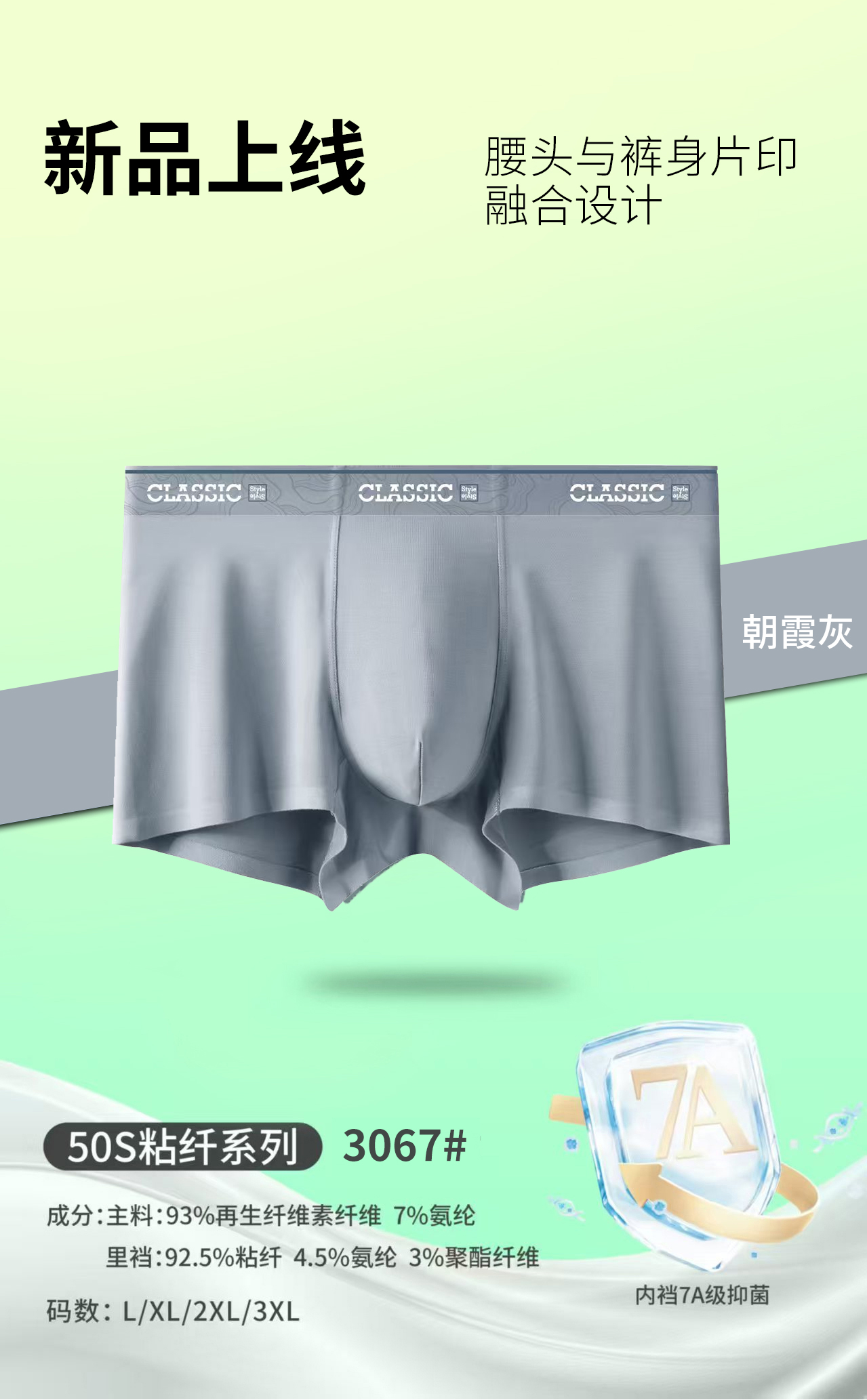 男士莫代尔腰头印花无痕平角内裤舒适透气高弹3066/3067