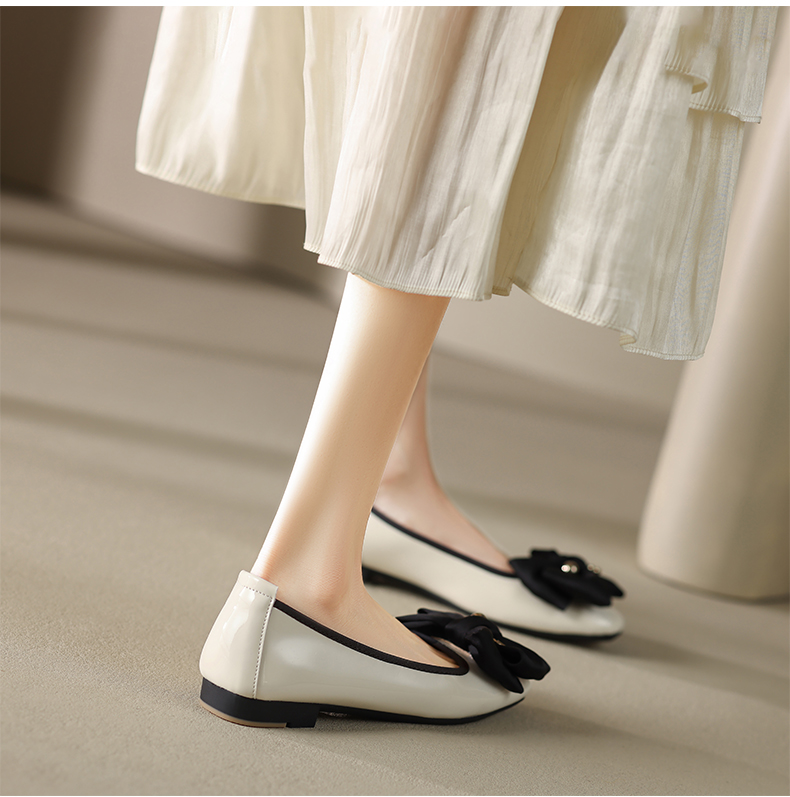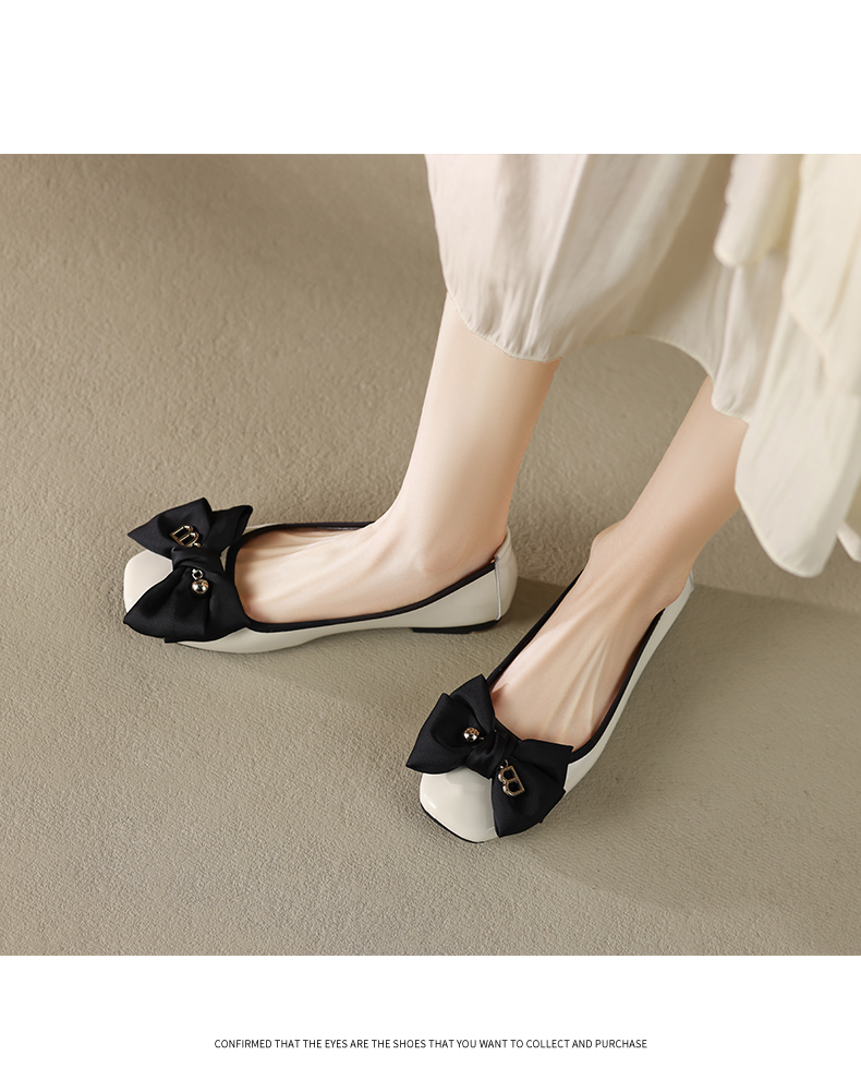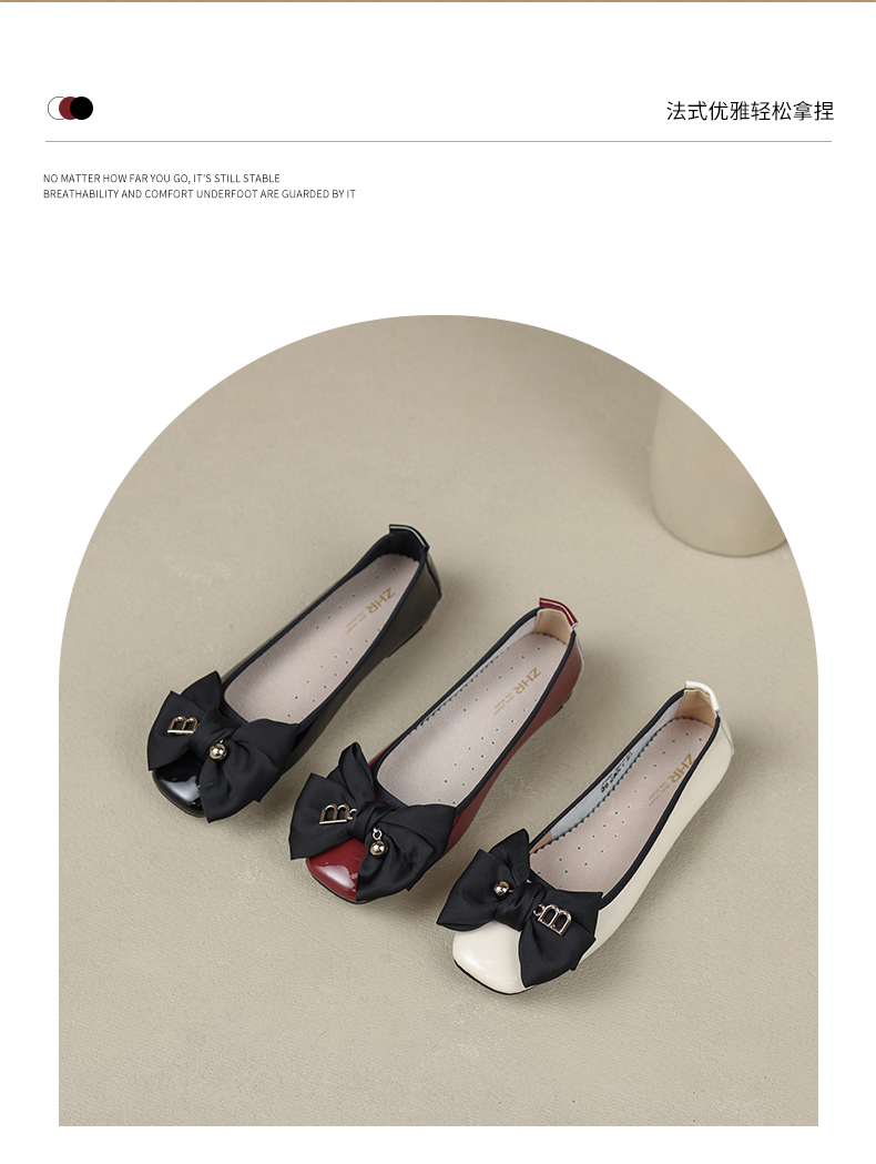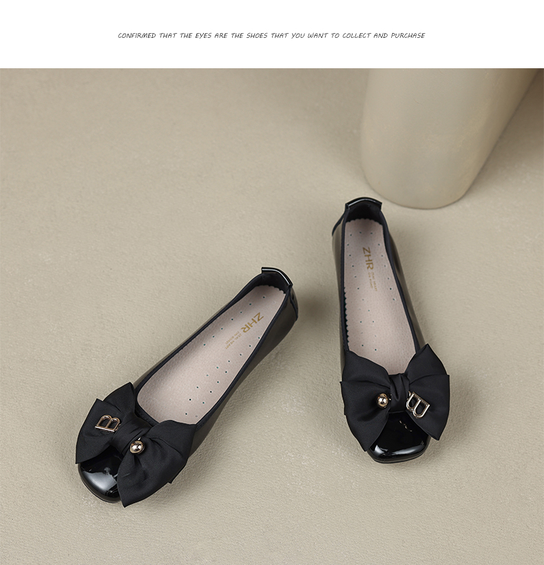 ZHR休闲豆豆鞋女春秋款软底女鞋不累脚平跟单鞋气质蝴蝶结瓢鞋女