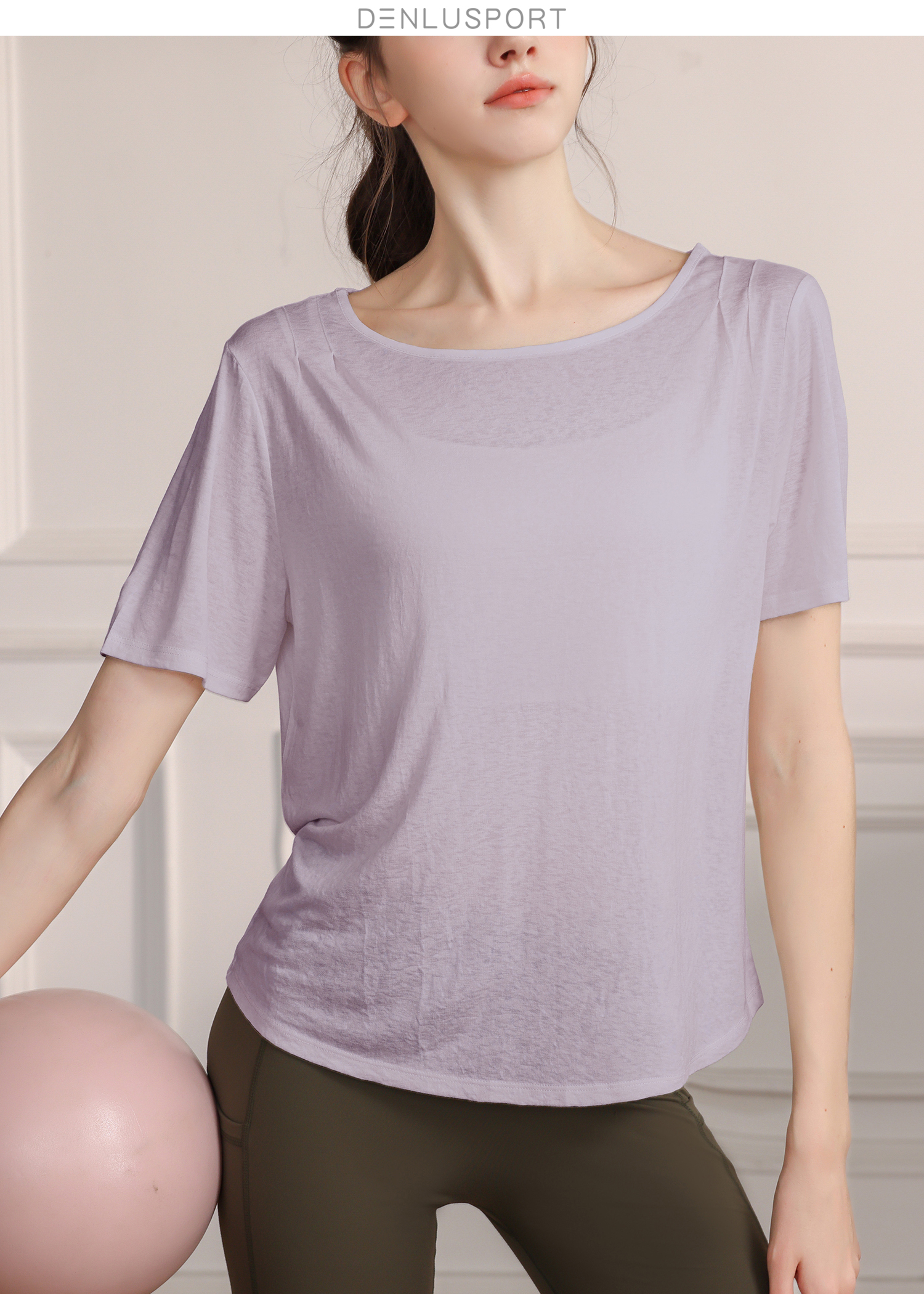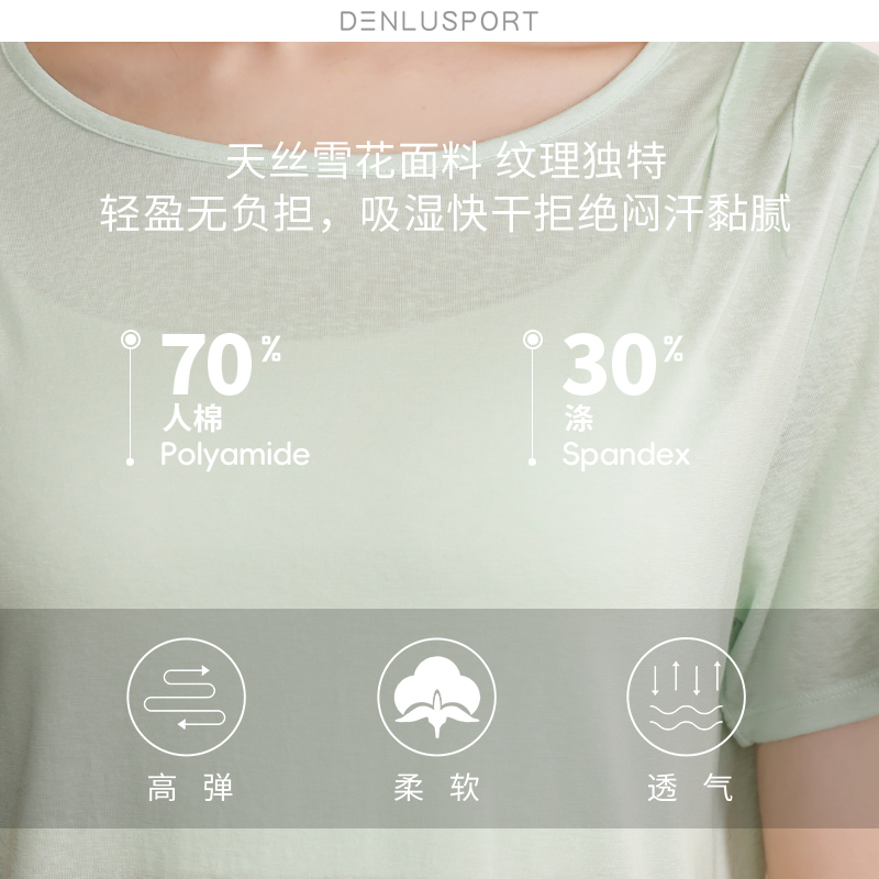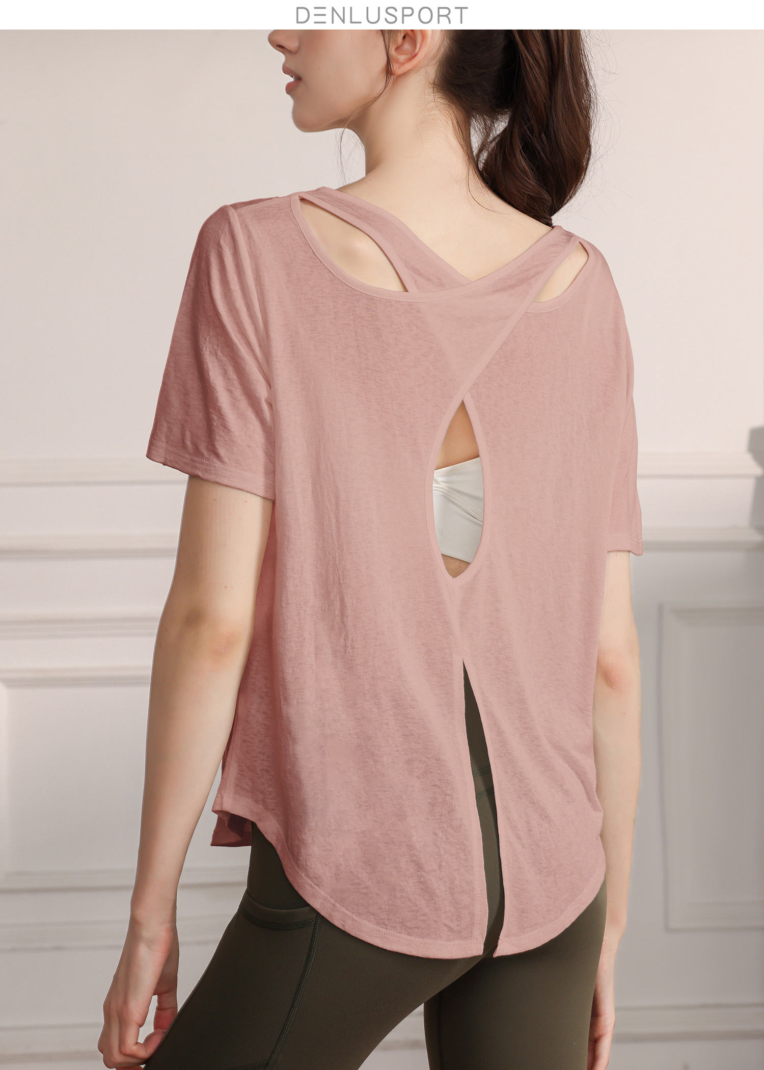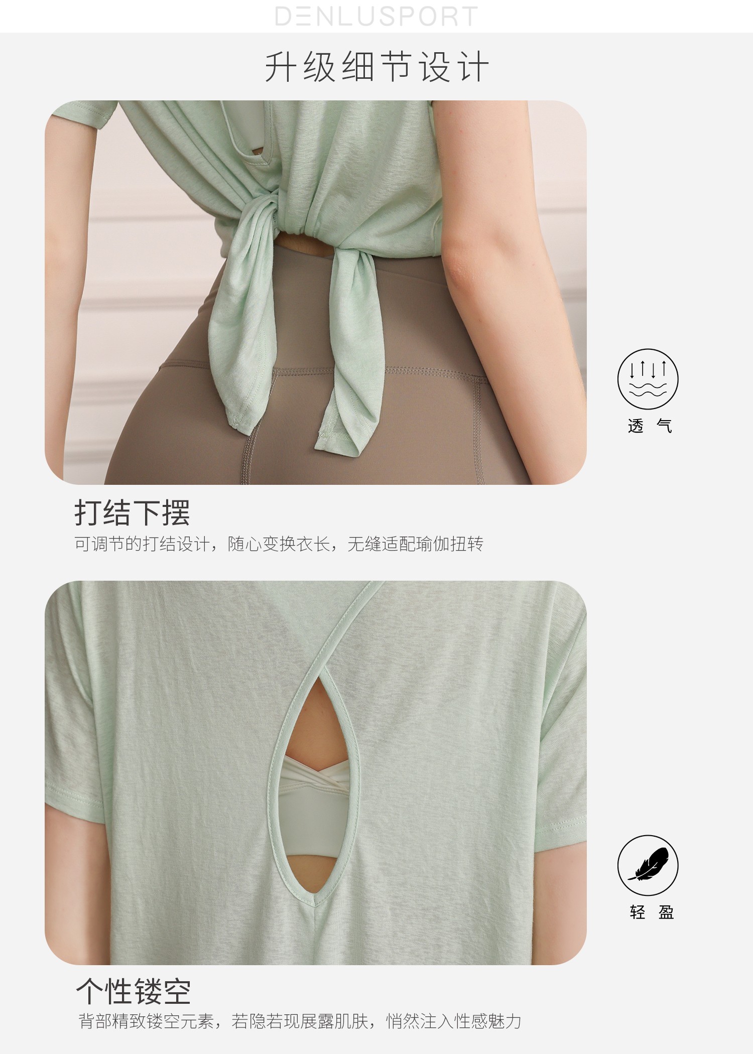 DENLUS新品天丝雪花美背瑜伽服罩衫 纯色镂空圆领短T DY66177#