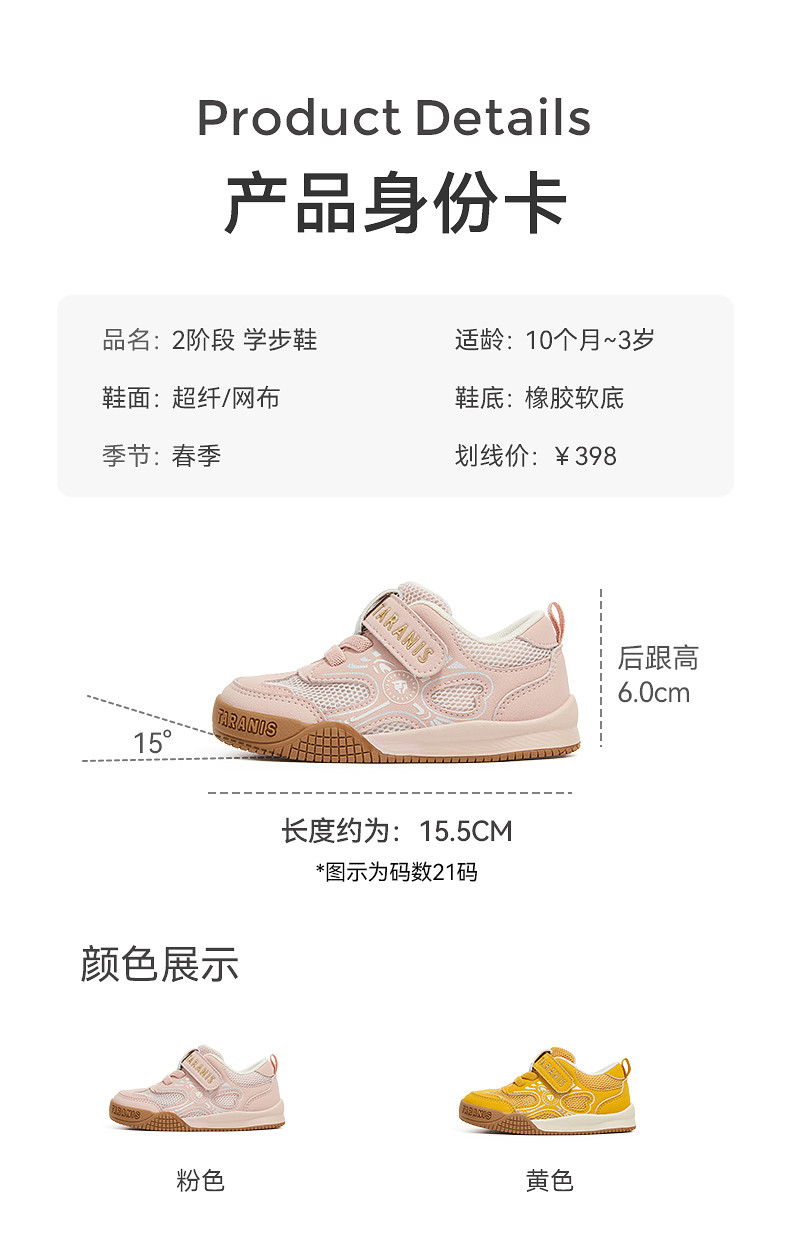 泰兰尼斯童鞋101春季新款婴儿步前鞋男宝宝机能鞋女童婴幼儿宝宝 T24B5A6335