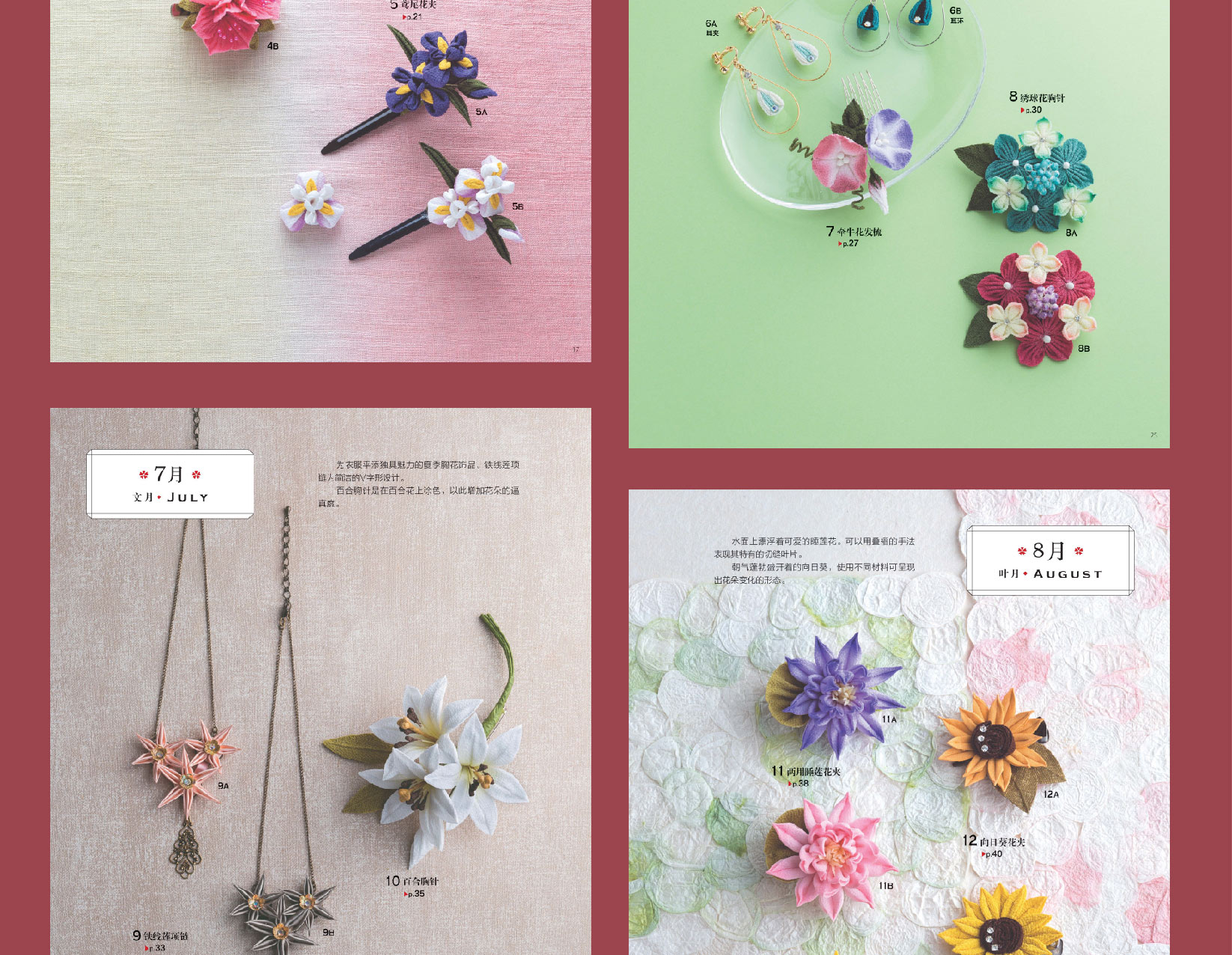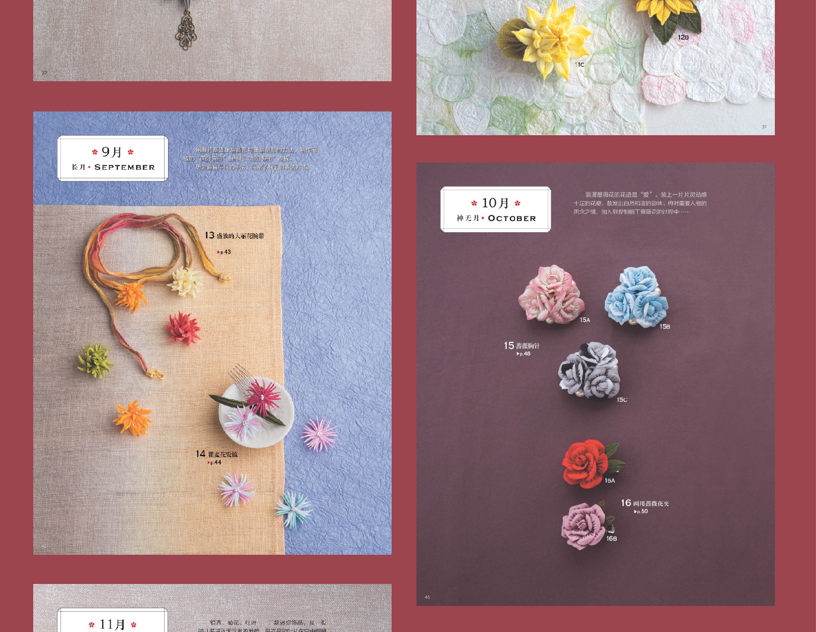 现货河原诗夜的四季花朵细工 刺绣书籍 手工编织大全 细工饰品耳环 胸针项链戒指耳环发卡花朵手工饰品