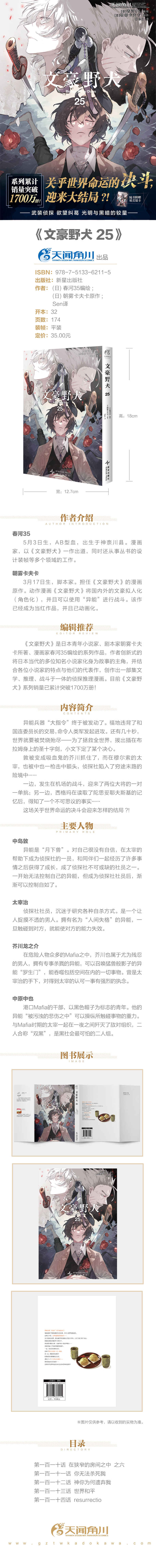 文豪野犬.25漫画(随书赠品:银卡1张)可选文豪野犬10周年纪念亚克力组合式立牌豪华套装版