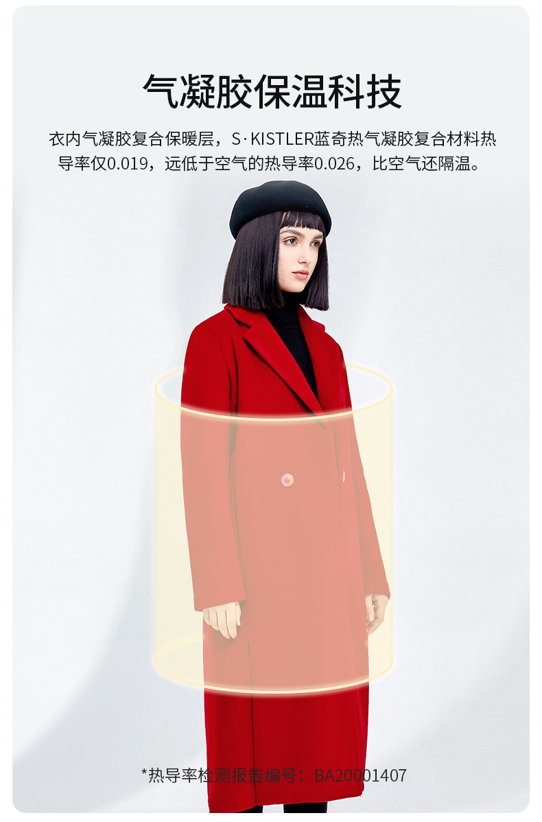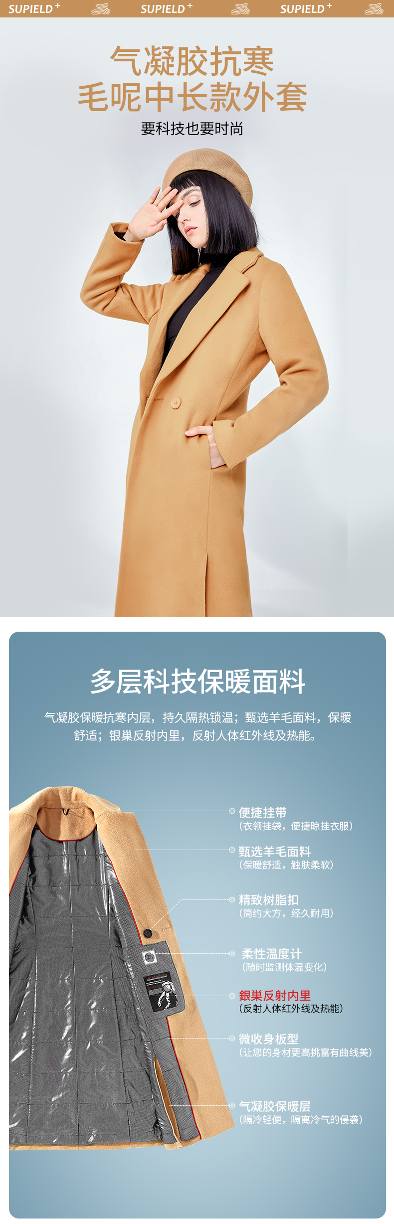 Supield素湃黑科技宇航气凝胶防寒服毛呢大衣女中长款防风大衣527