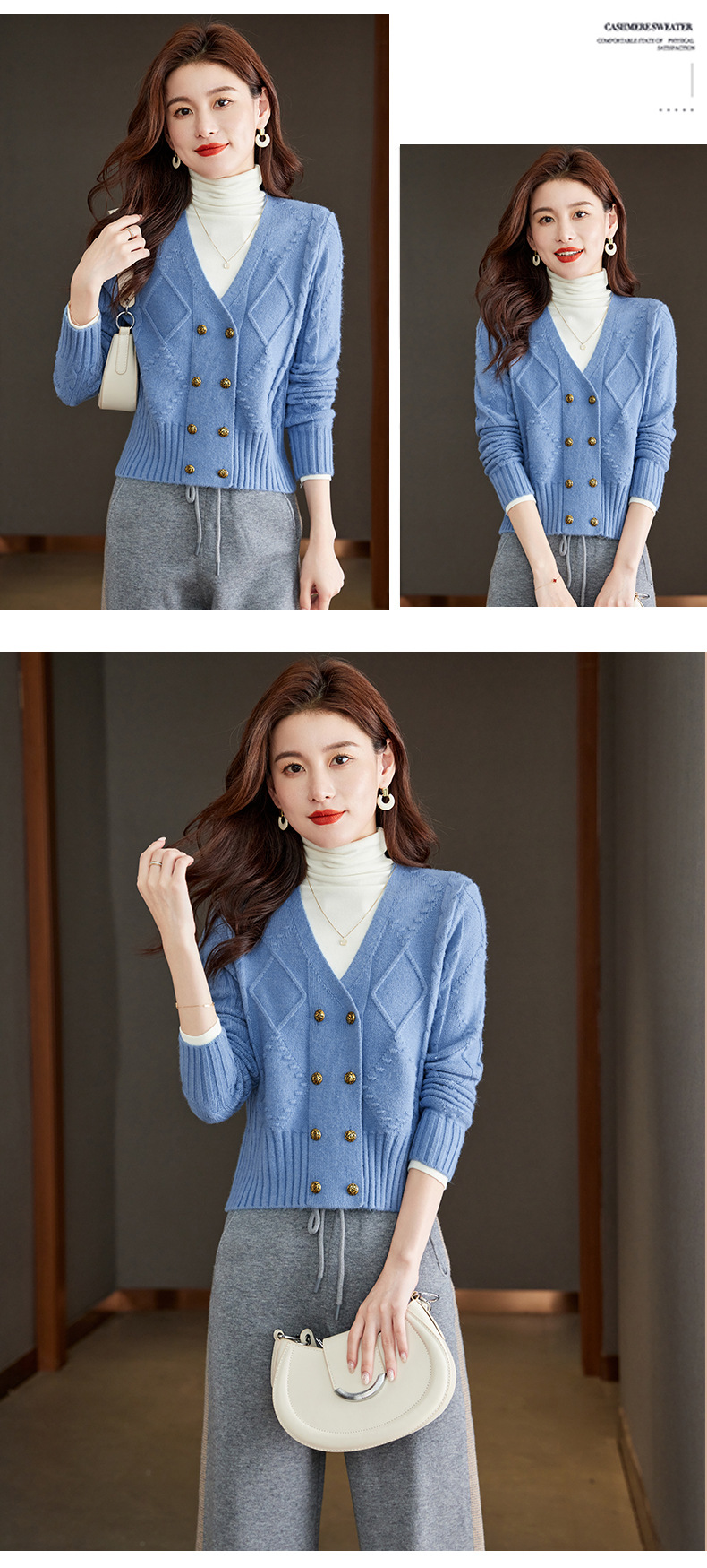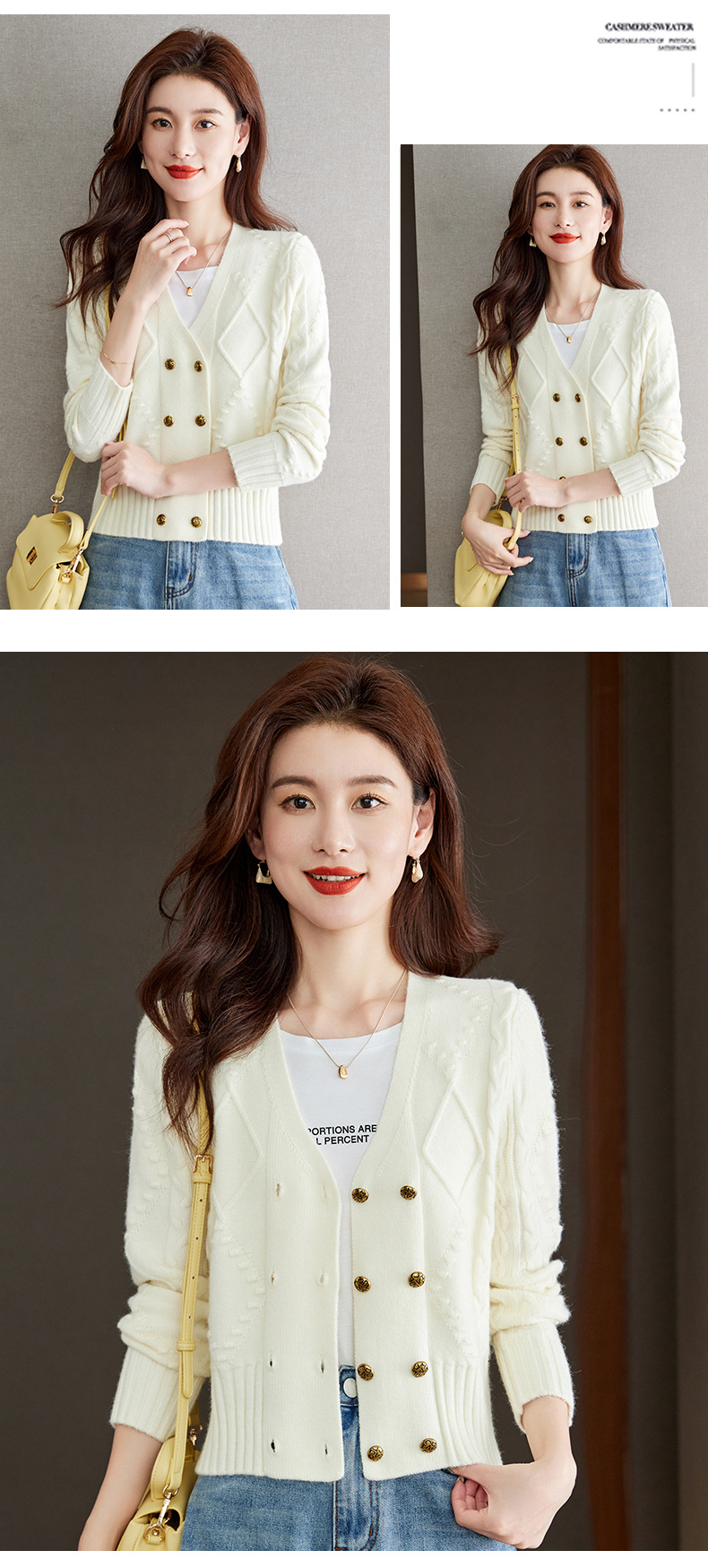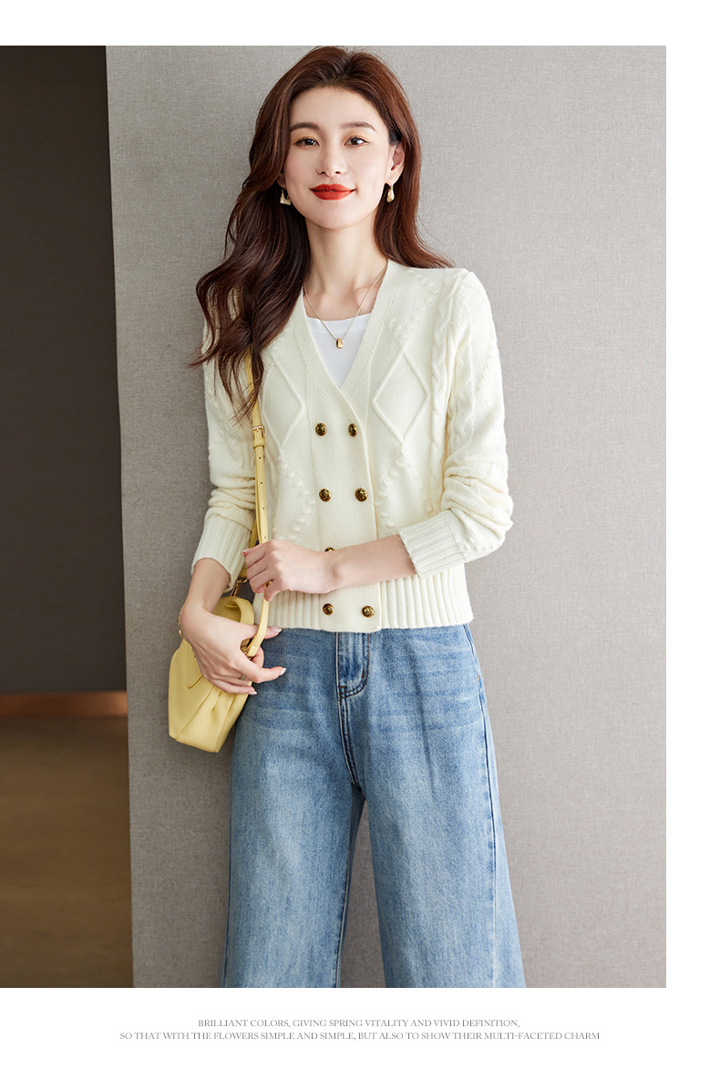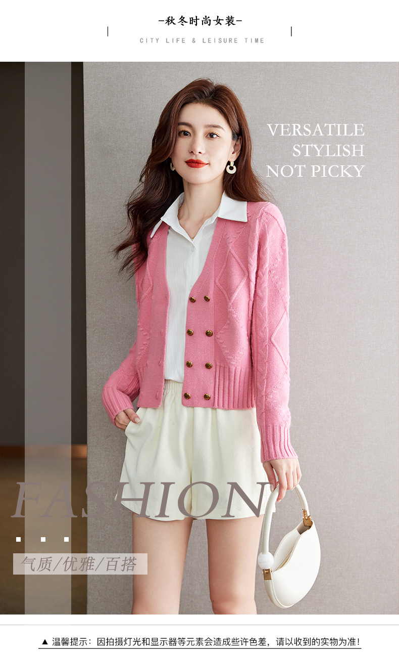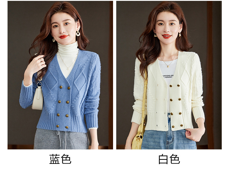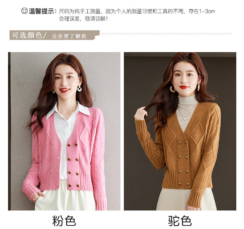 双排扣v领针织开衫,春秋新款早秋高腰外搭上衣毛衣外套CC-J237