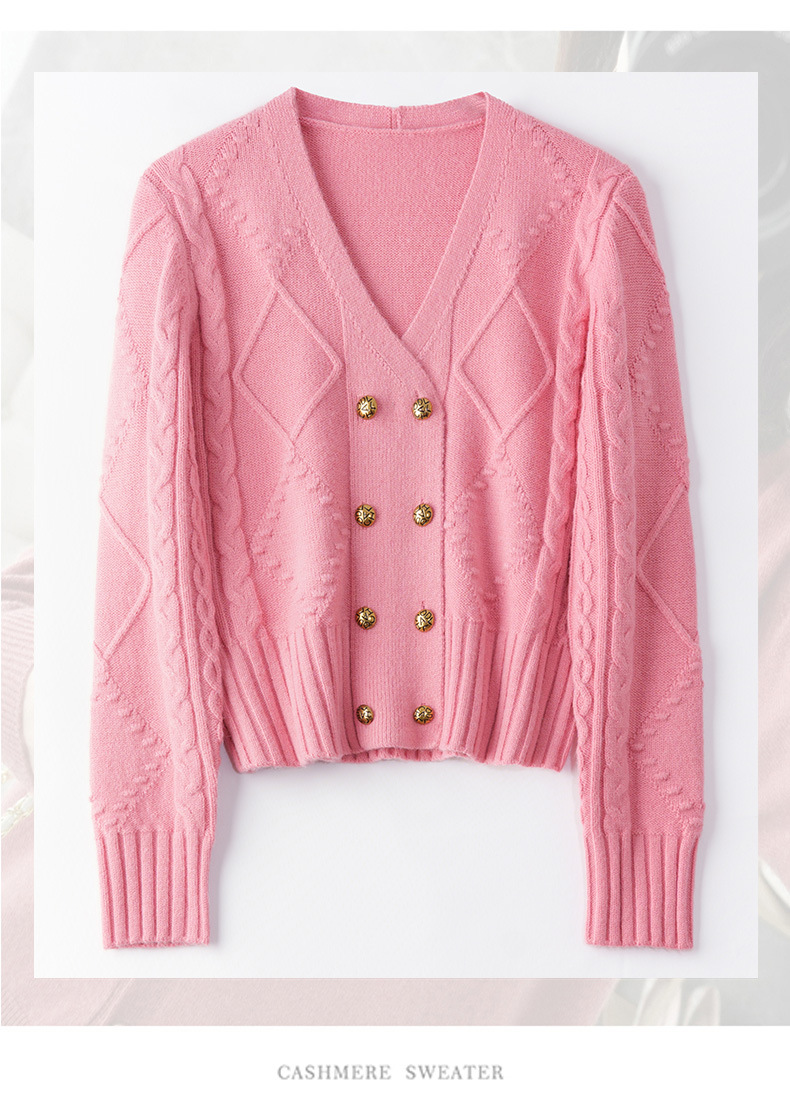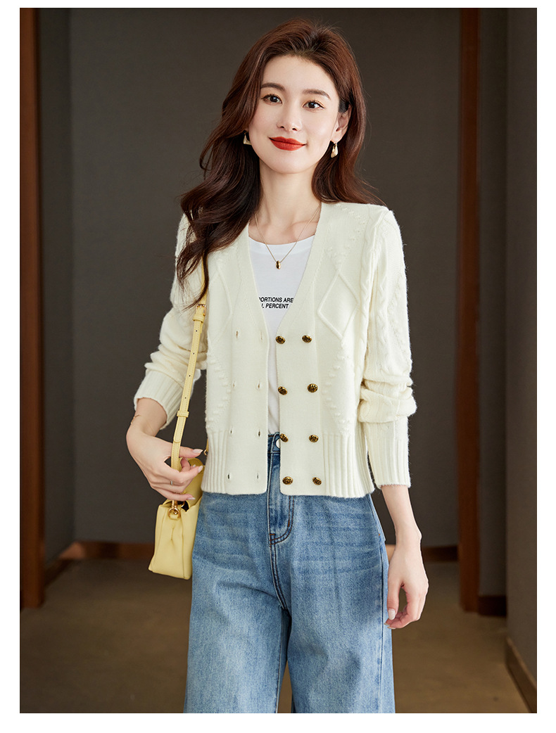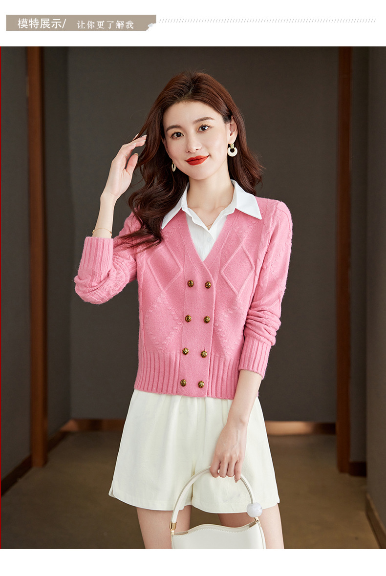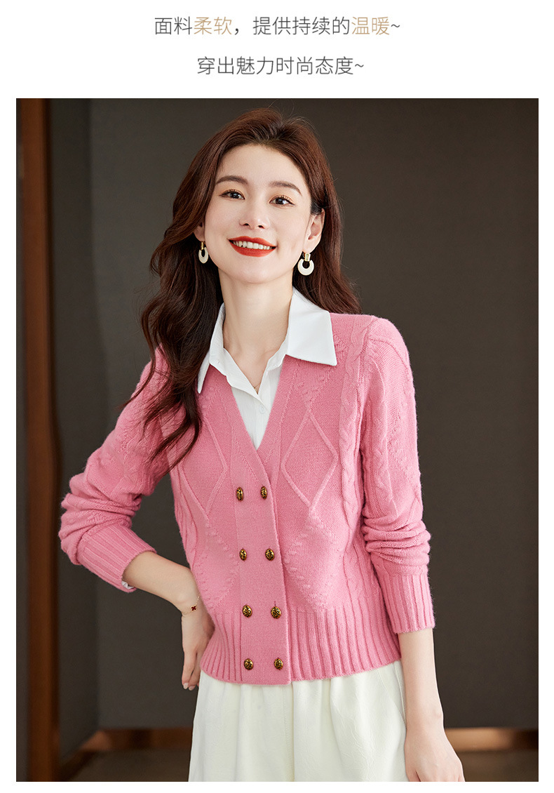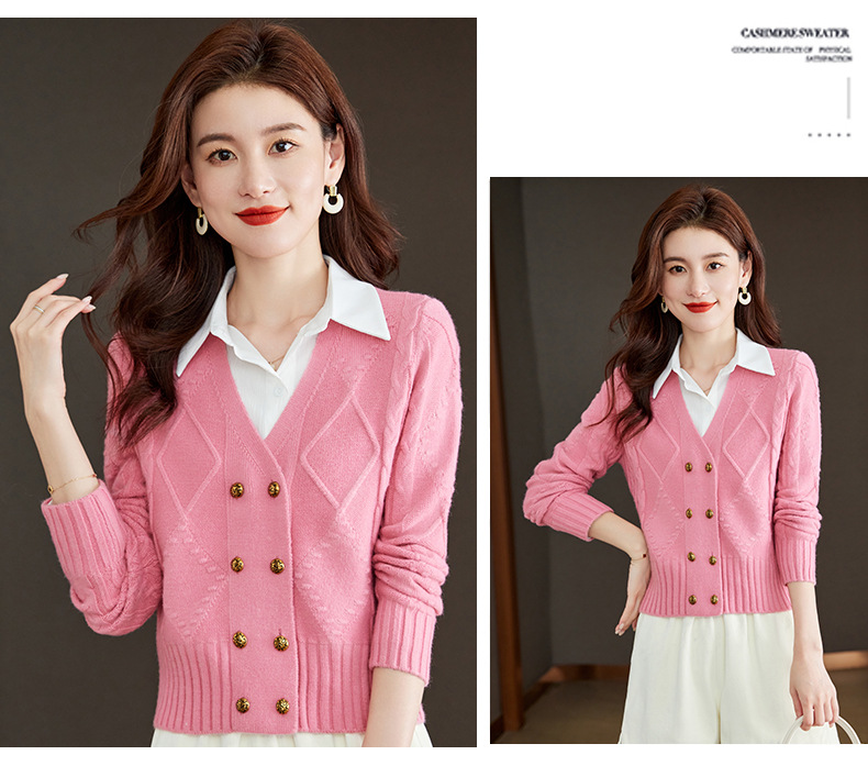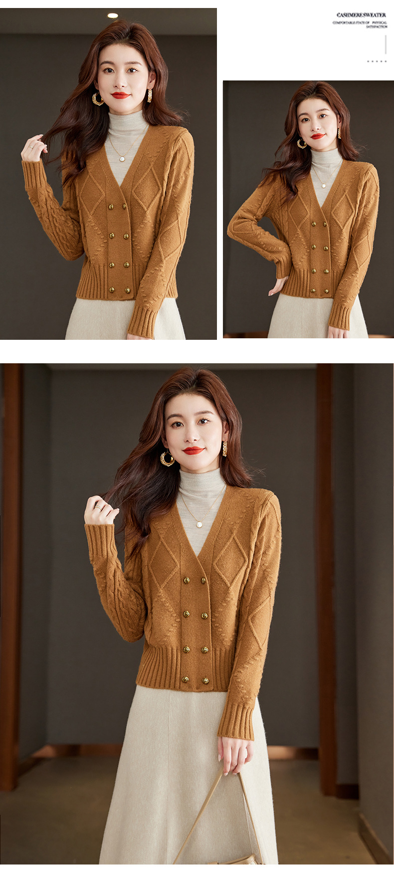 双排扣v领针织开衫,春秋新款早秋高腰外搭上衣毛衣外套CC-J237