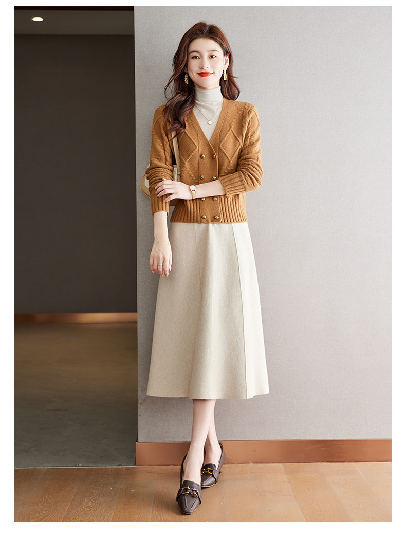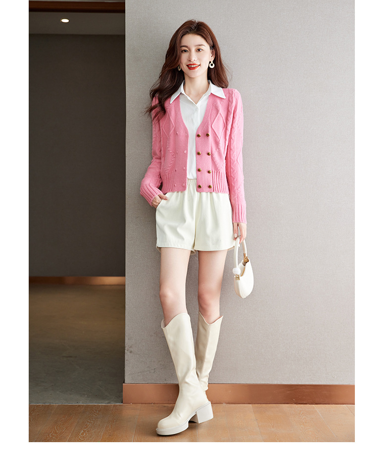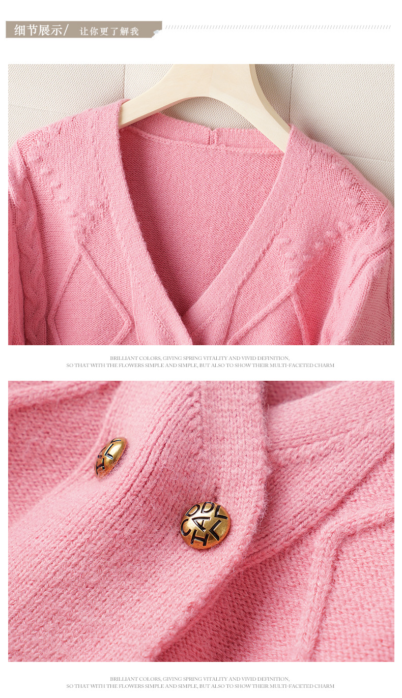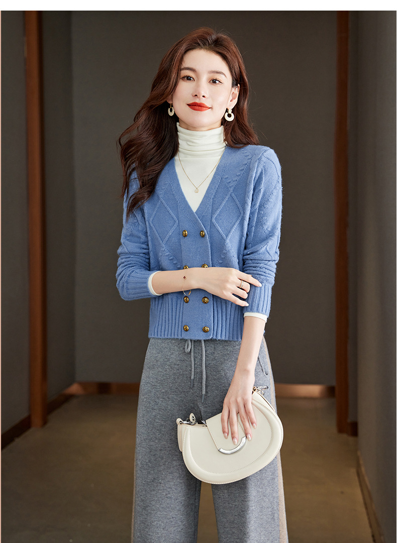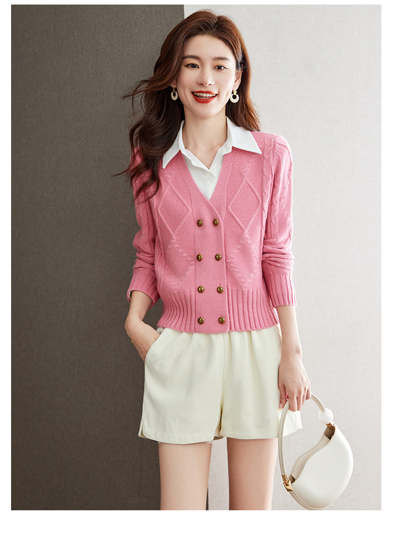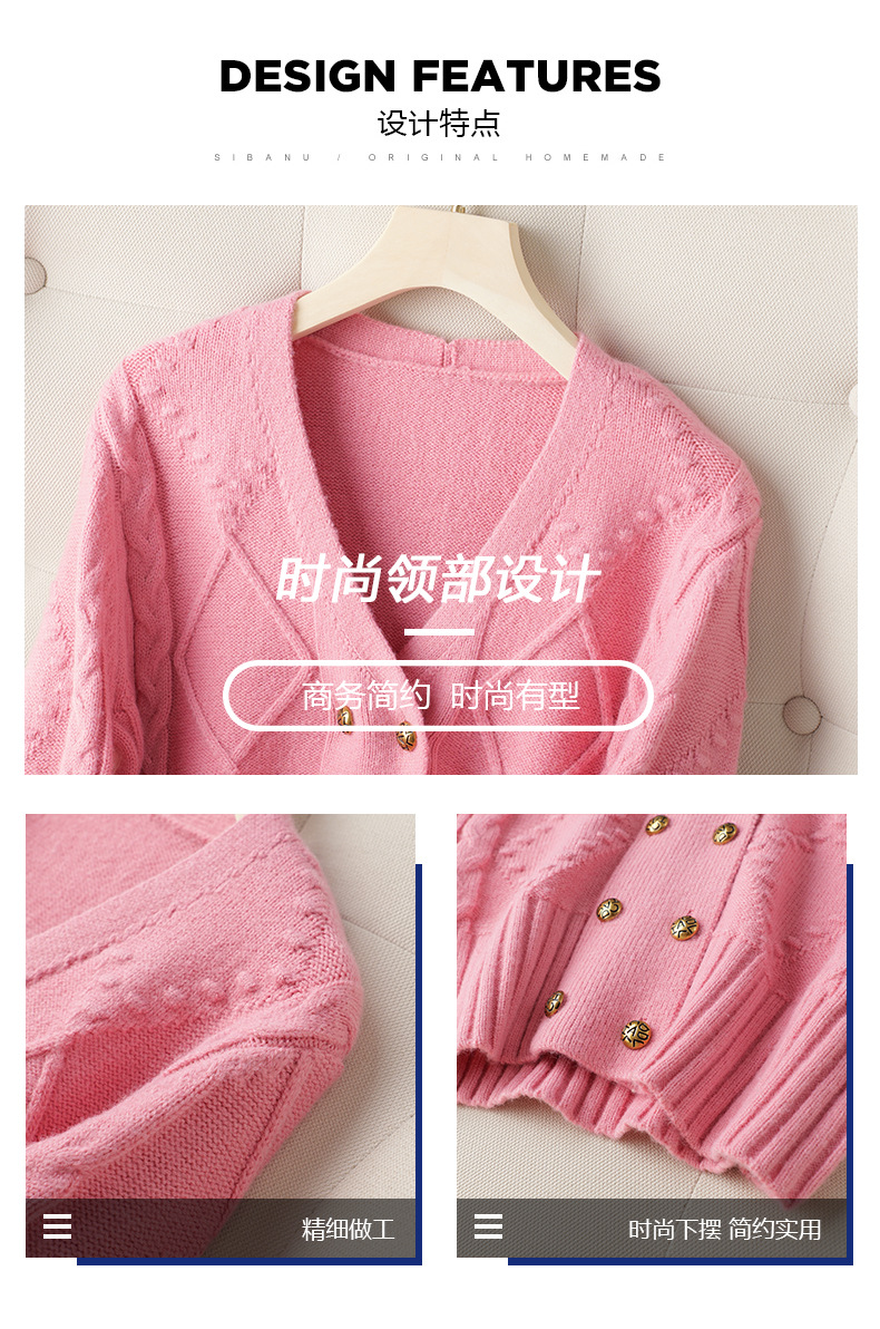 双排扣v领针织开衫,春秋新款早秋高腰外搭上衣毛衣外套CC-J237