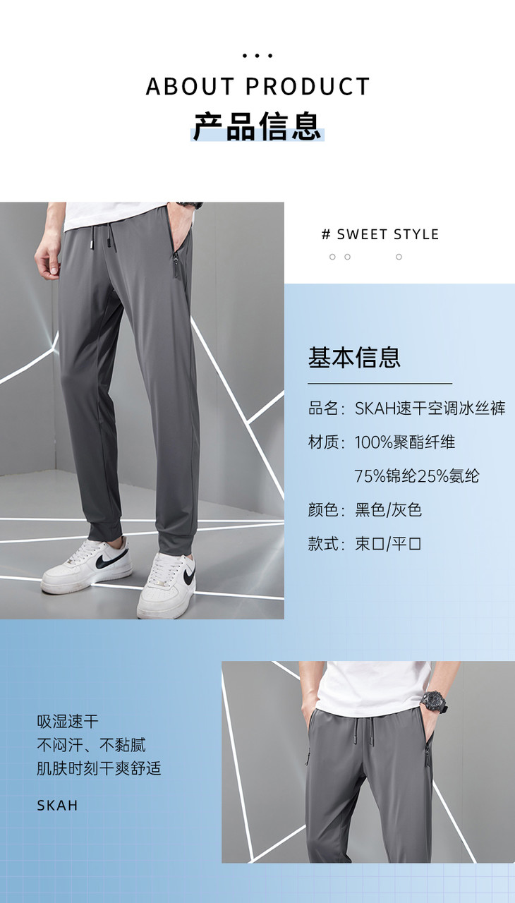 【会降温的“空调裤”】SKAH速干空调冰丝裤 凉感科技冰丝面料 吸湿速干 不闷汗不黏腻 肌肤时刻干爽舒适 解放夏日闷热感