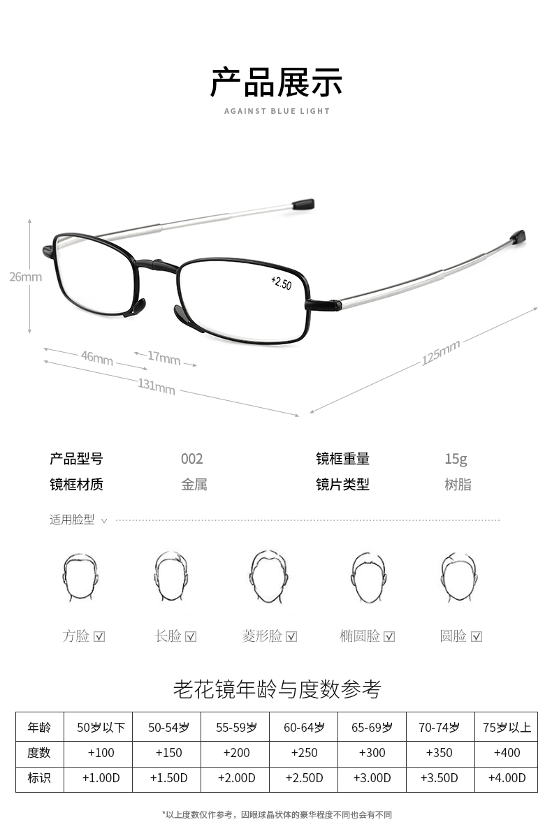 【按个人度数购买】新款折叠便携 防lan光老花镜 老年人眼镜 时尚男女阅读老花镜
