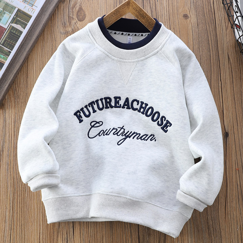 110-170 厚实保暖一体奥利绒重工刺绣字母卫衣