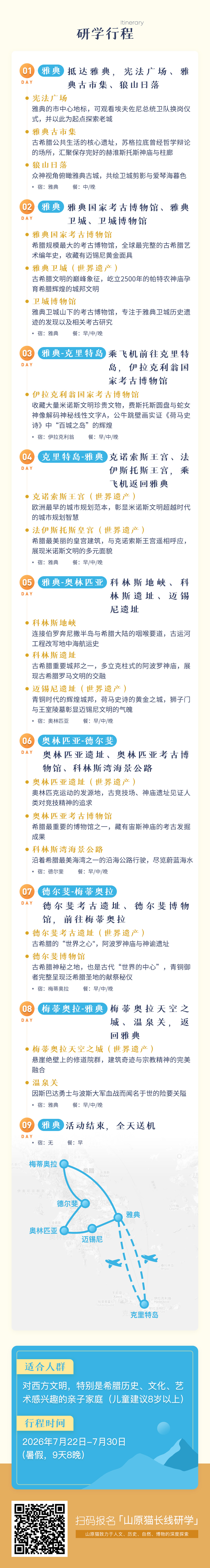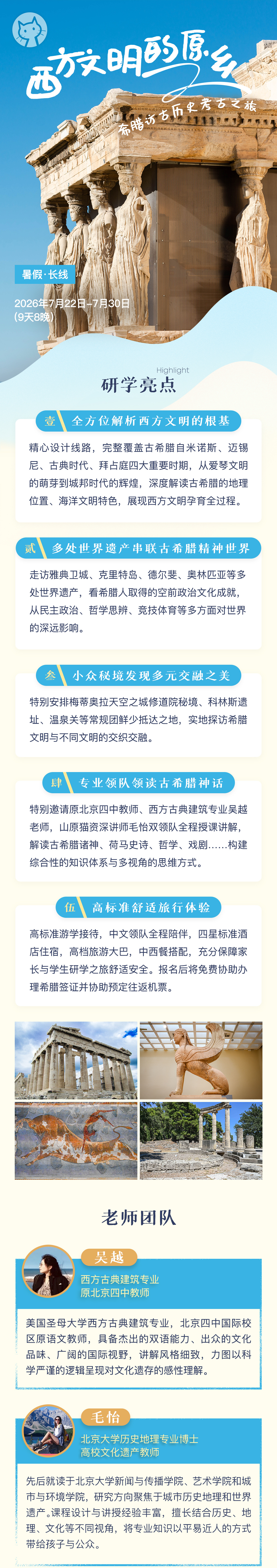 希腊作为欧洲文明的发源之地,历史悠久而内涵丰富,【西方文明的原乡·希腊访古大历史之旅】带大家走访希腊多处世界文化遗产和重要博物馆,涵盖古希腊的各个重要历史时期:包括雅典卫城与卫城博物馆、迈锡尼考古遗址与博物馆、奥林匹亚考古遗址与博物馆、梅蒂奥拉天空之城、德尔斐考古遗址与博物馆、法伊斯托斯遗址和克诺索斯王宫遗址,与大家一起探寻梳理西方文明之源。