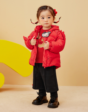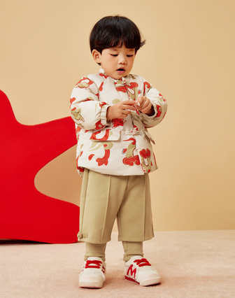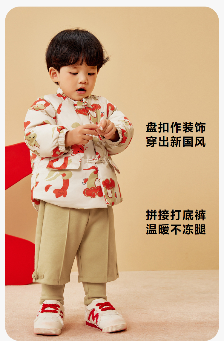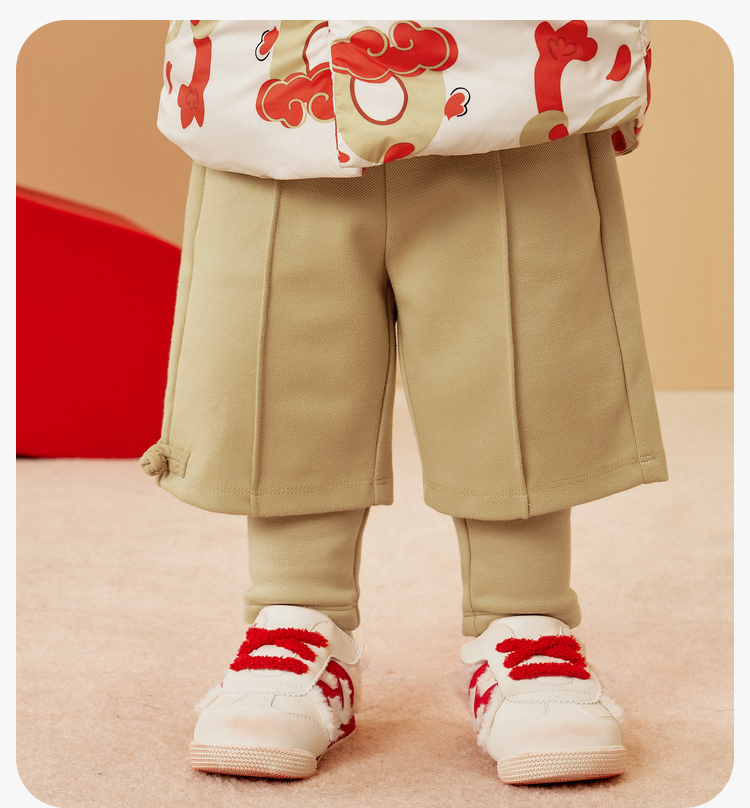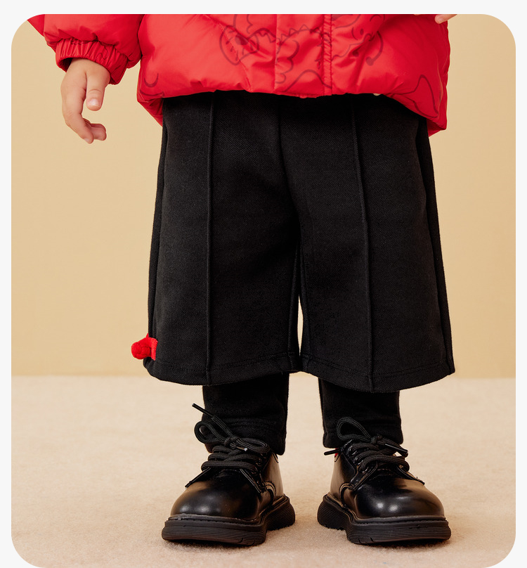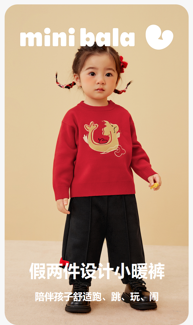 迷你巴拉男童女童长裤秋冬宝宝保暖假俩件直筒新年儿童休闲裤