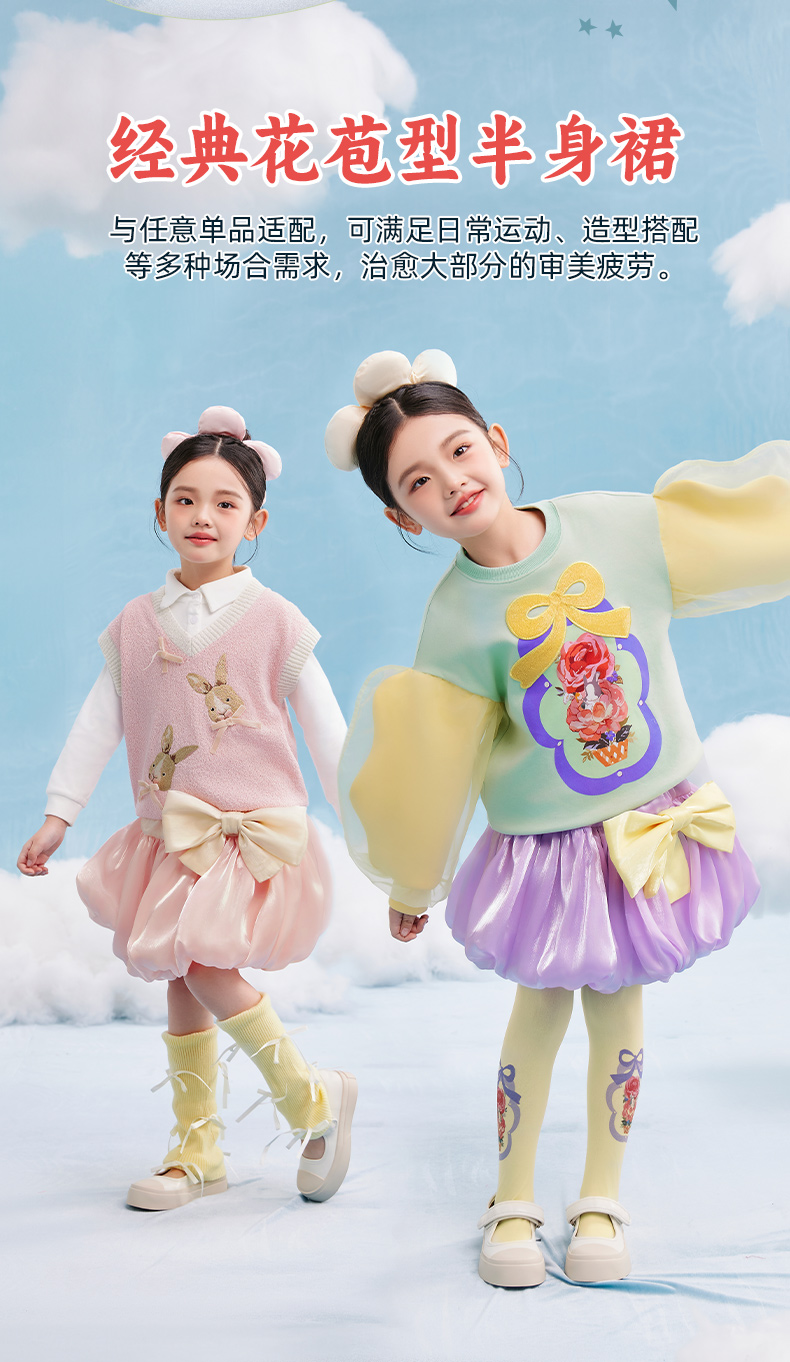 年衣童装女童半身裙2025年春新款宝宝网纱甜美蓬蓬裙公主裙儿童裙子春日圆舞半身裙