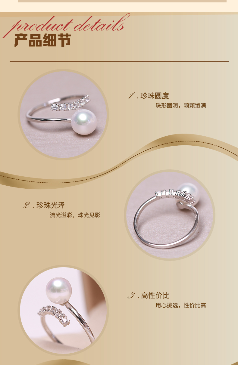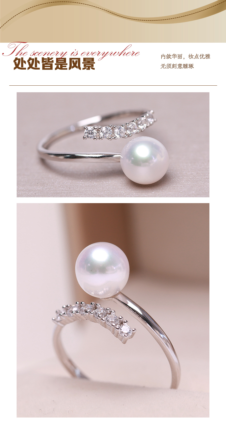 美裕 925银淡水珍珠戒指 开口戒7-8mm 107529W