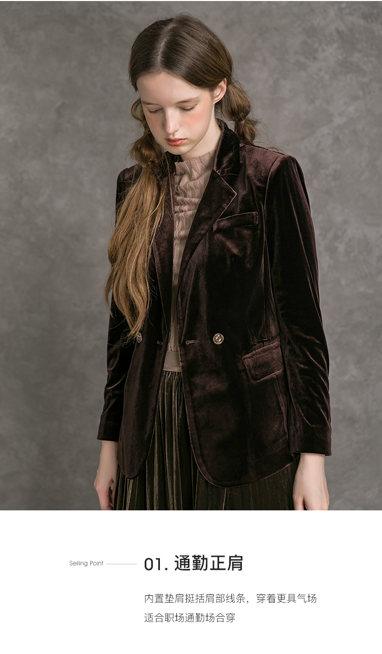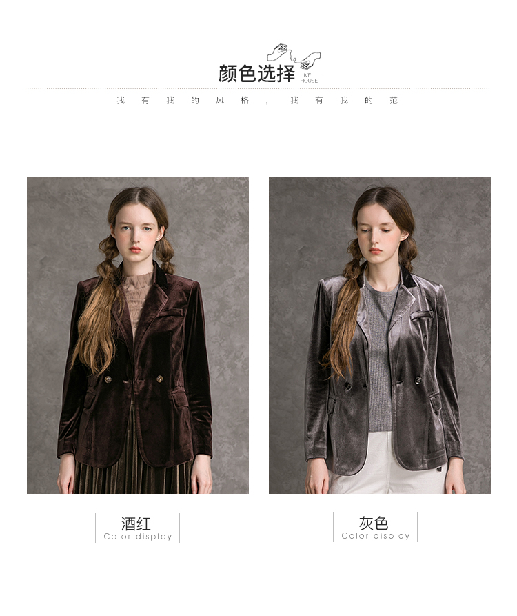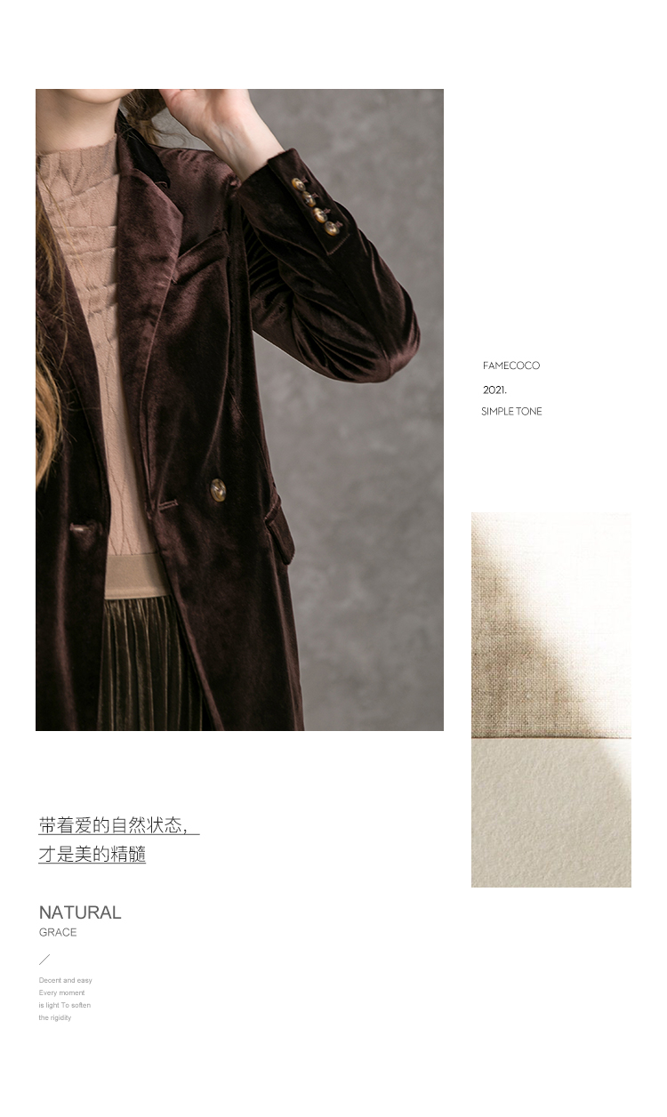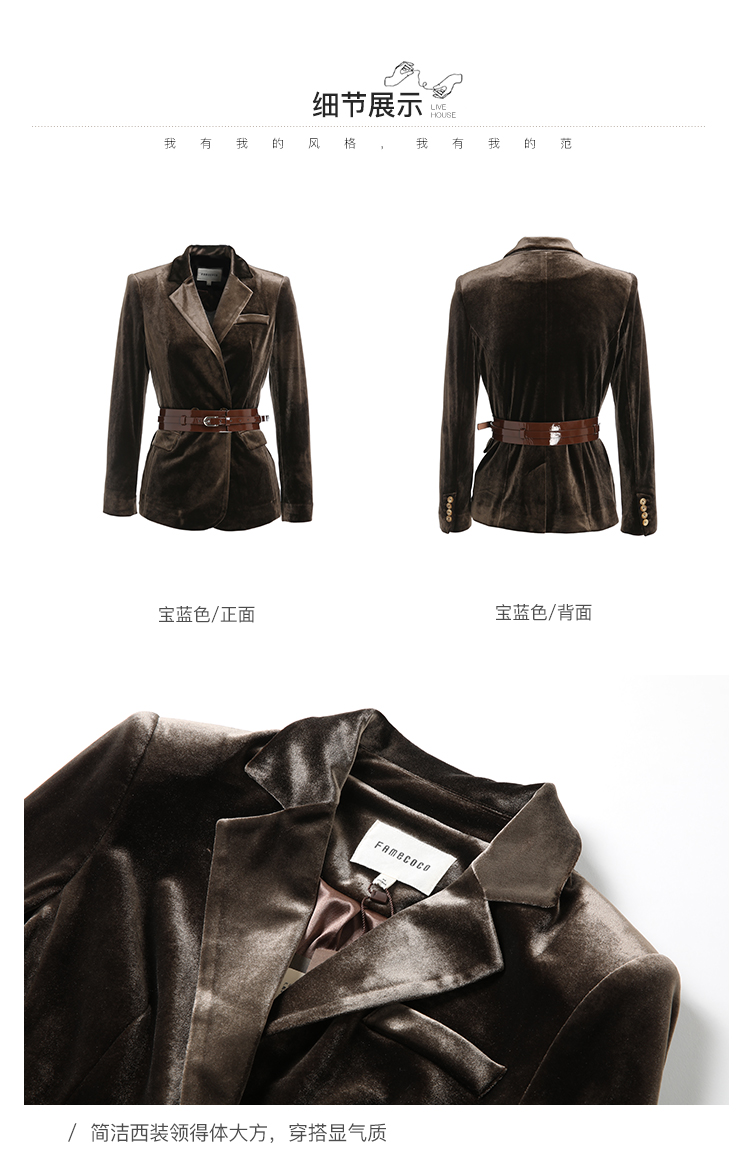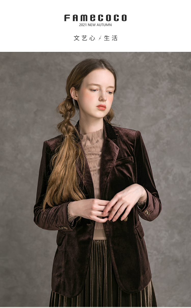 famecoco范可儿西装外套女秋长袖正装修身复古丝绒小西服D216AB301