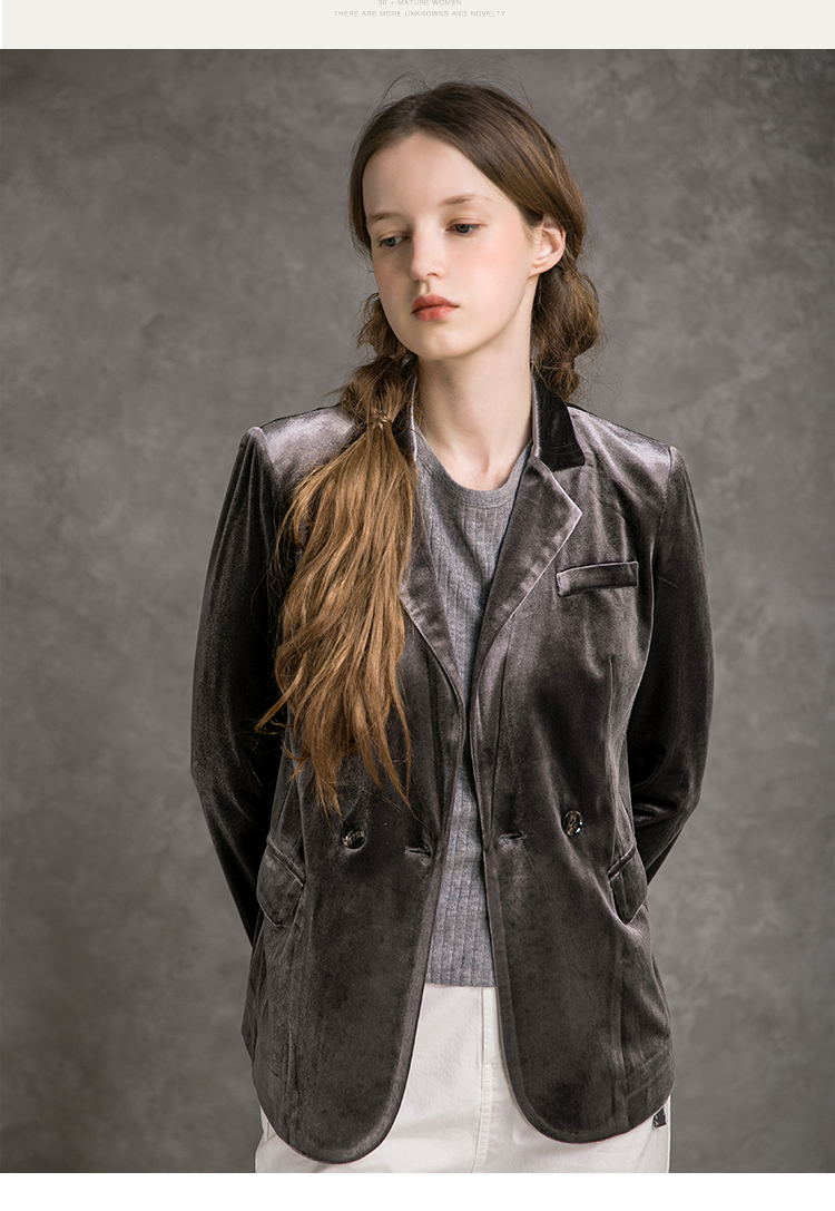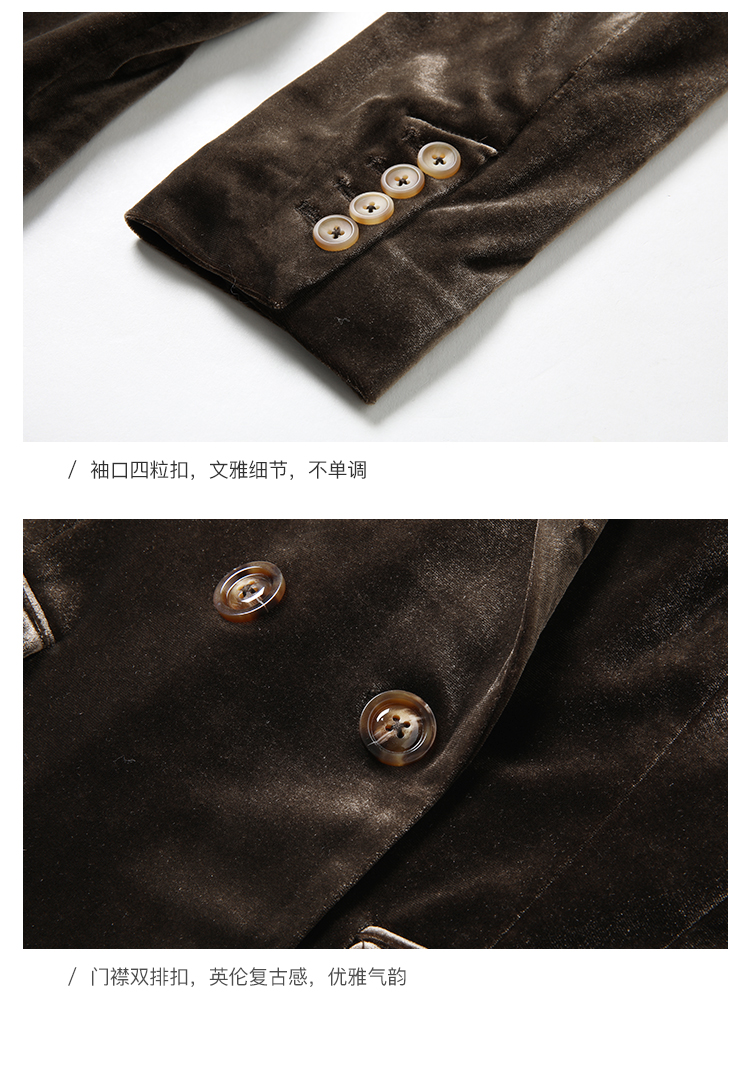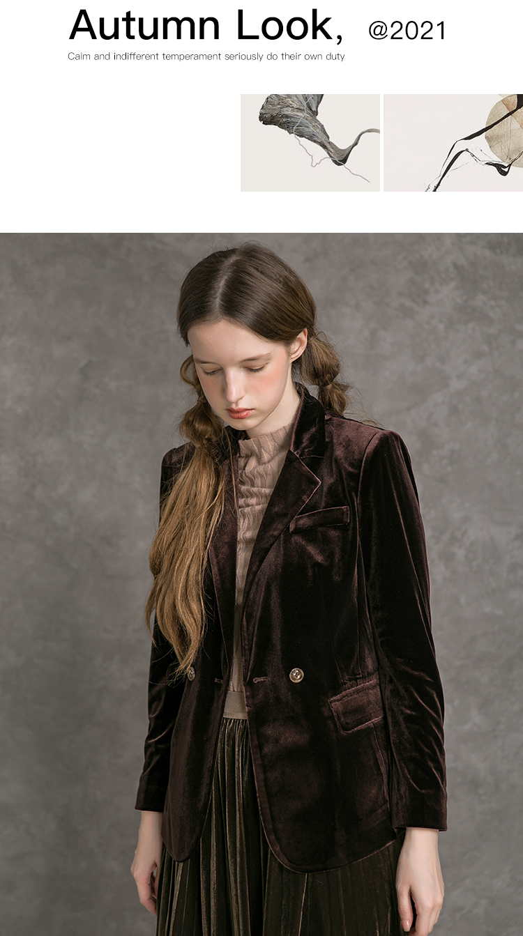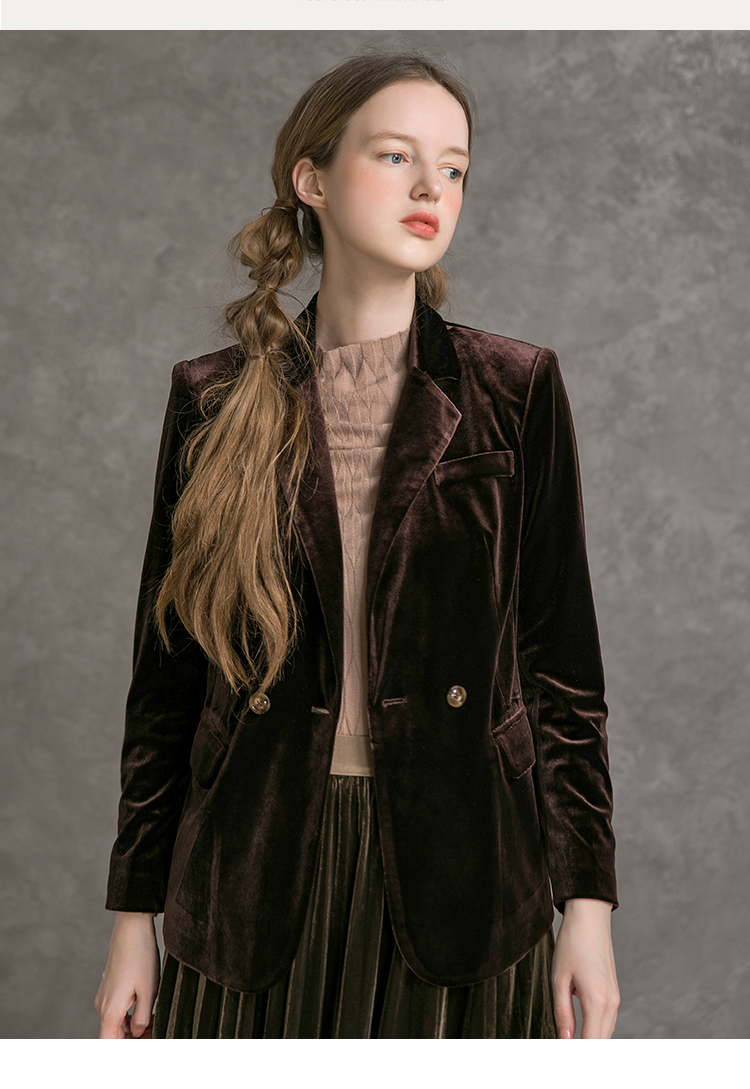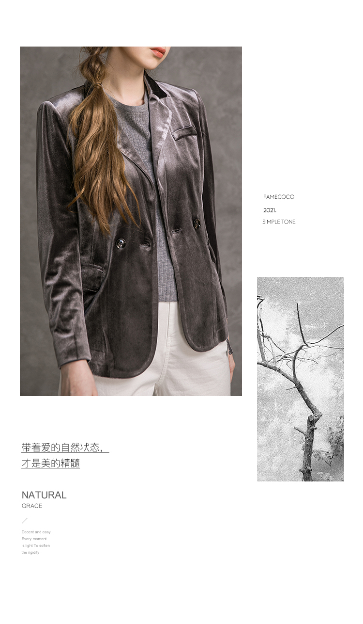 famecoco范可儿西装外套女秋长袖正装修身复古丝绒小西服D216AB301