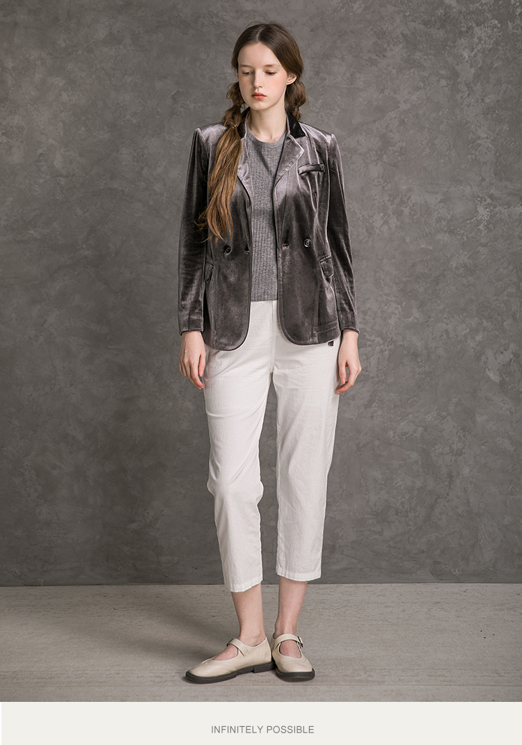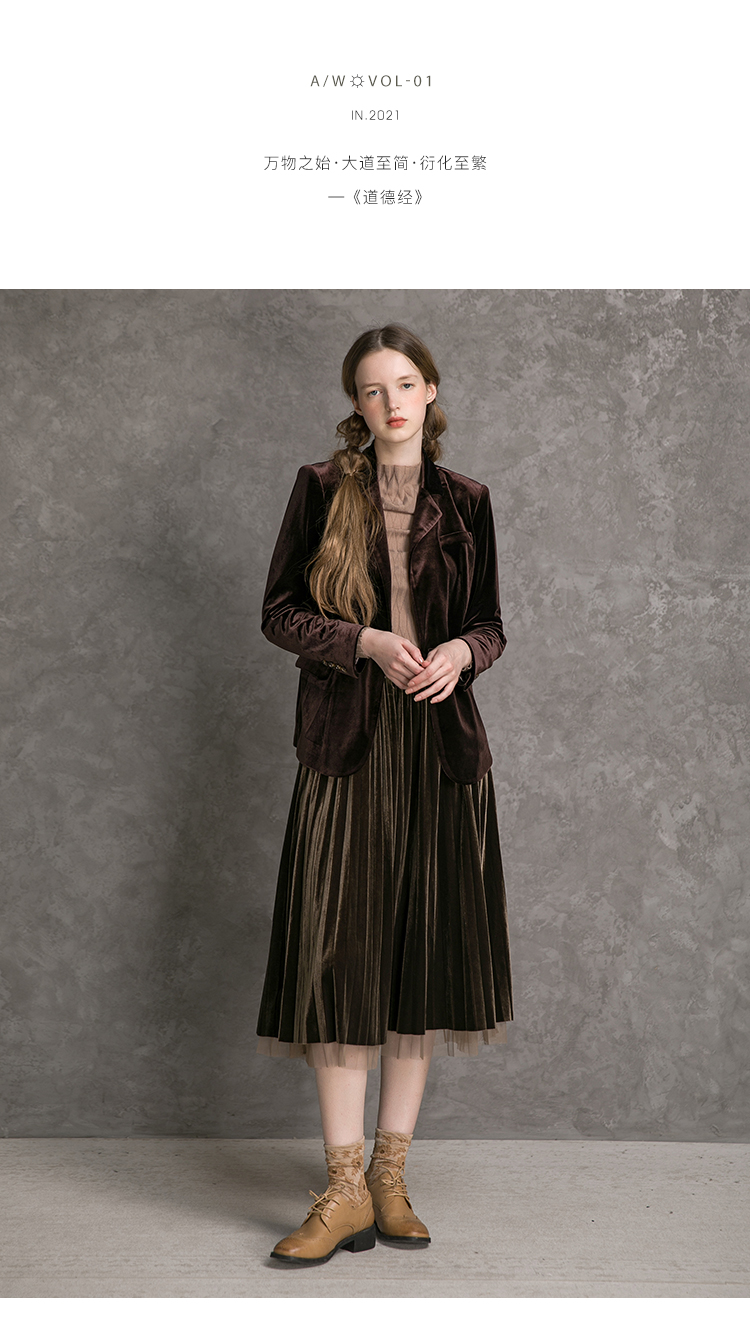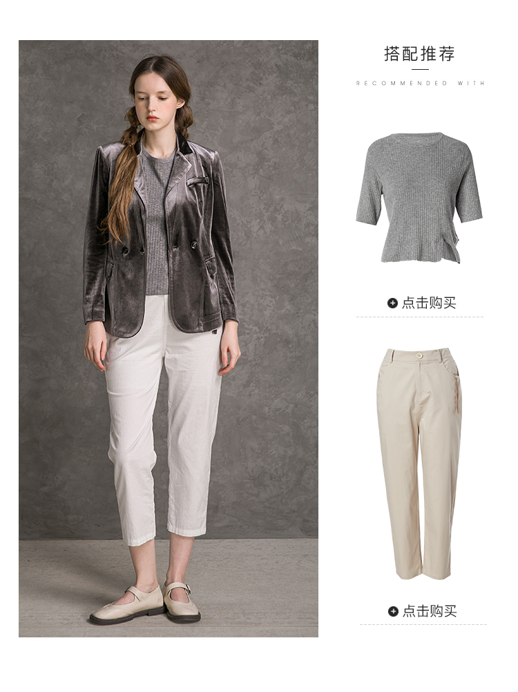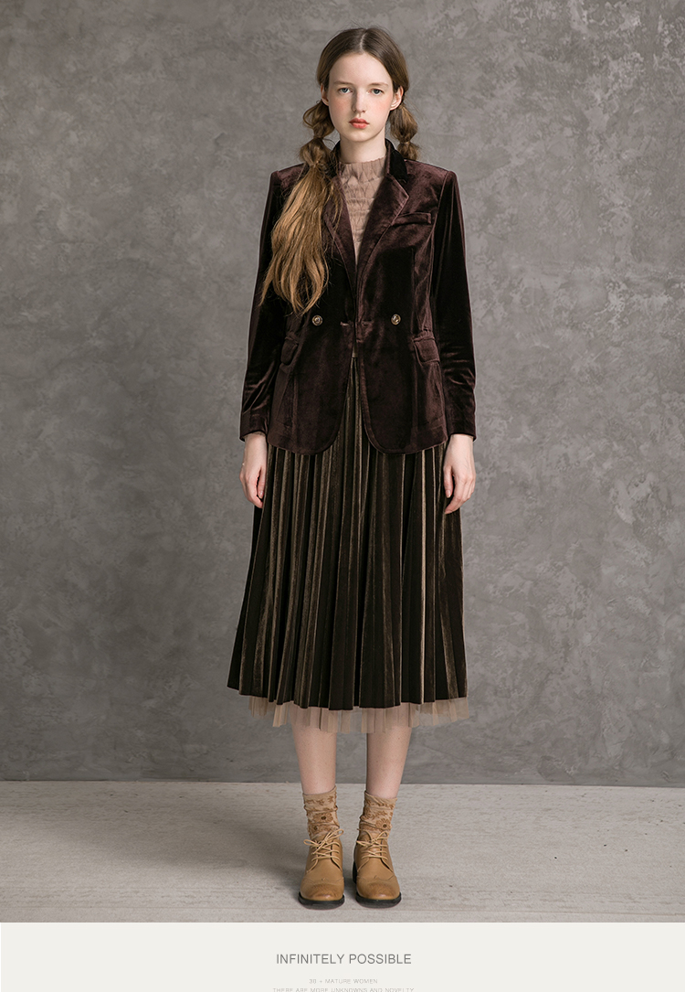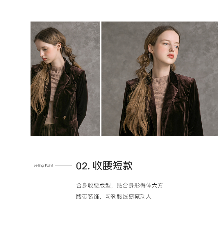 famecoco范可儿西装外套女秋长袖正装修身复古丝绒小西服D216AB301