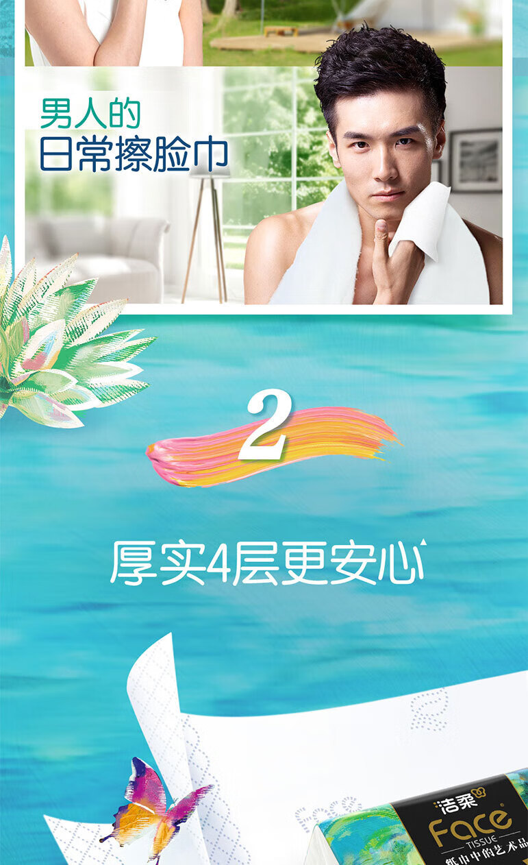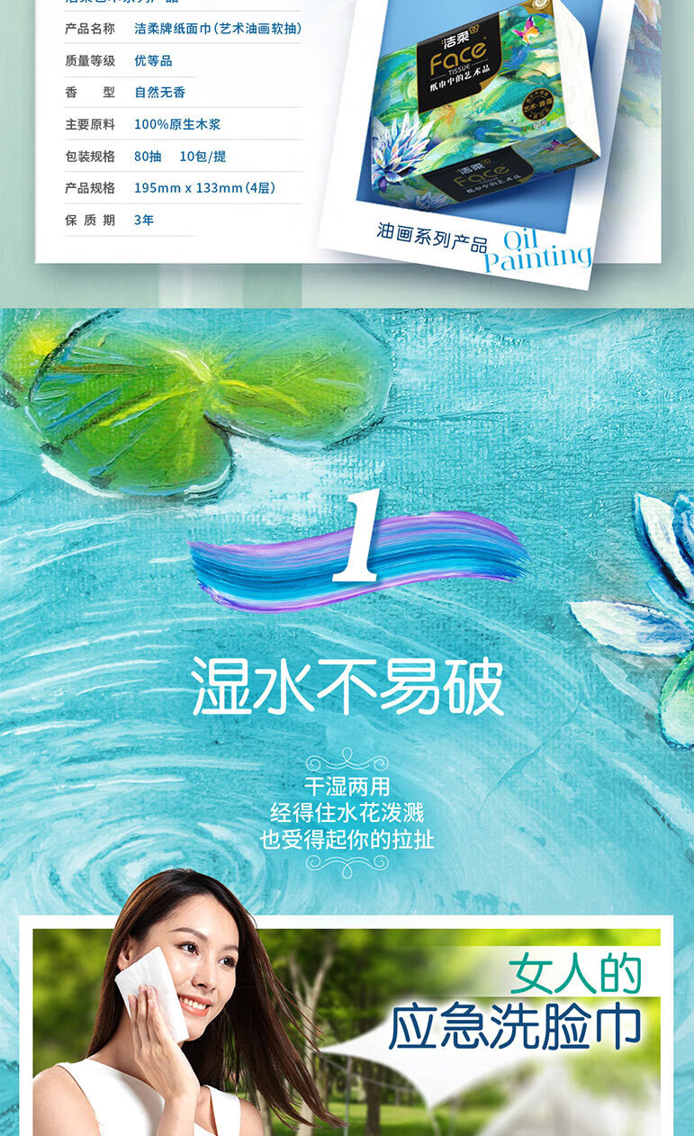 洁柔纸面巾(油画系列软抽)抽纸4层80抽*10包/提