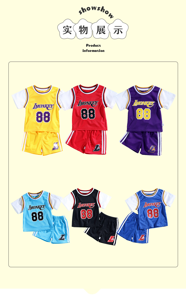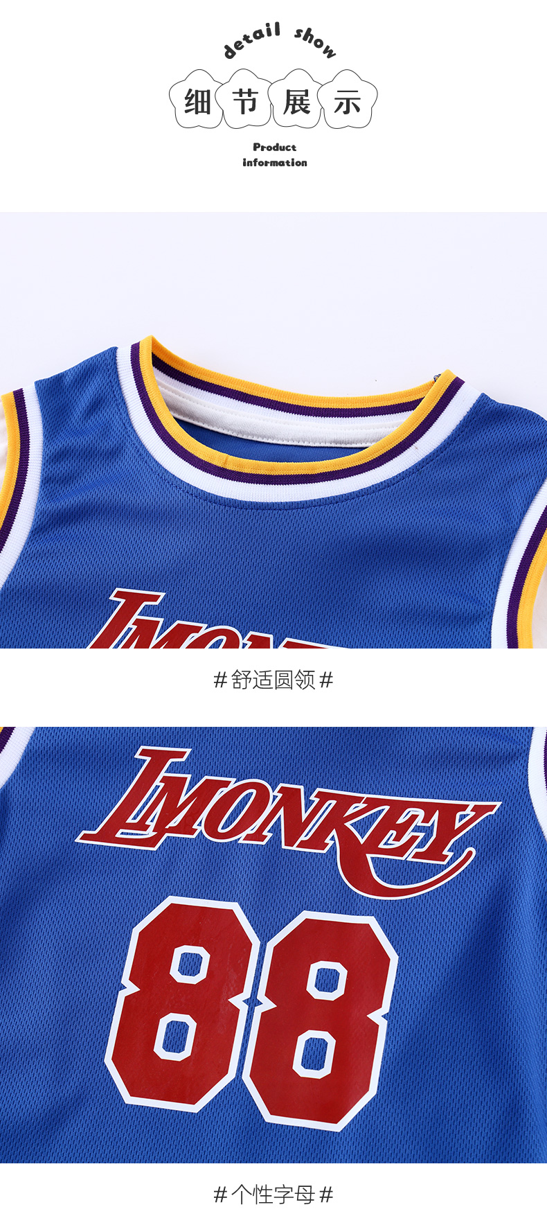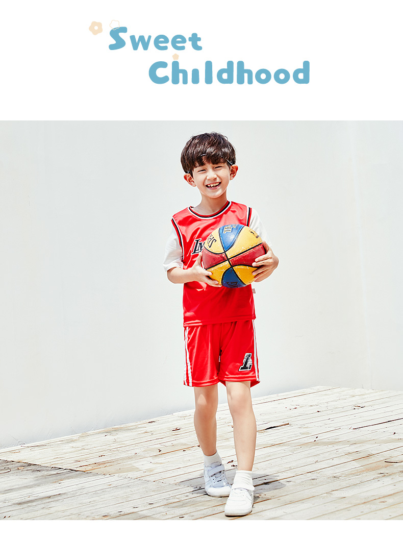 【两件五折 拍单件不发】Laffey&Monkey夏季儿童男女同款篮球服套装夏天假两件速干运动套装