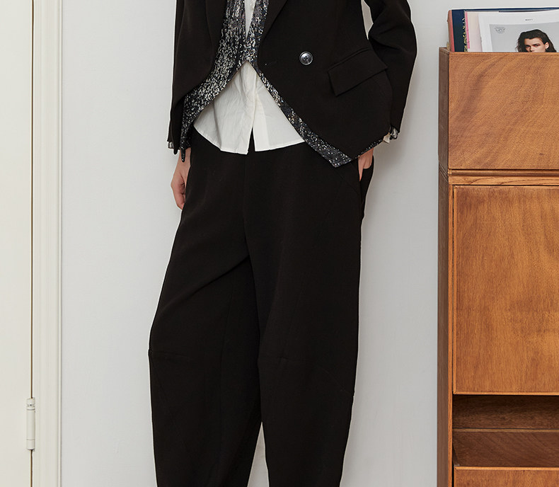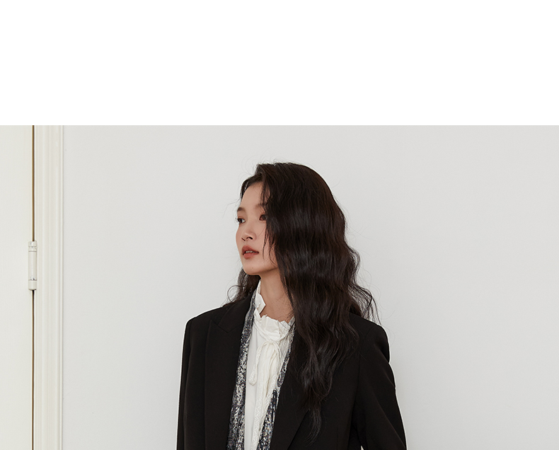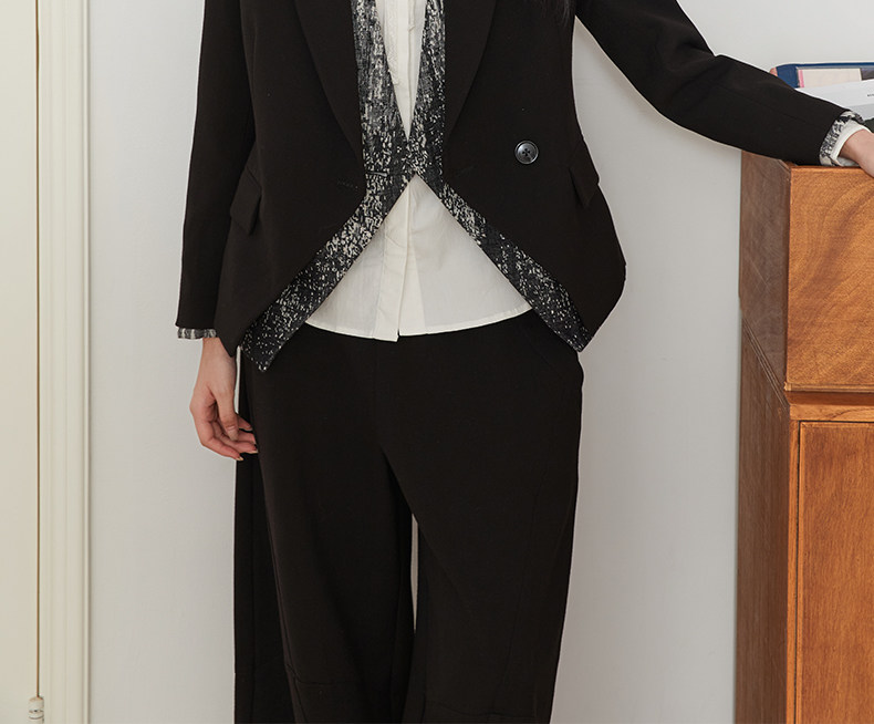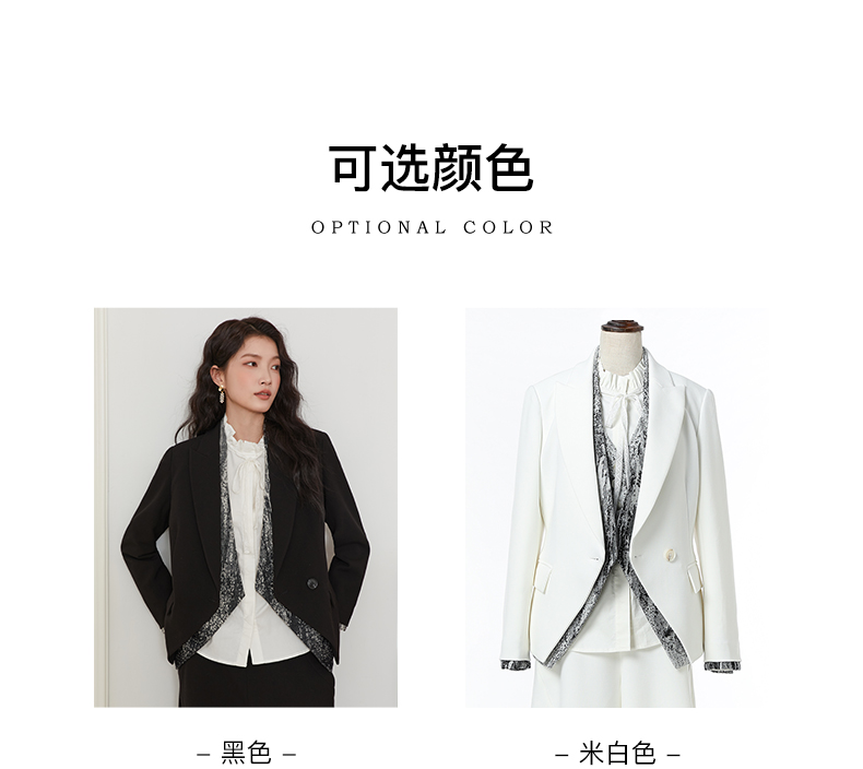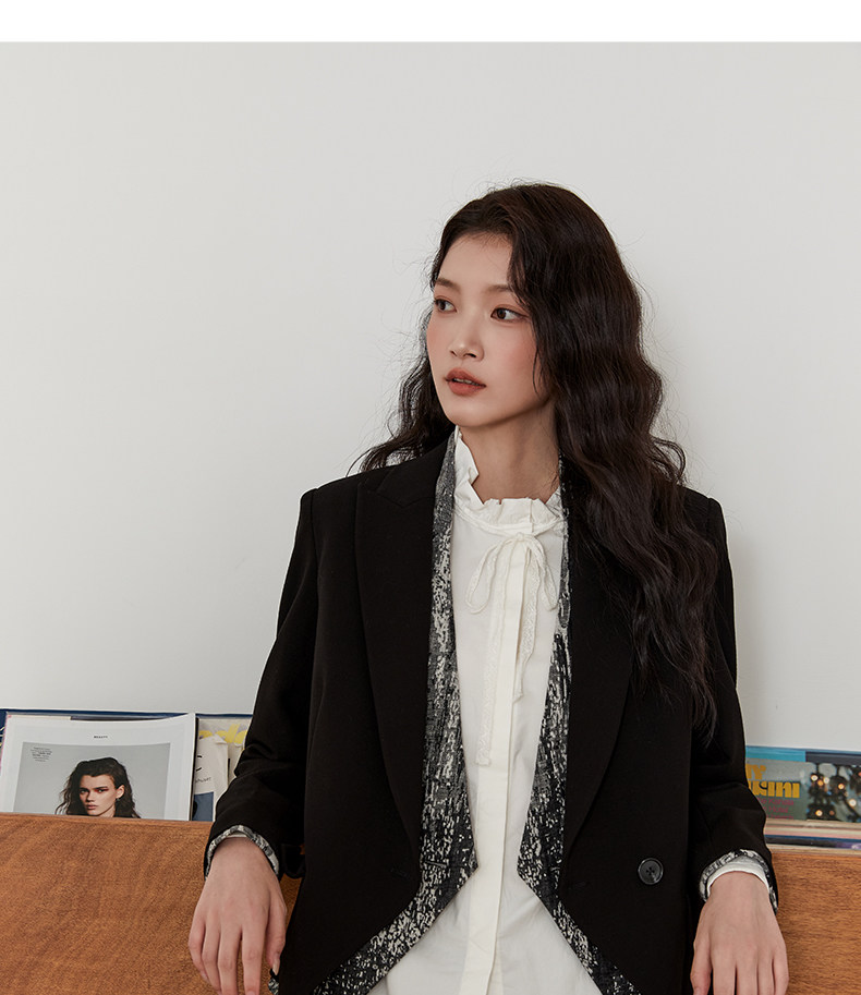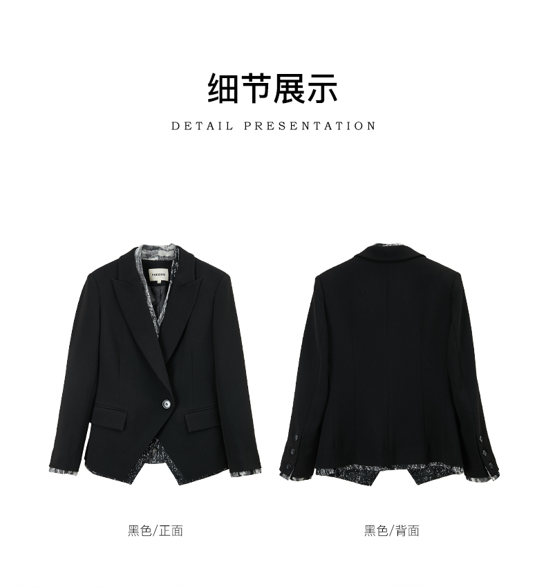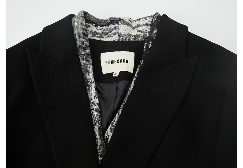 Famecoco范可儿假两件V领修身西装外套商务短款西服FAB6AW016