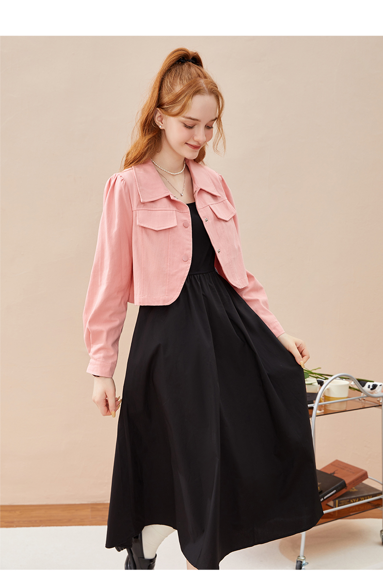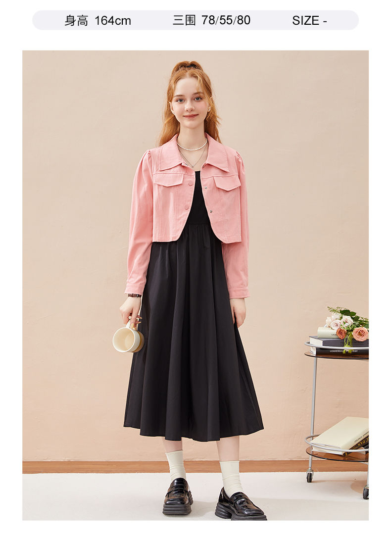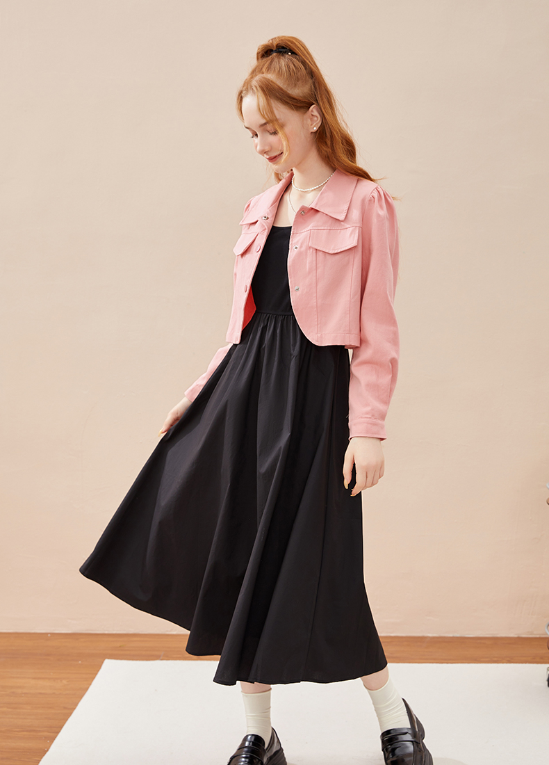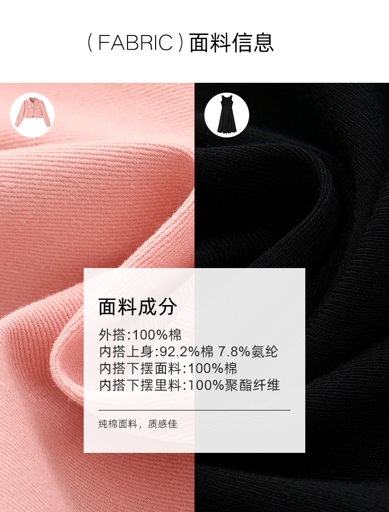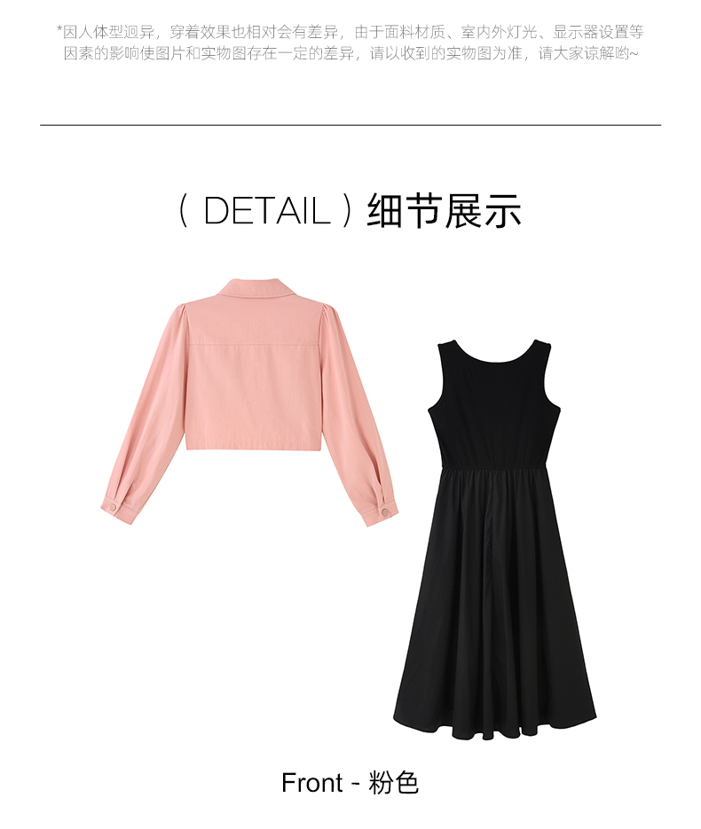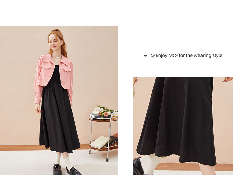 mc2黑色背心裙+粉色短外套女装2023秋季新款舒适两件套茶歇法式风