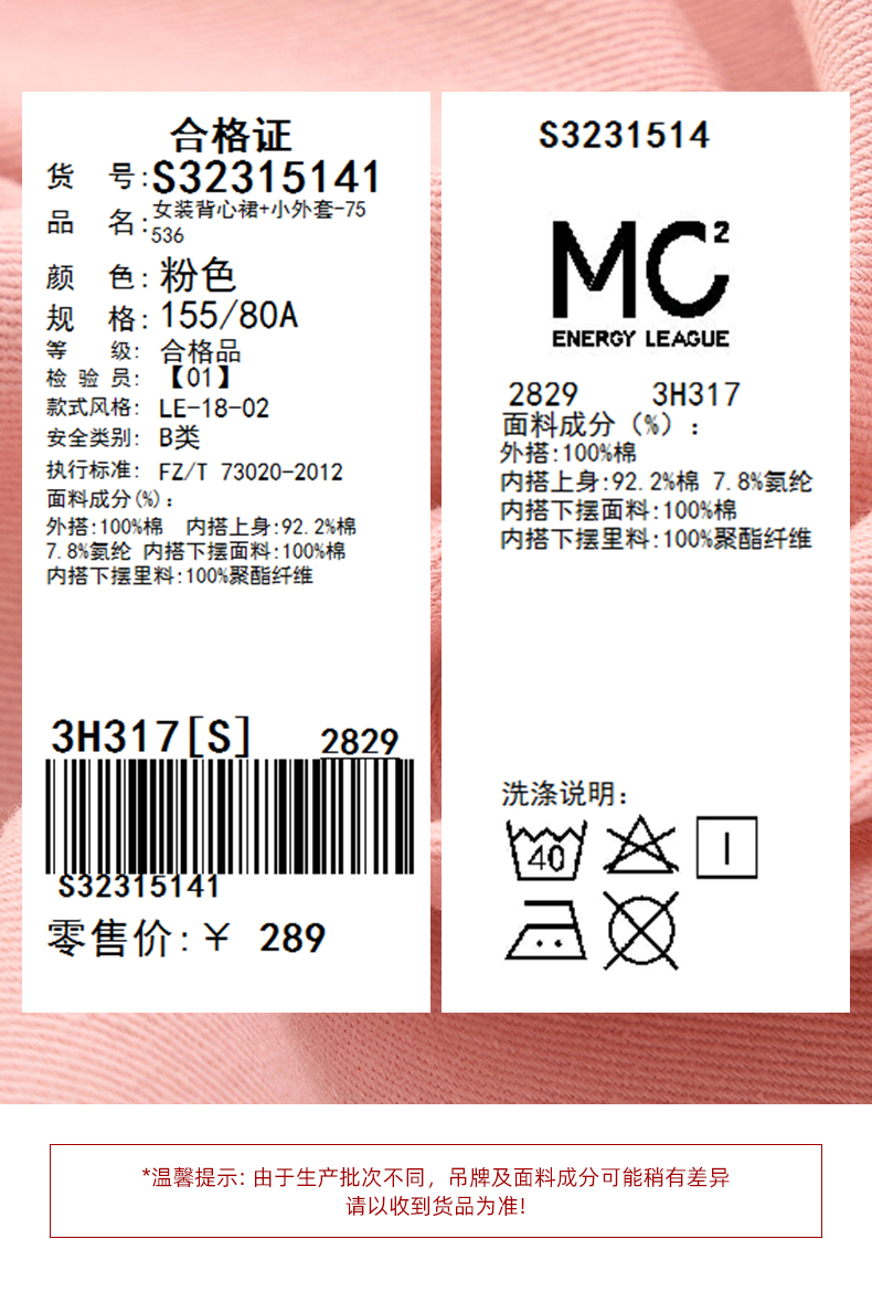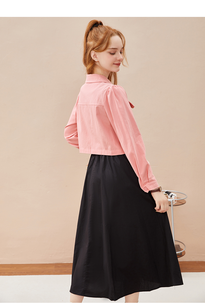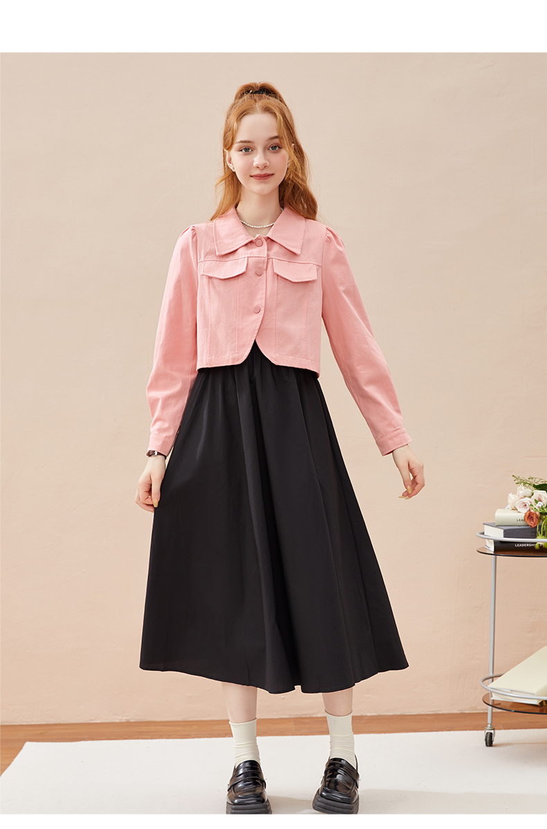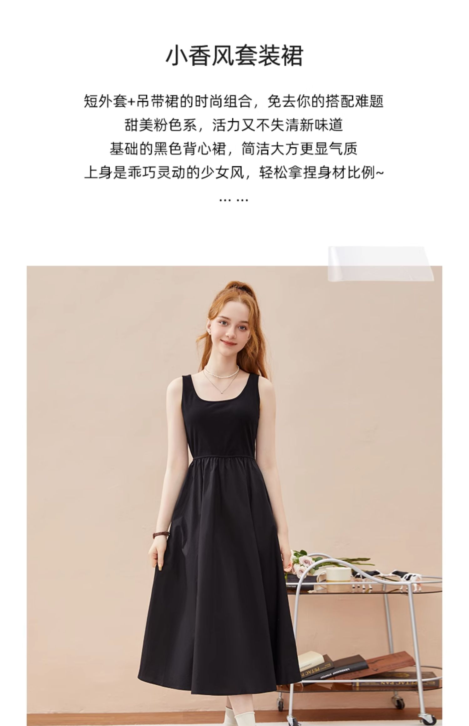 mc2黑色背心裙+粉色短外套女装2023秋季新款舒适两件套茶歇法式风