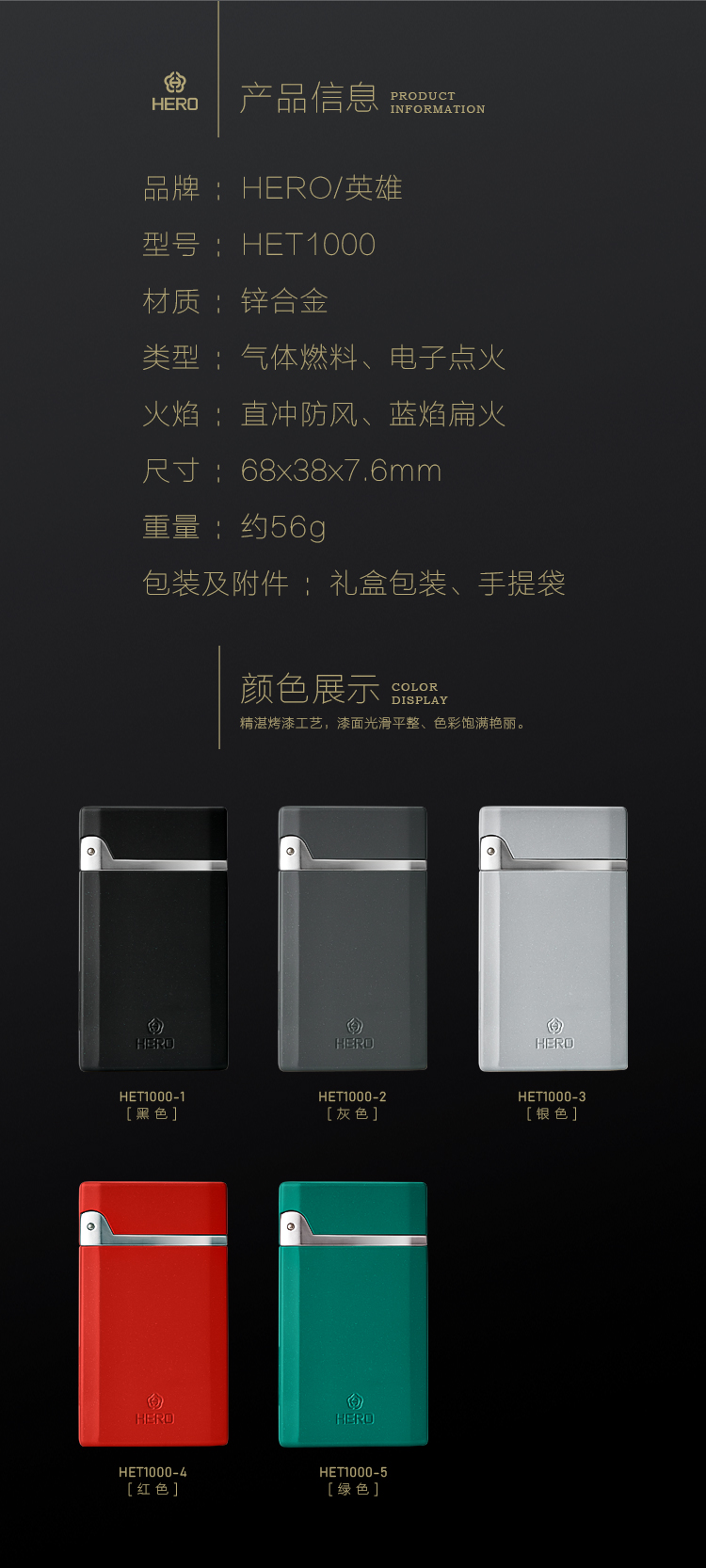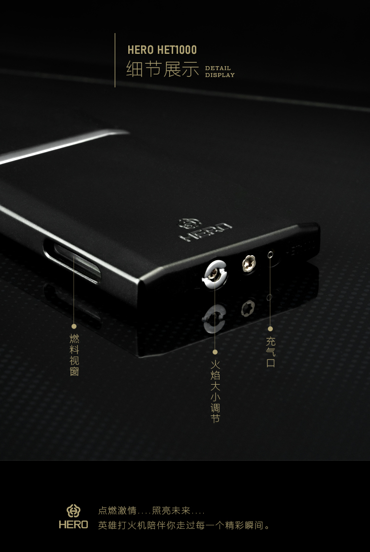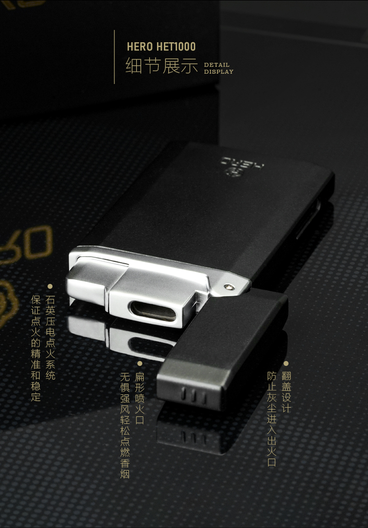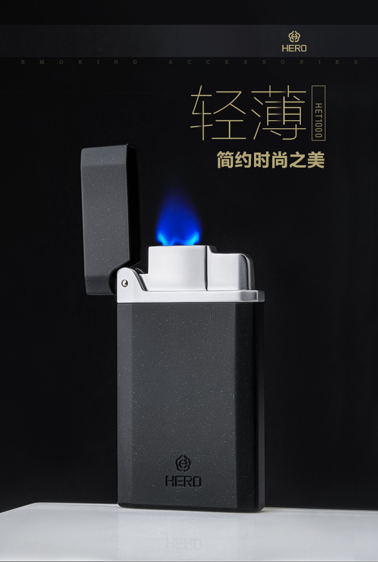 HERO英雄打火机1000超薄防风打火机直喷防风扁火男士商务火机男友礼物