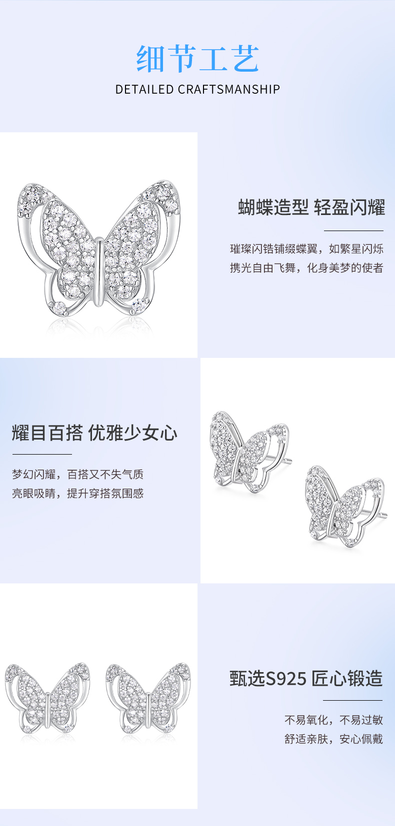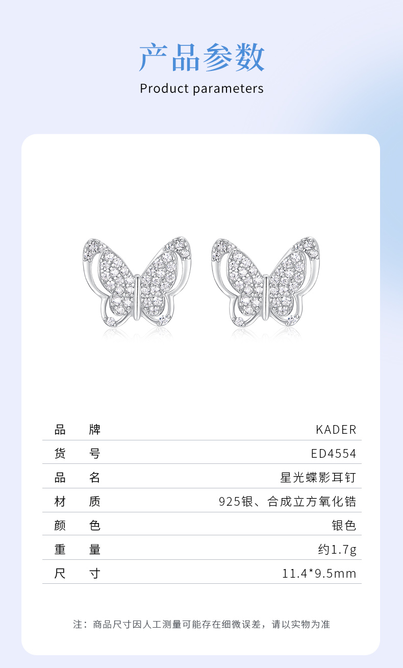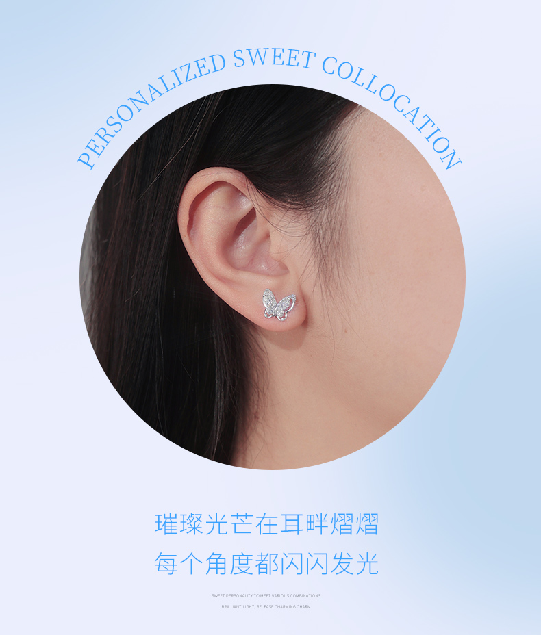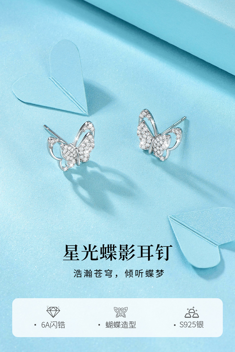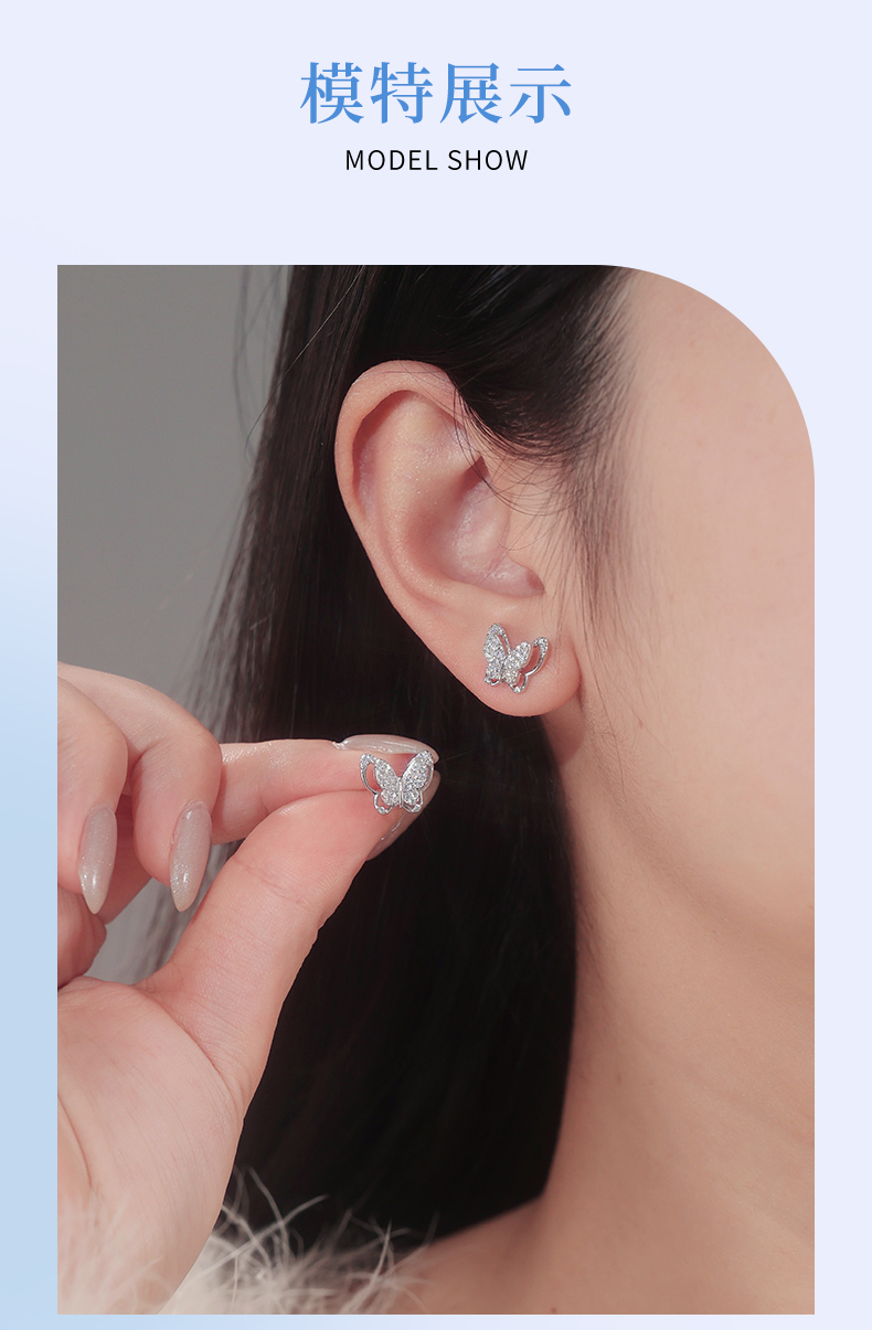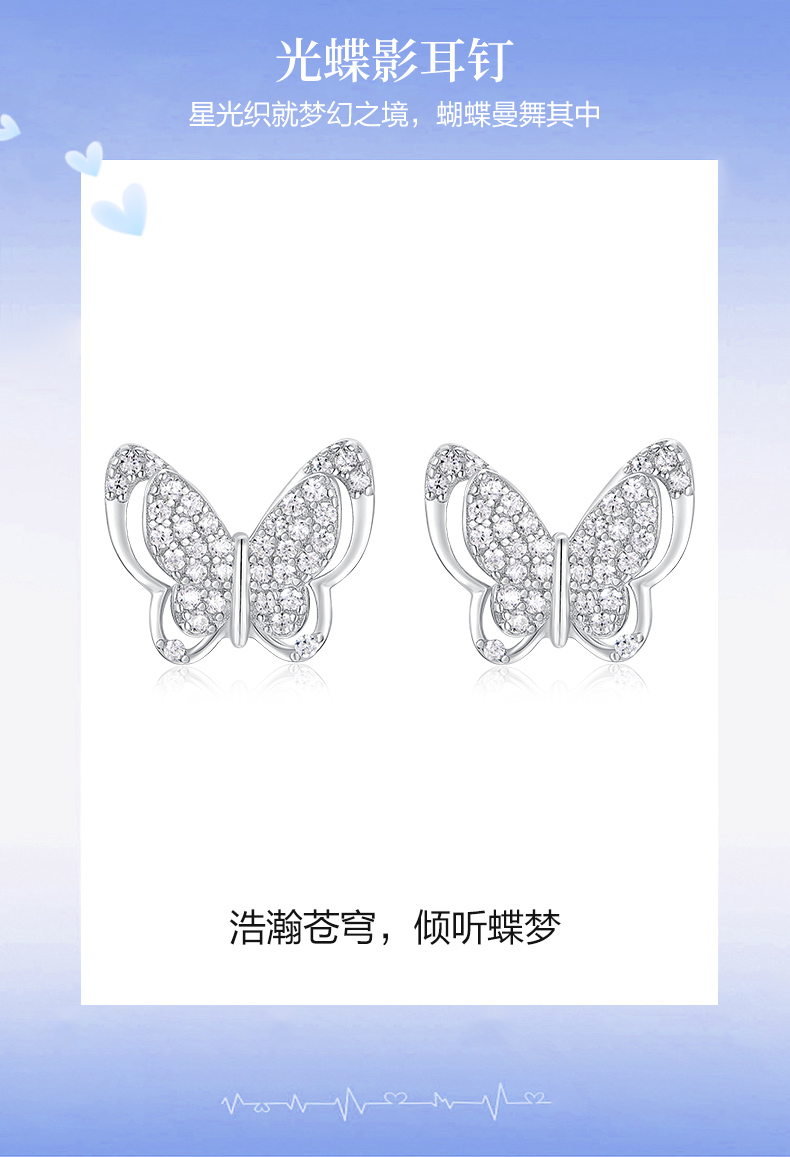 卡蒂罗/KADER 星光蝶影纯银耳钉 招财蝴蝶轻奢精致ins风耳饰 甜蜜饰爱高级感通勤百搭精美礼盒款养耳洞#好运