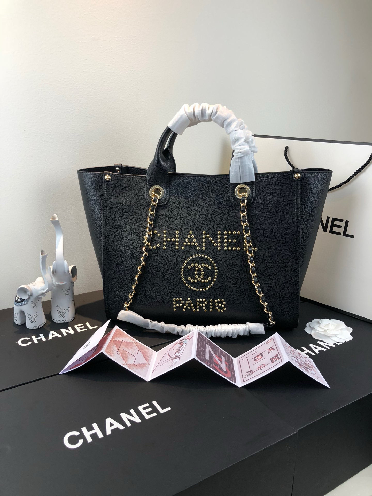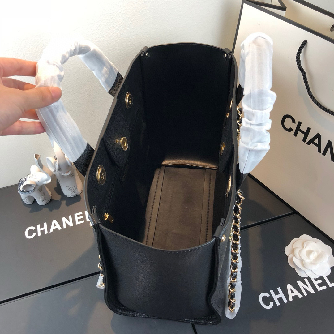 夏季特惠💰1200 原单香奈儿57067 Coco 早春走秀款 金属钉珠鱼子酱牛皮购物袋