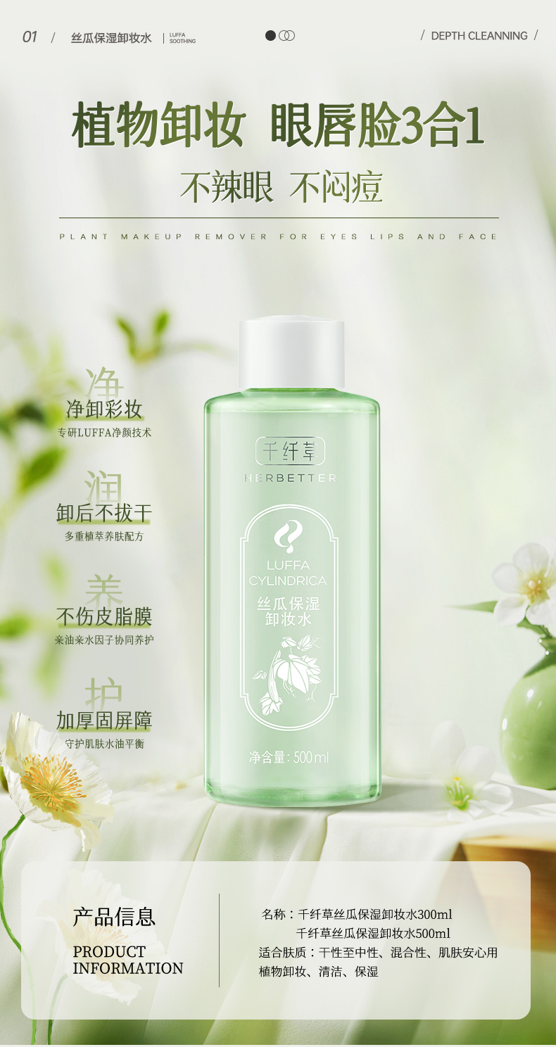 【2瓶28.9元起】千纤草丝瓜保湿卸妆水300ml/500ml*2瓶装