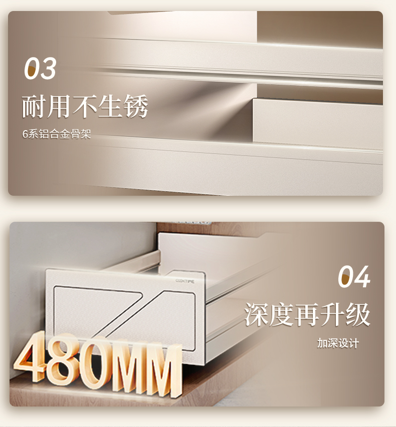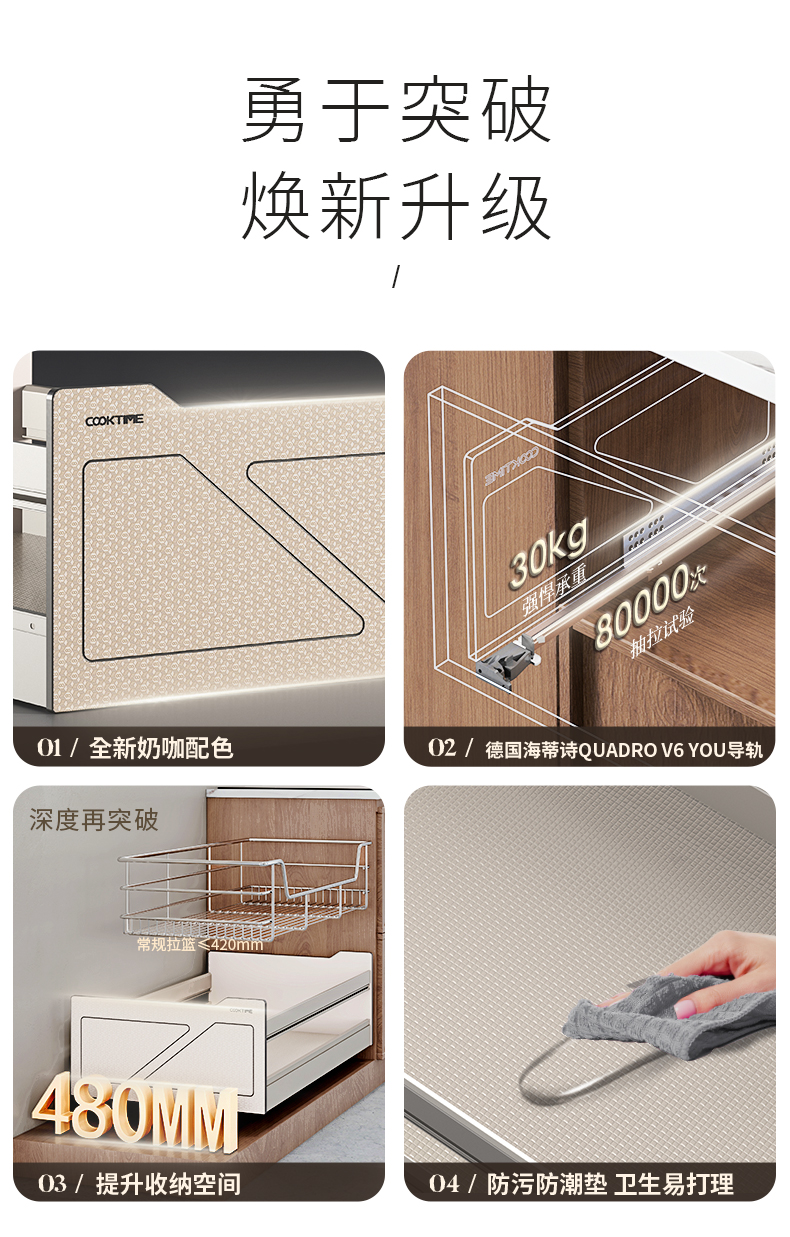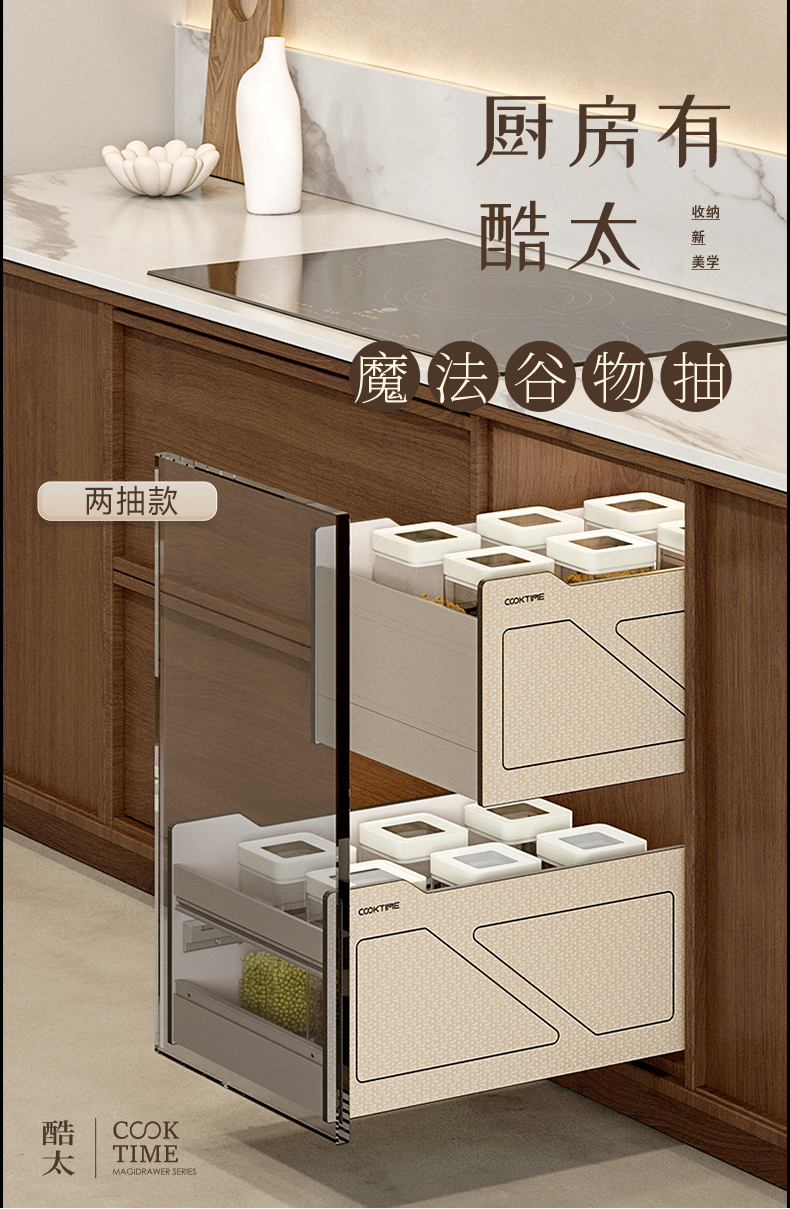 - 酷太坚持8年自主研发,已获得专利证书130项,拥有一套领先市场的厨房收纳系统,为千万中国家庭解决厨房脏乱差,缔造厨房新生活。