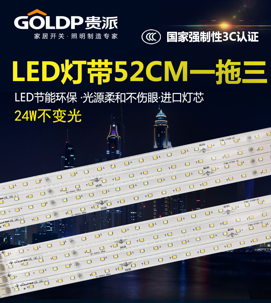 贵派 LED灯带52cm一拖三 3*16W (48W)白光