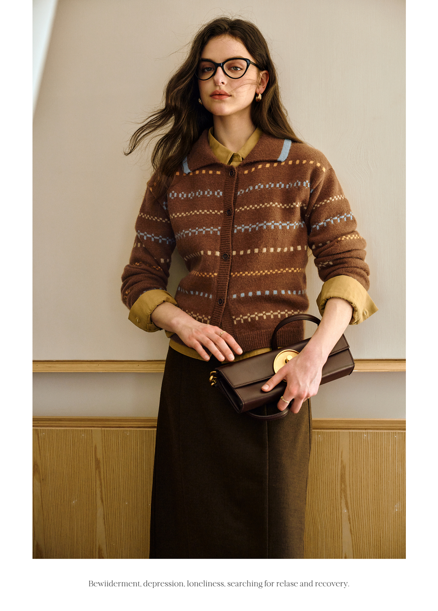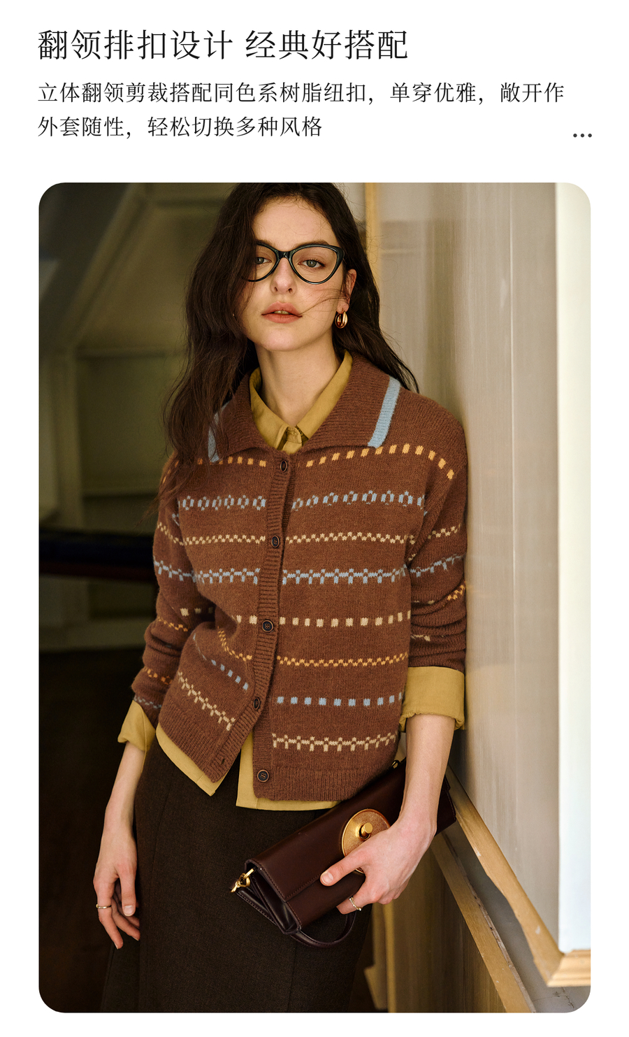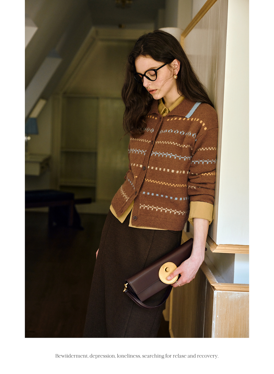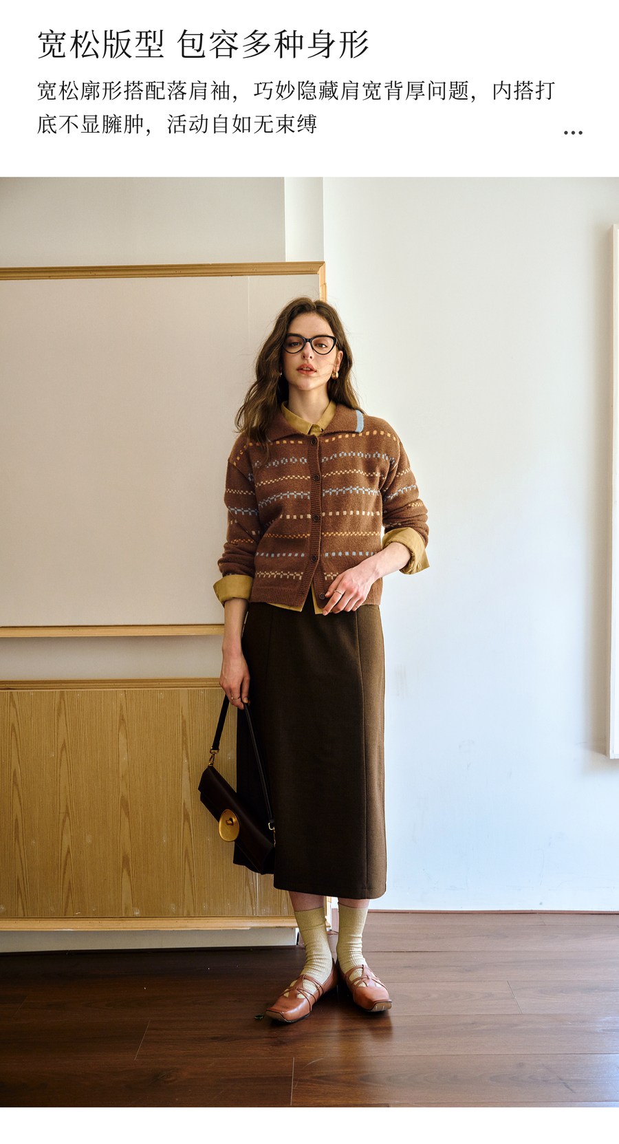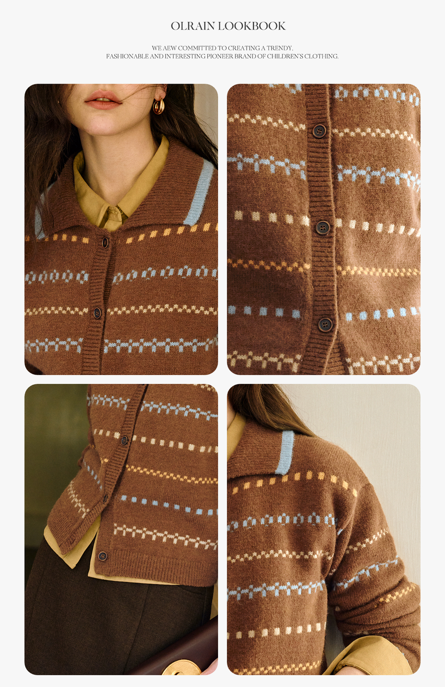 OLrain欧芮儿休闲复古翻领宽松慵懒毛衣开衫女秋季2025新款上衣