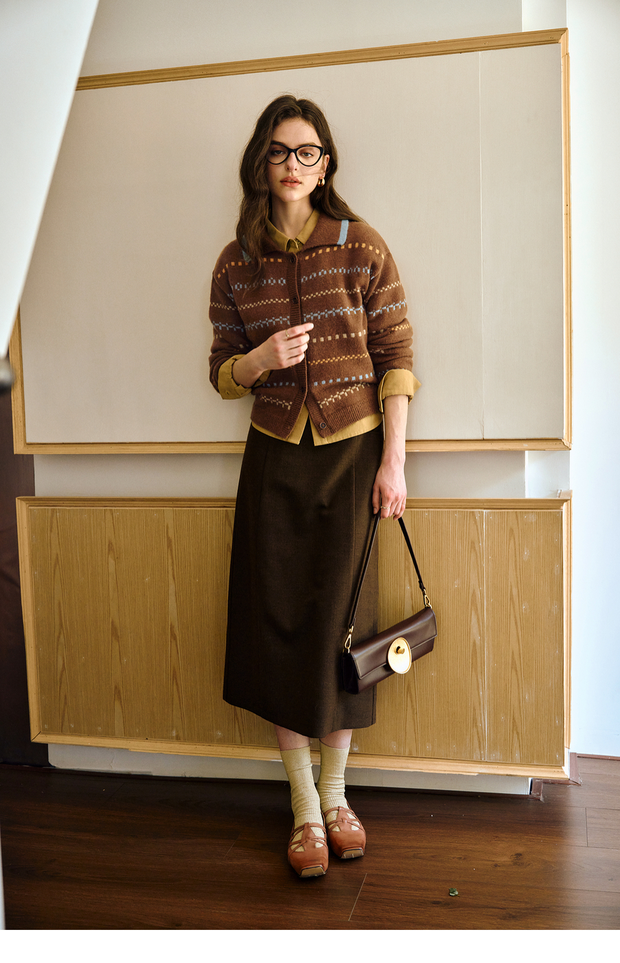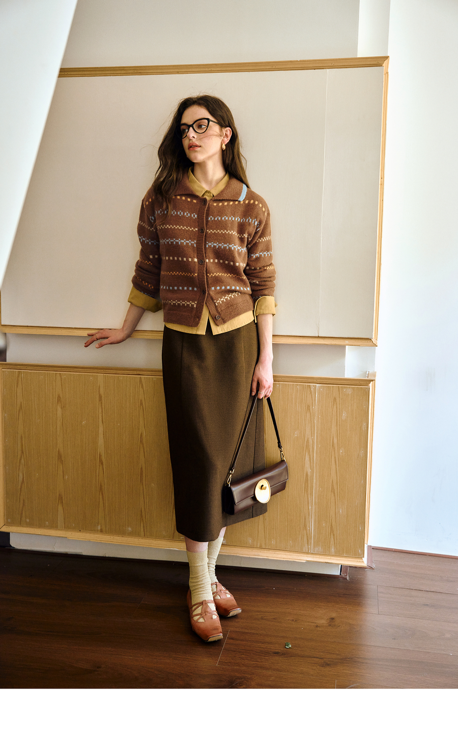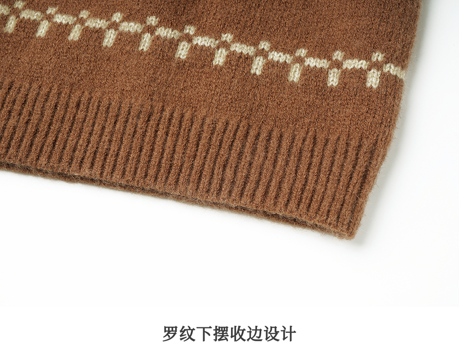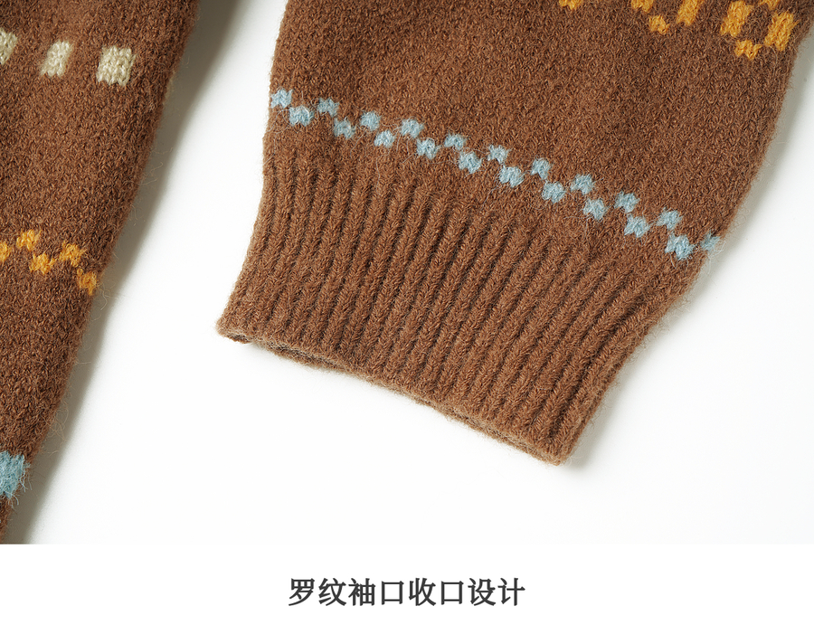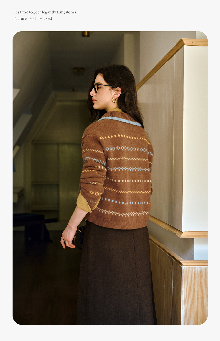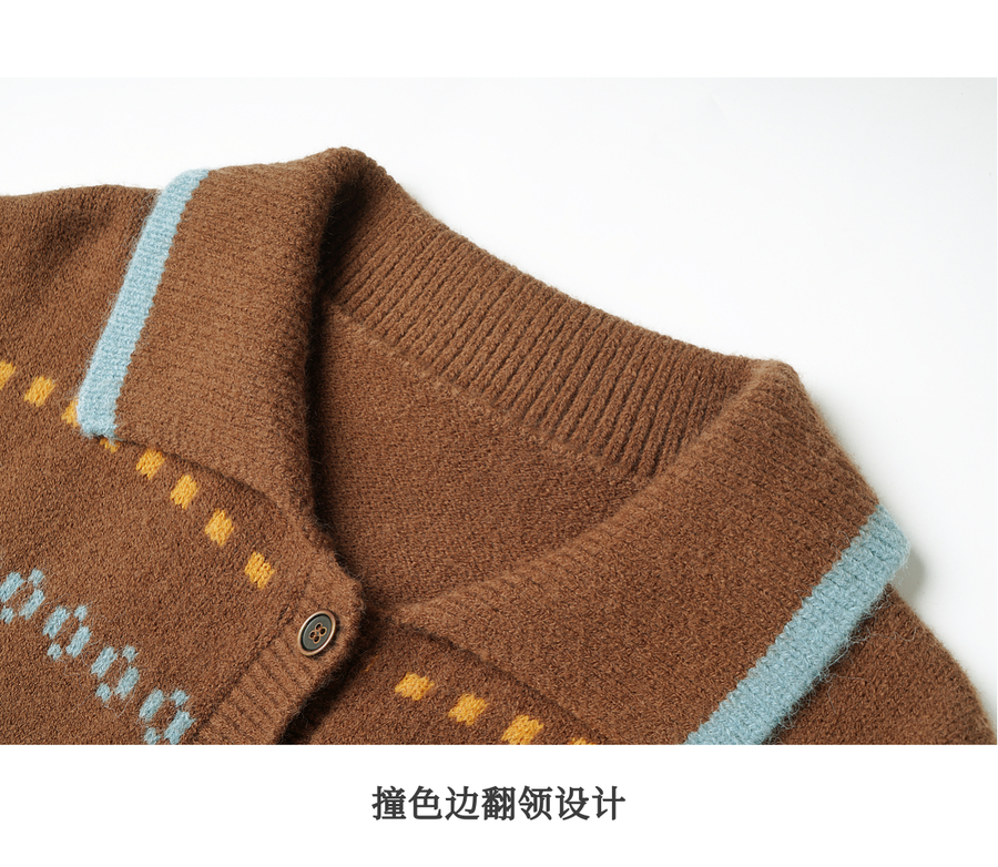 OLrain欧芮儿休闲复古翻领宽松慵懒毛衣开衫女秋季2025新款上衣