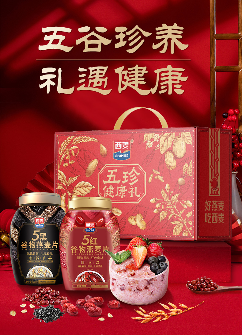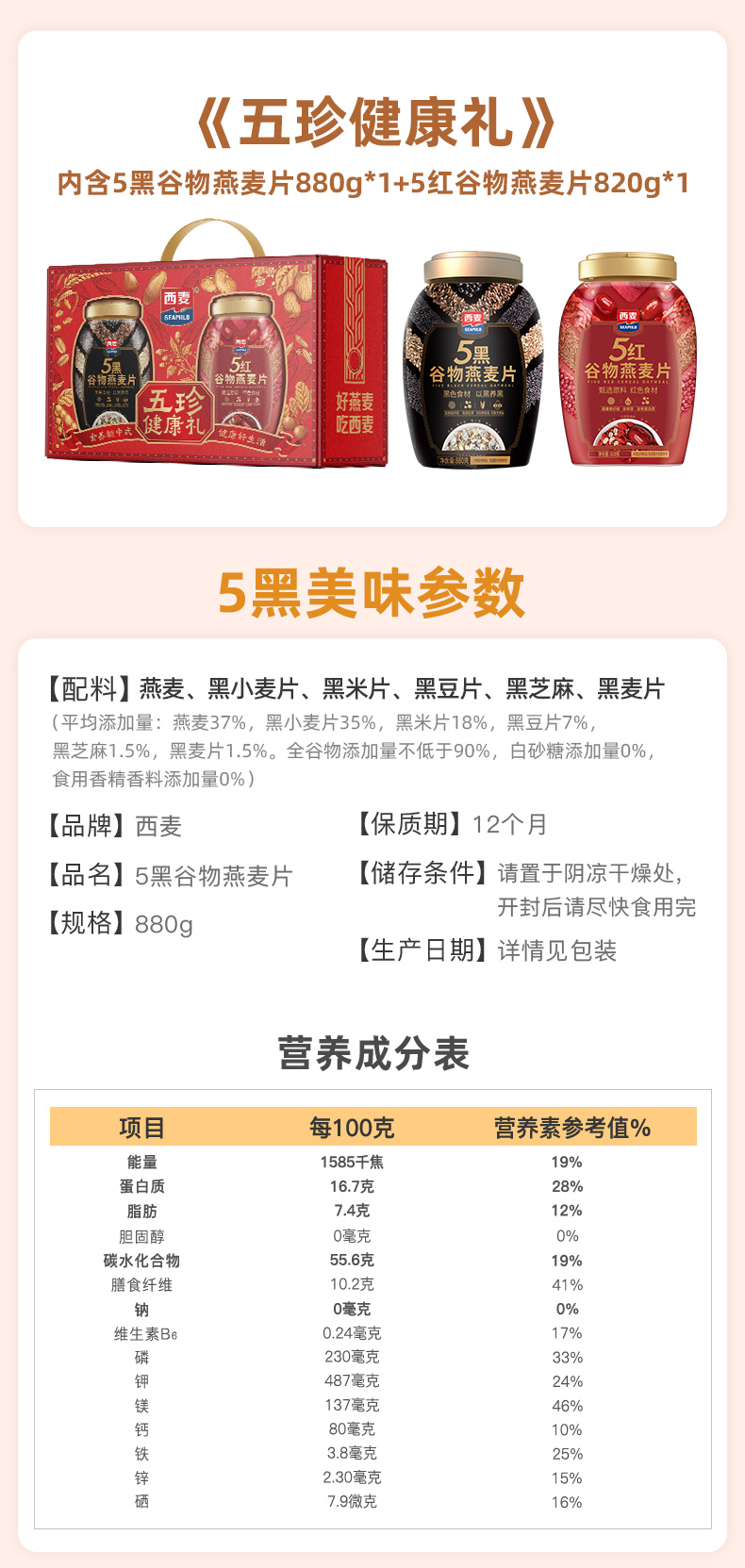 优选 | 西麦五珍健康礼盒1700g(五黑谷物燕麦片880g+五红谷燕麦片820g)