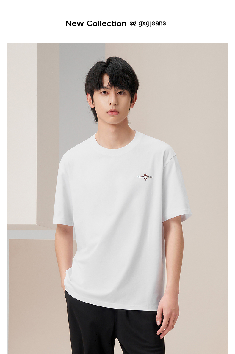gxg.jeans男装2024年夏季热卖双色简约刺绣设计圆领短袖T恤J24D442043