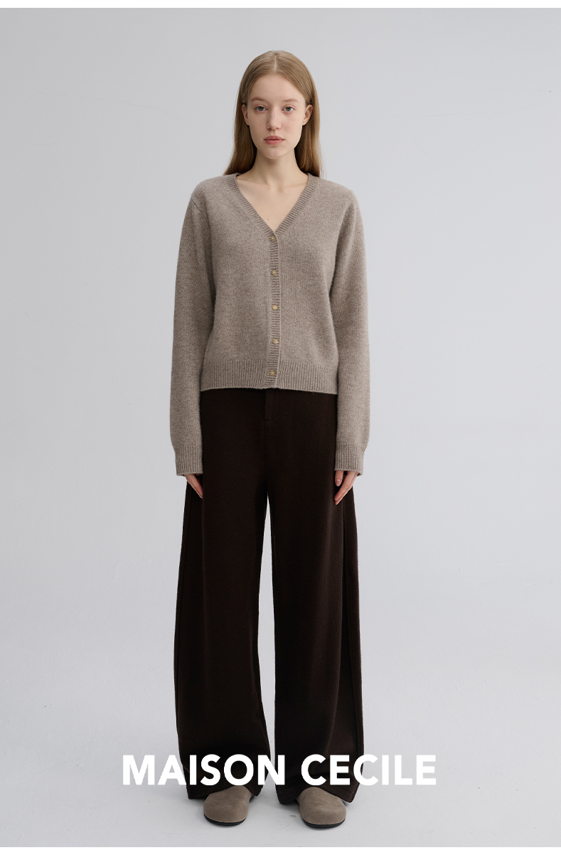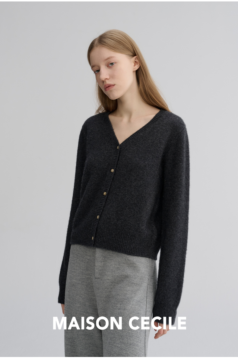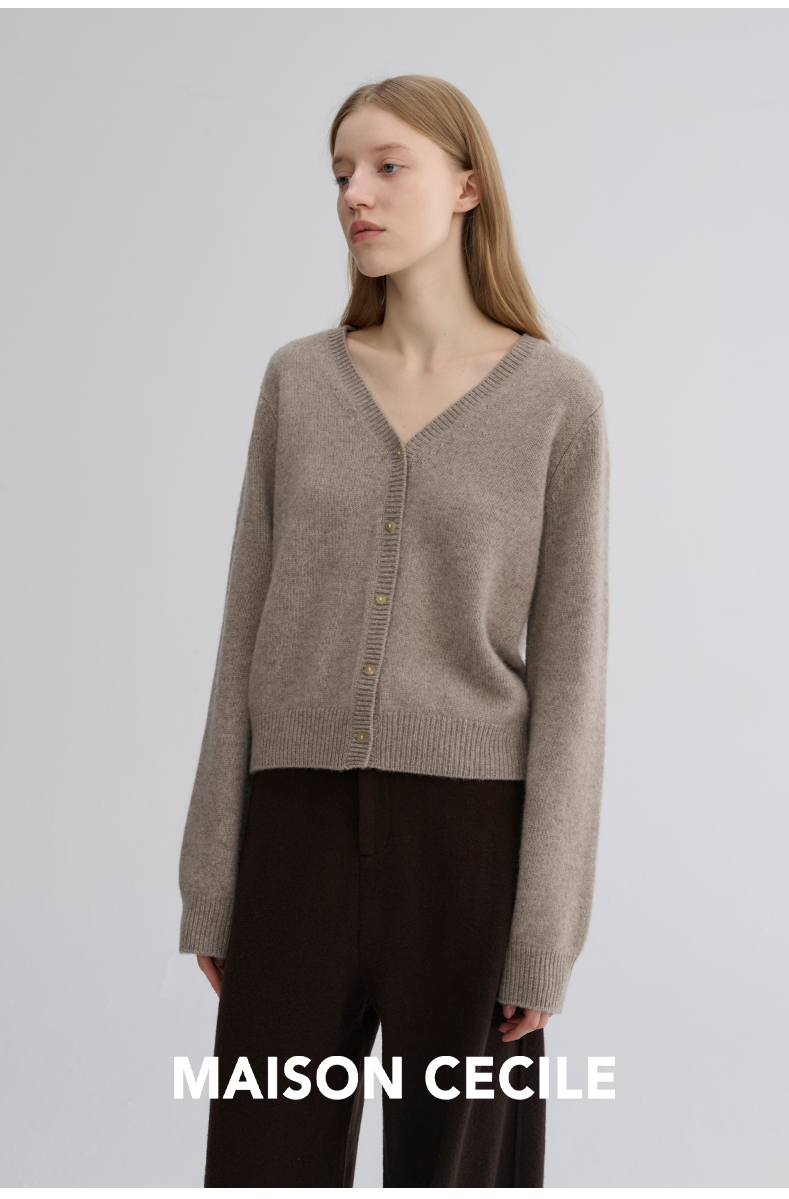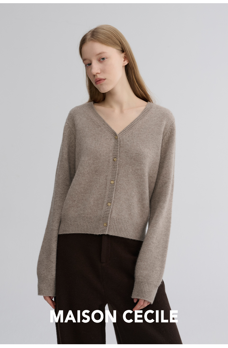 MAISON CECILE 羊绒羊毛亲肤慵懒感温柔精致V领软糯针织小开衫