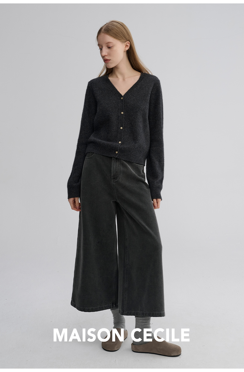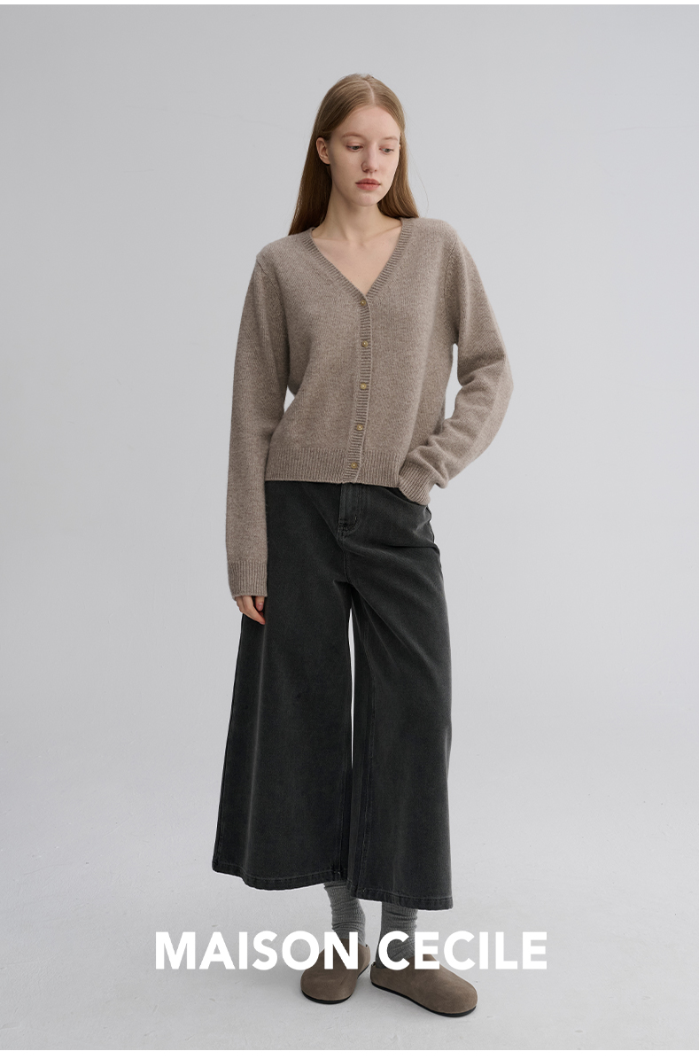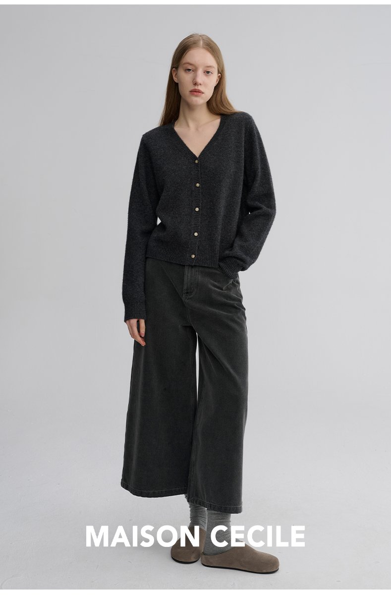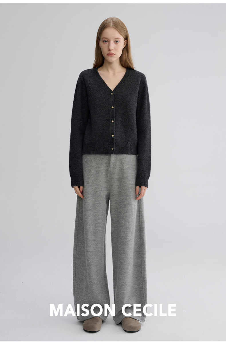 MAISON CECILE 羊绒羊毛亲肤慵懒感温柔精致V领软糯针织小开衫