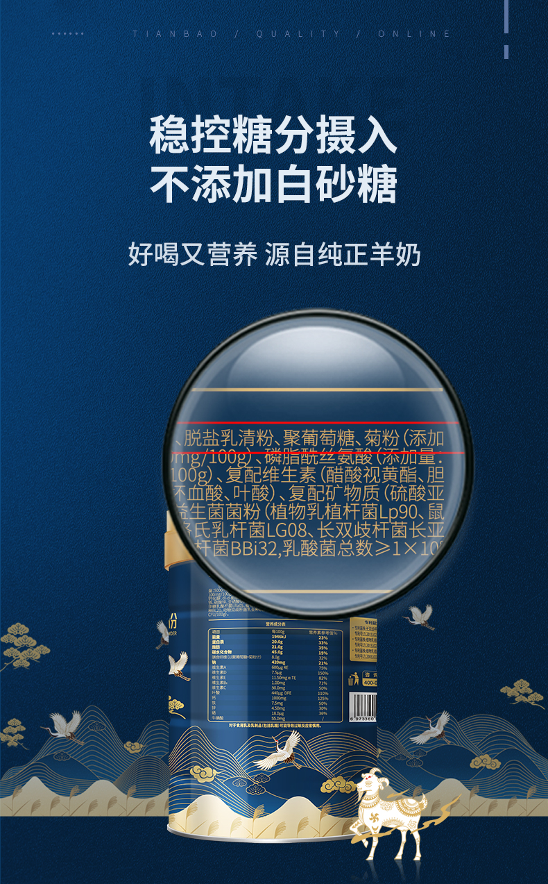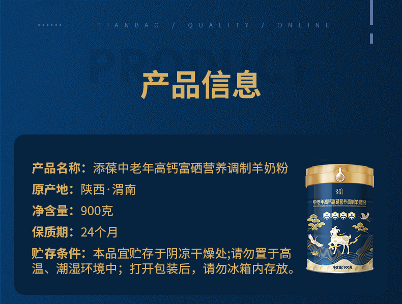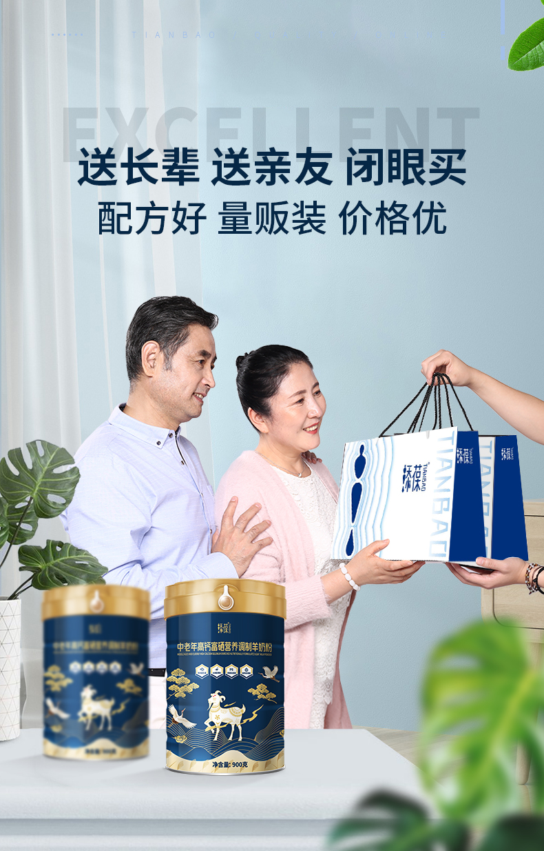 新国标添葆中老年高钙富硒羊奶粉无添加蔗糖900g