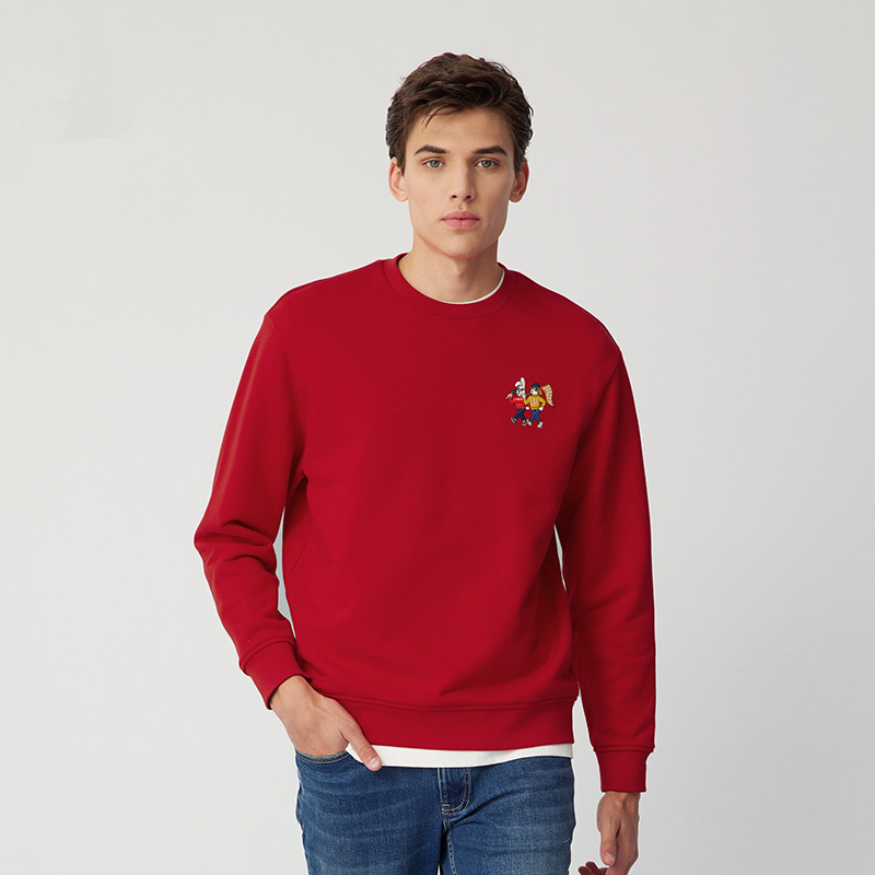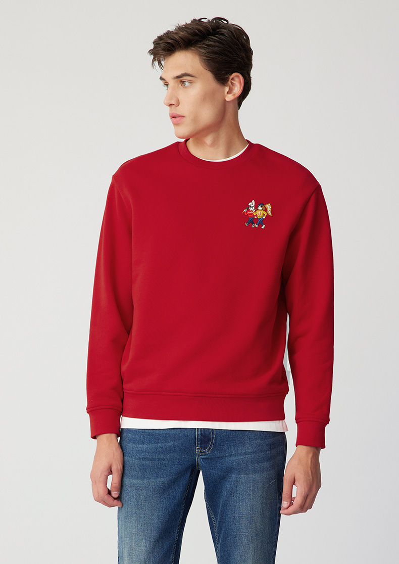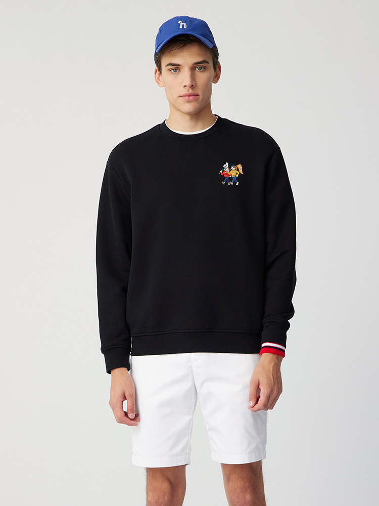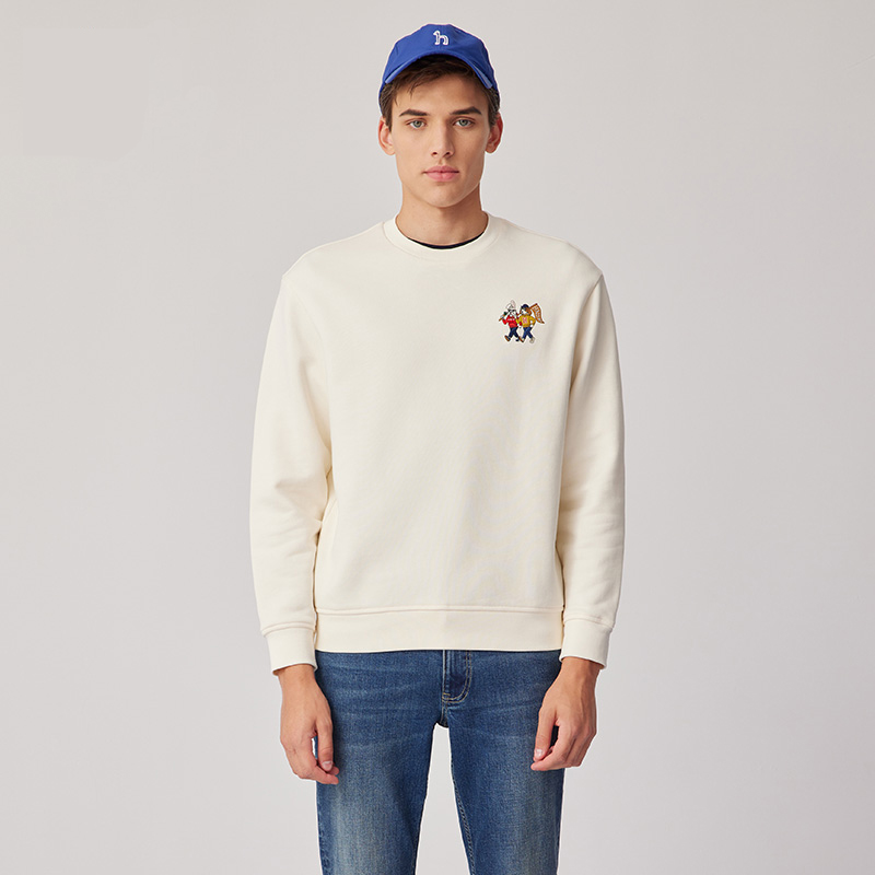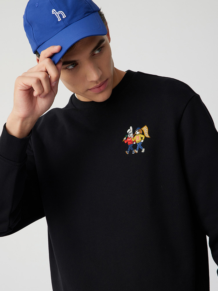 【新年系列】H@ZZYS 2024春季 刺绣图案圆领卫衣时尚宽松T恤男