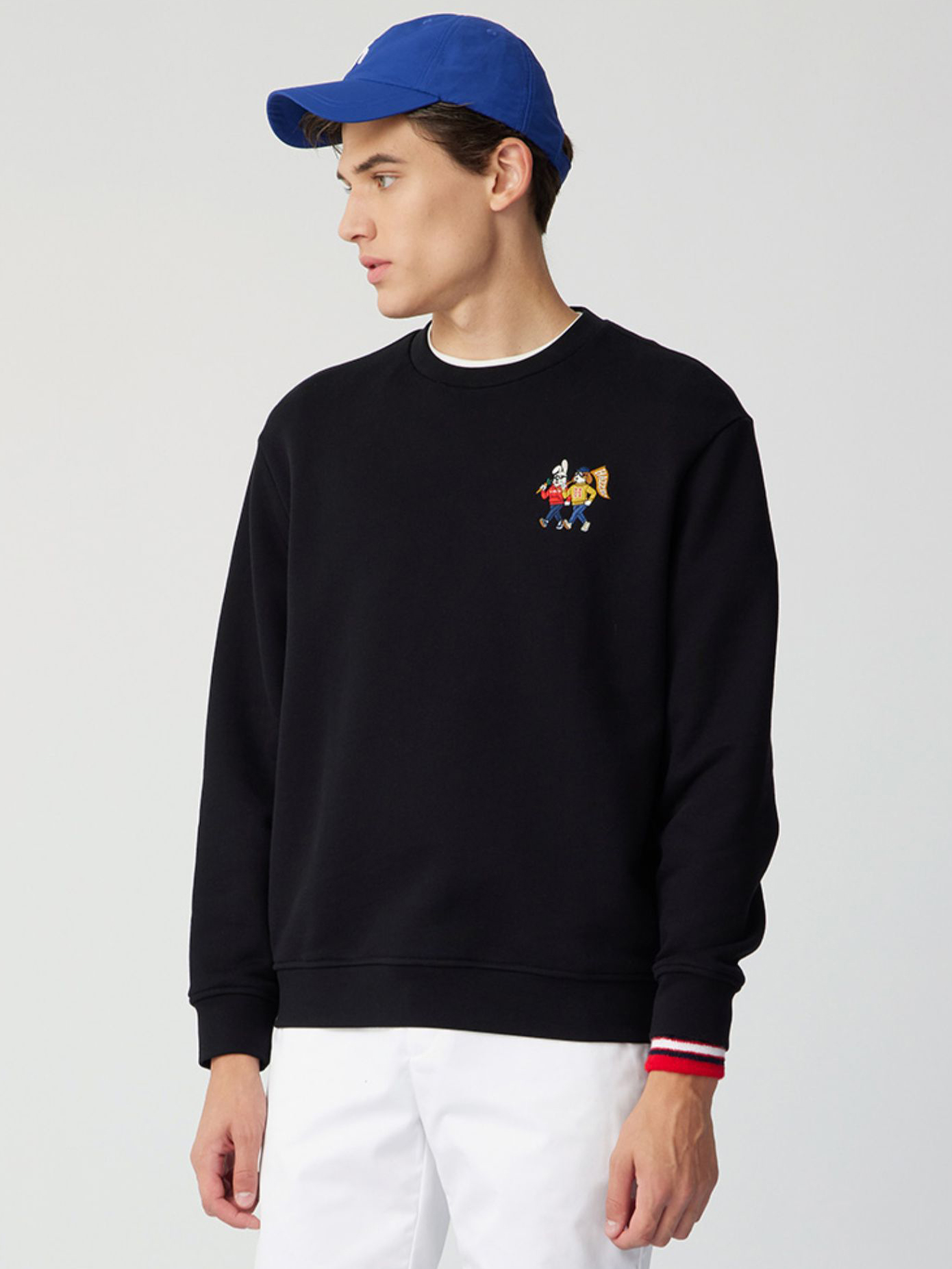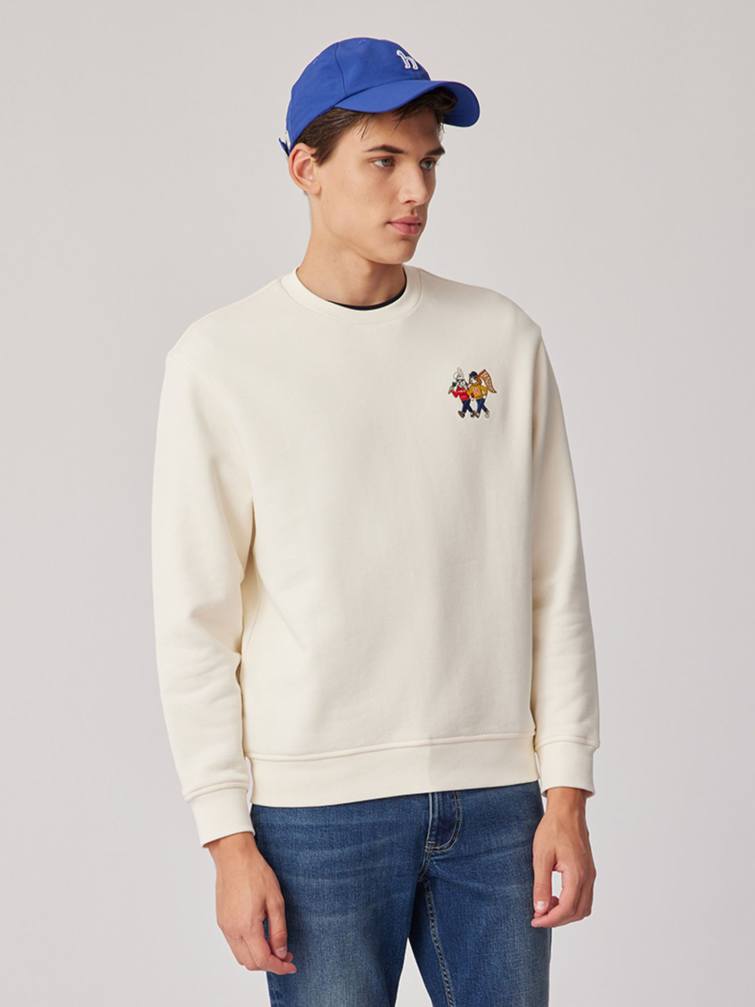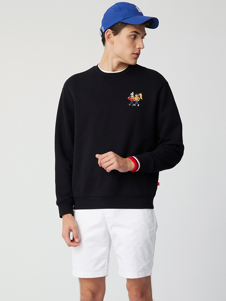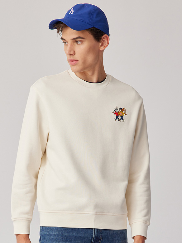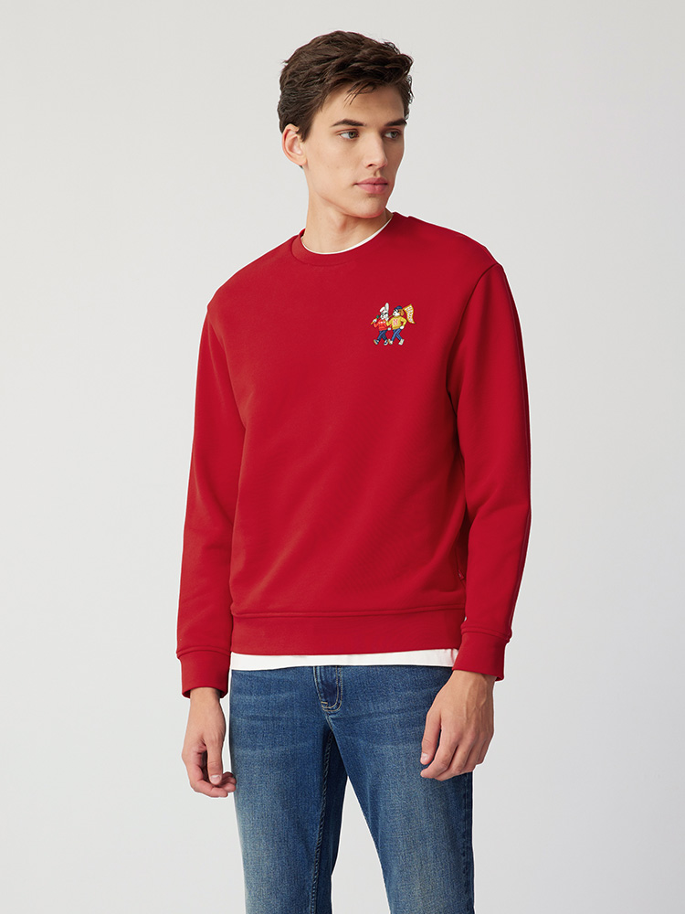 【新年系列】H@ZZYS 2024春季 刺绣图案圆领卫衣时尚宽松T恤男