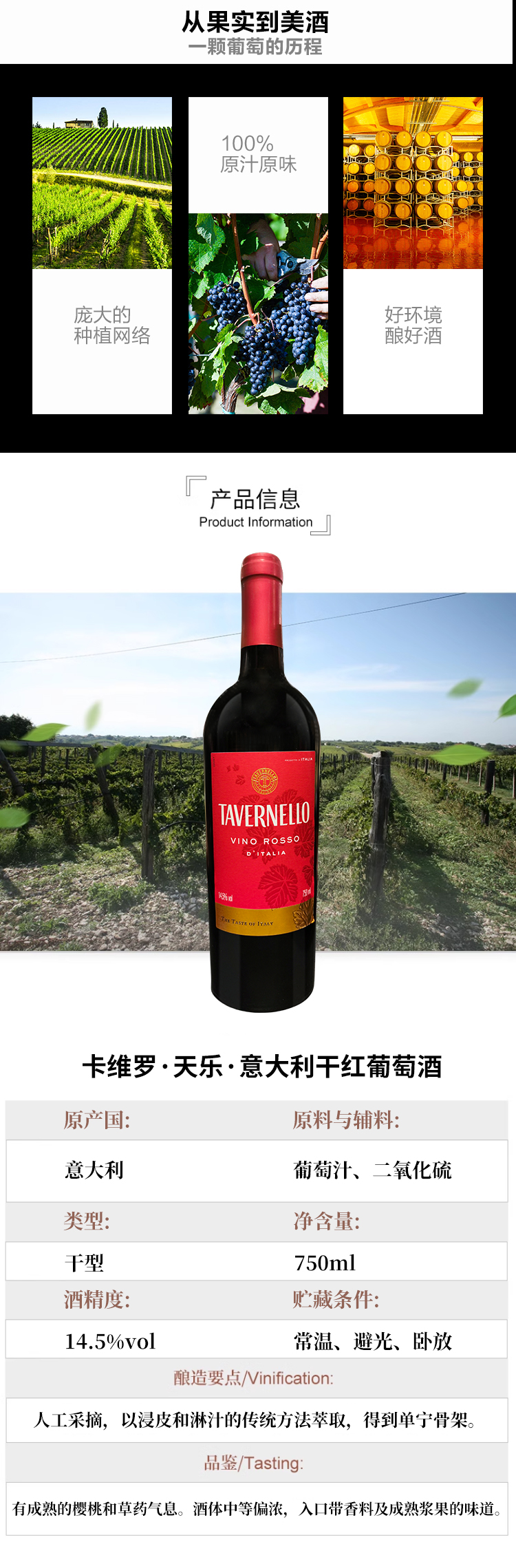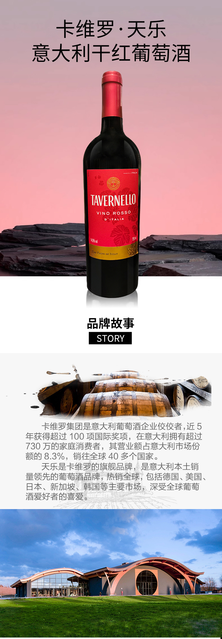 意大利进口卡维罗.天乐意大利干红葡萄酒750ml