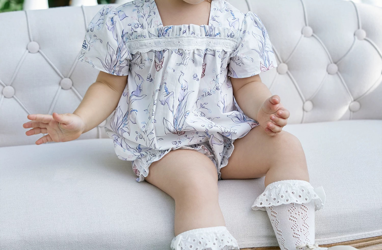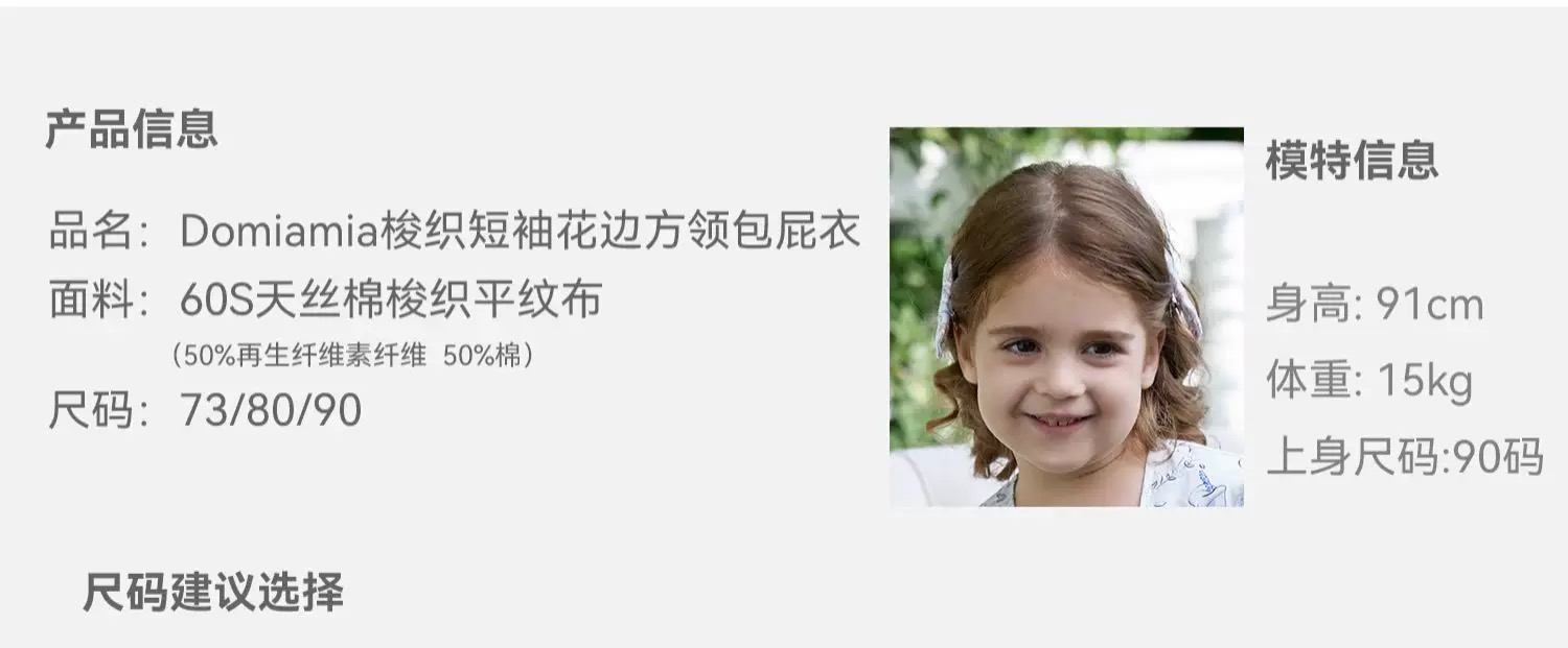 Domiamia 女宝宝梭织短袖花边方领包屁衣 夏季新生儿连体衣