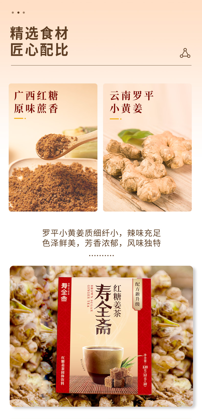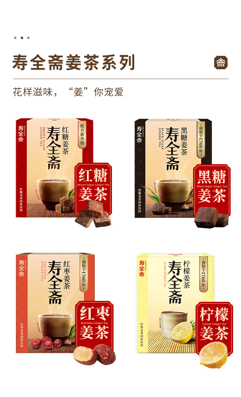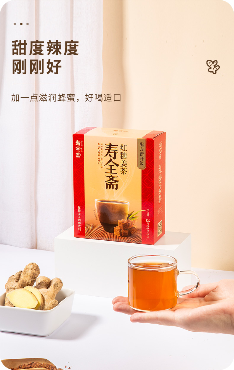 寿全斋 红糖姜茶 大姨妈茶姜糖红糖水速溶姜母茶老姜汤生姜水姜汁 10支装 120g