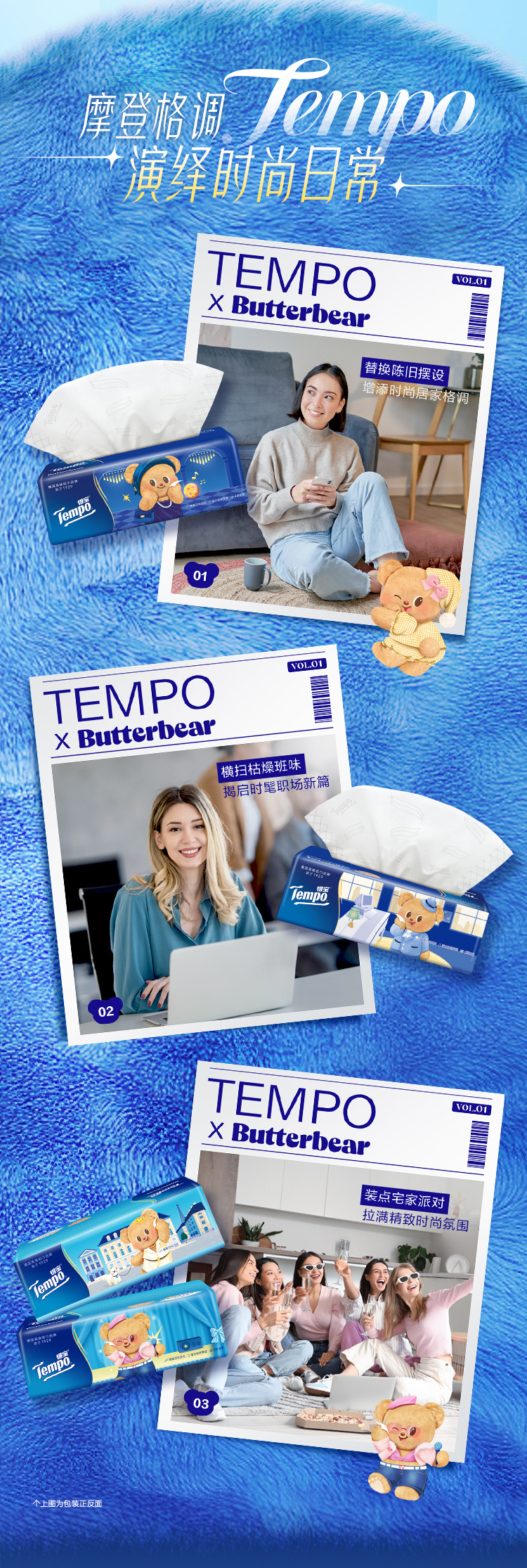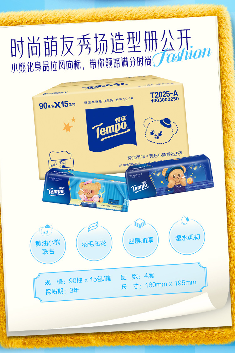 【第二件半价】『Tempo得宝』得宝黄油小熊联名 时髦面纸 解锁四套小熊ootd 四层加厚90抽到手15包