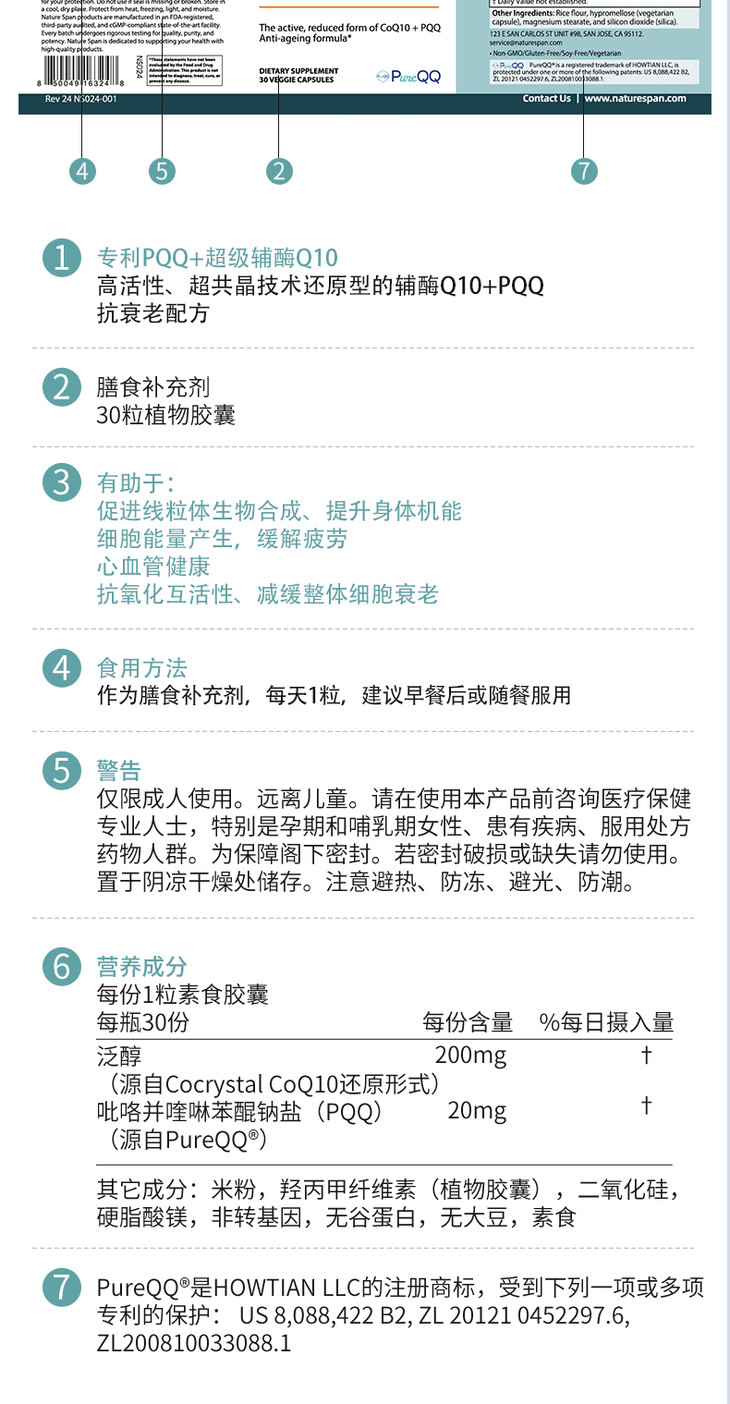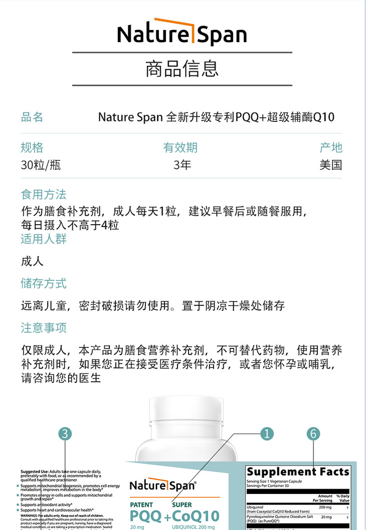 共晶还原型辅酶PQQ高含量美国原装进口30粒 NATURESPAN倍能适