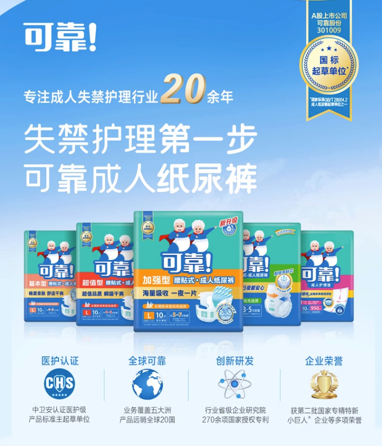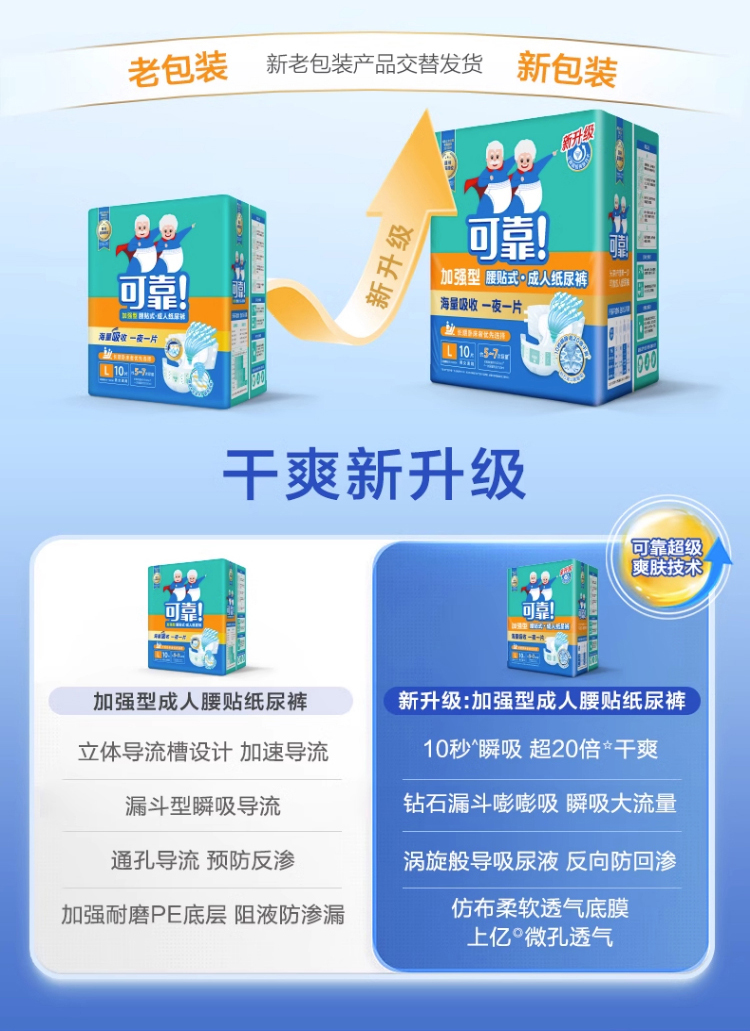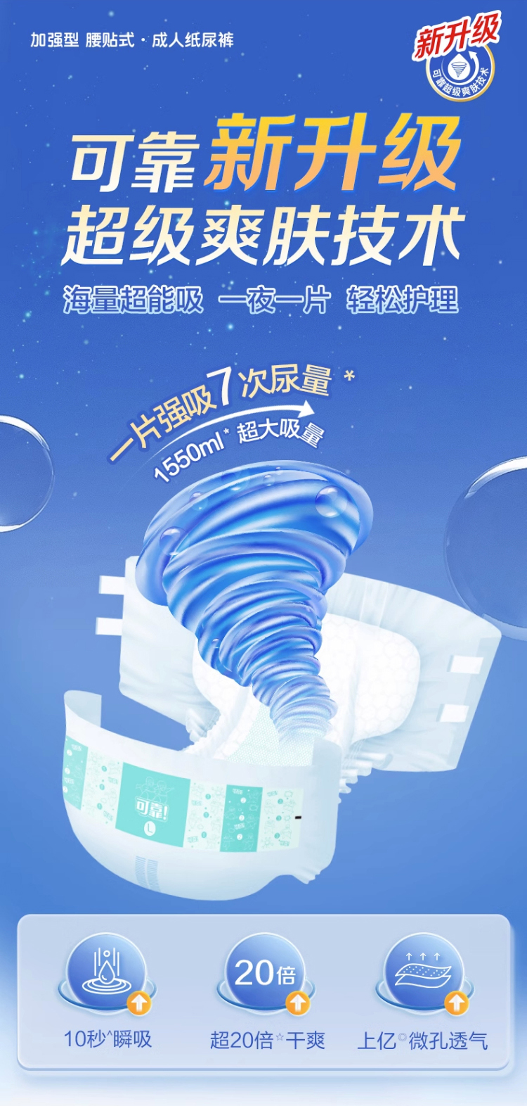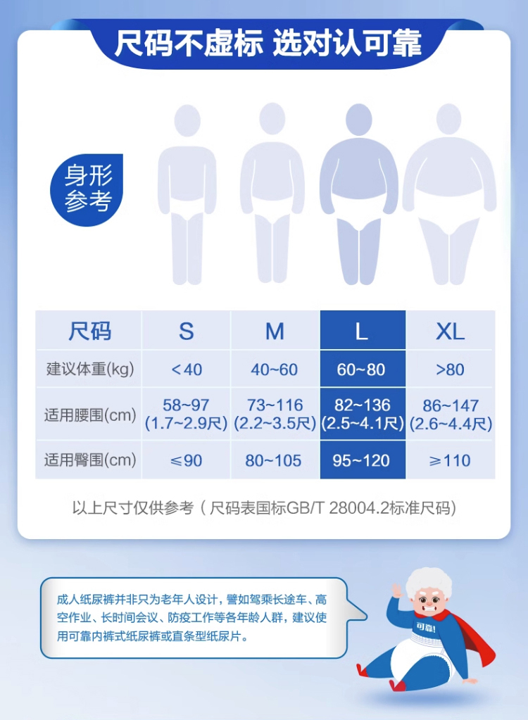 可靠夜用加强型成人纸尿裤男女老人尿不湿加厚S/M/L/XL整箱60片