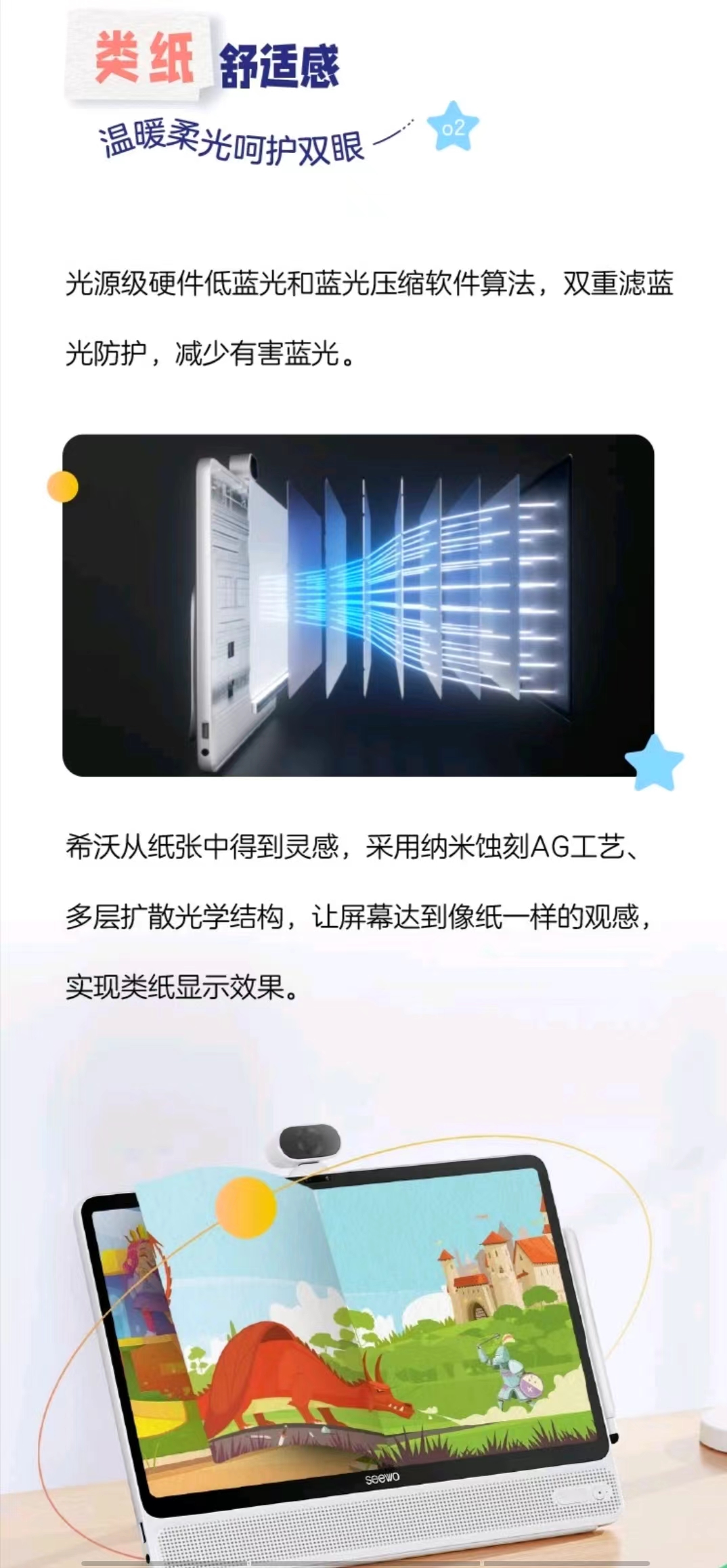 类纸护眼显示技术,通过模拟真实纸张的观感(W2独有),降低长时间使用对孩子眼睛的伤害和刺激。