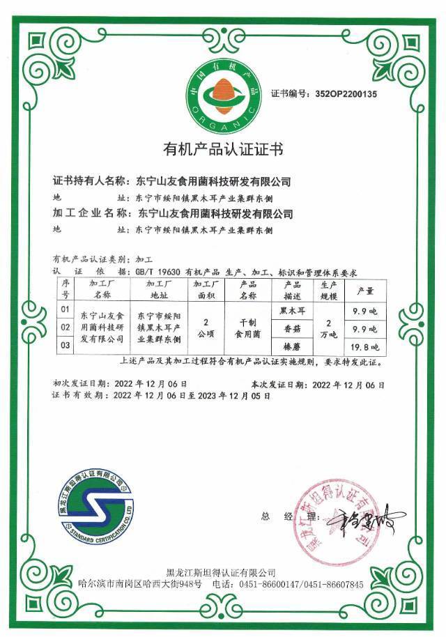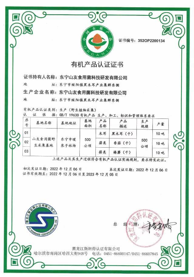高寒慢养,好环境出好食材。常年低温不利于大多数农作物的生长,但却是黑木耳的生长天堂。通过了有机采摘认证和有机加工认证。